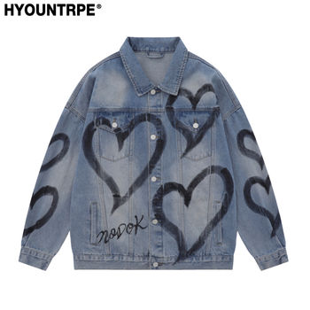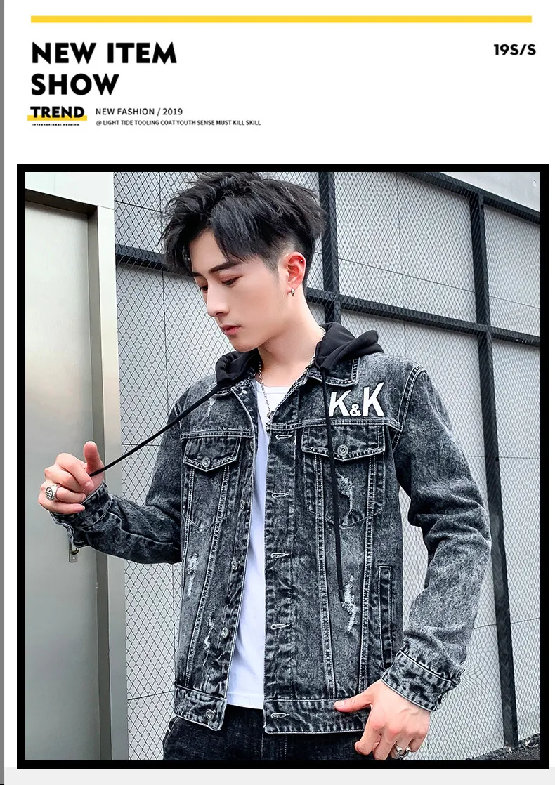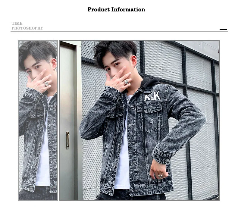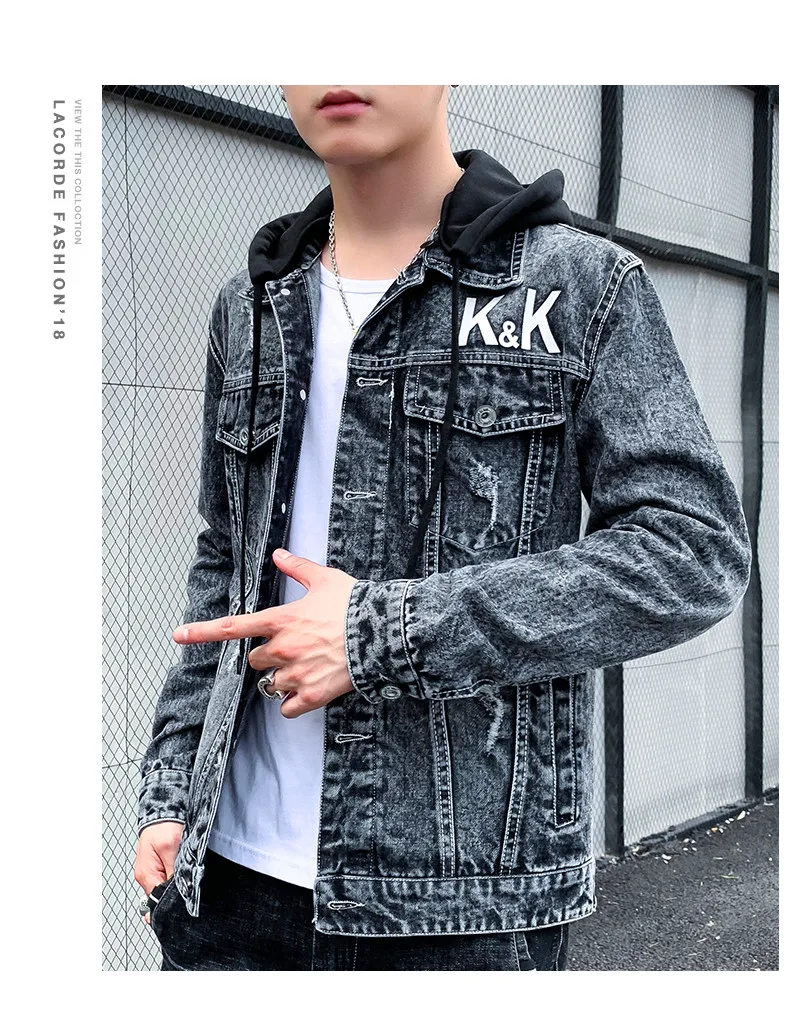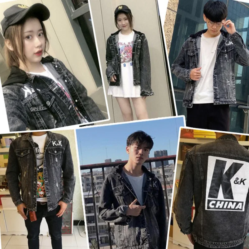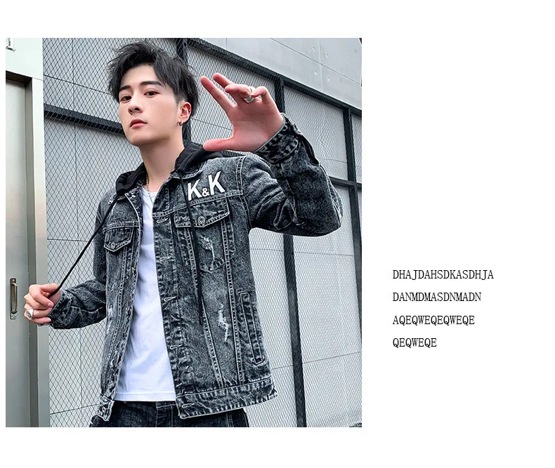 Men’s Personality Casual Jacket 2021 Autumn Winter Printed Korean Denim Tide Brand Autumn Sweater Thicken Denim Jacket