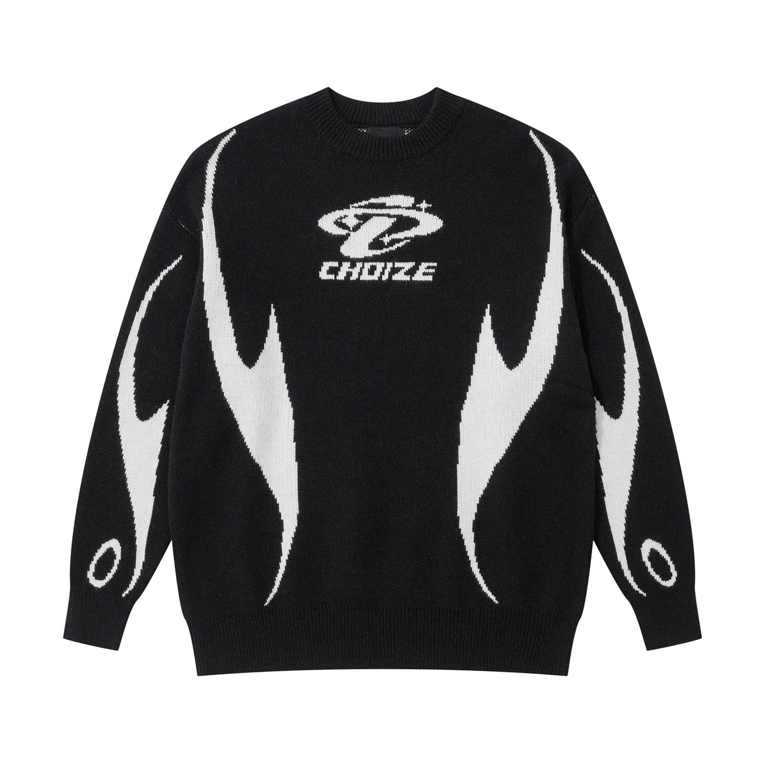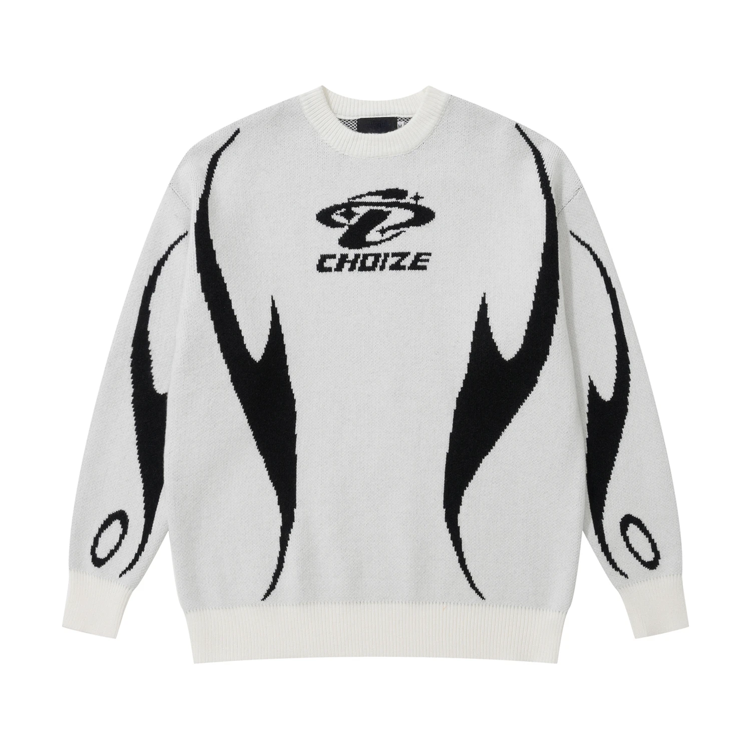 Mens Racing Style Sweater Knitted Pullovers Casual Long Sleeve Loose O Neck Harajuku Sweaters Streetwear Unisex Jumpers Knitwear