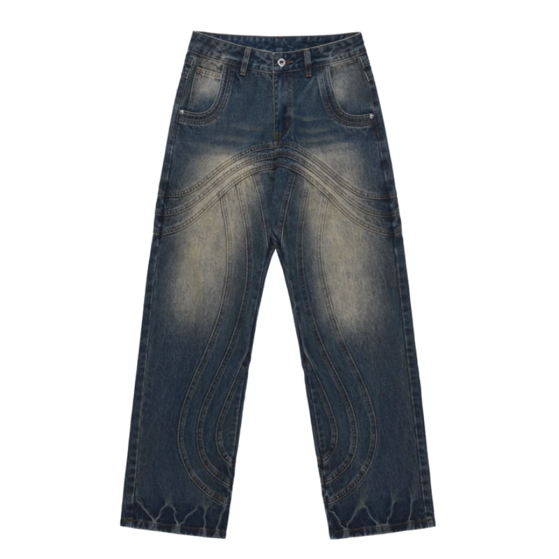 Mens Retro Washed Denim Jeans Loose Straight Pants 2023 New Fashion Streetwear Trousers Hip Hop Casual Zipper Jean Pants Joggers