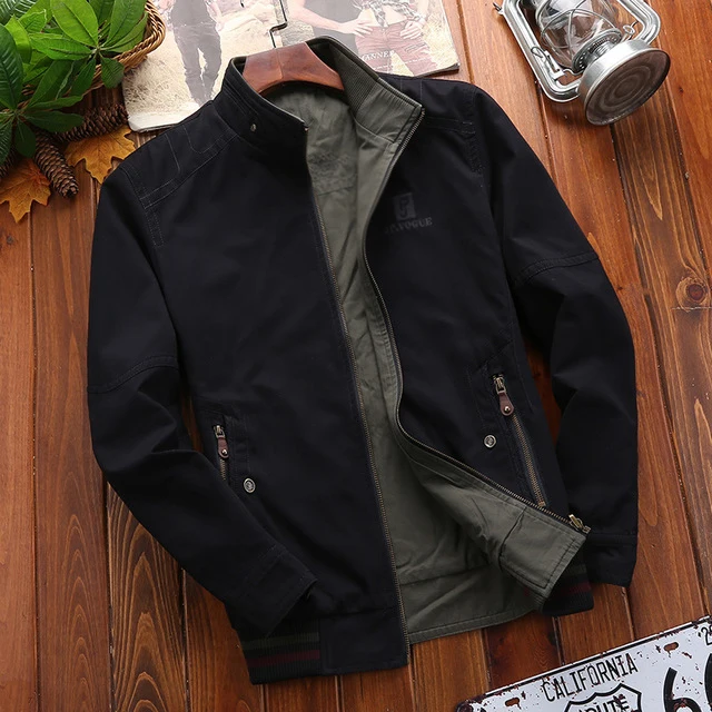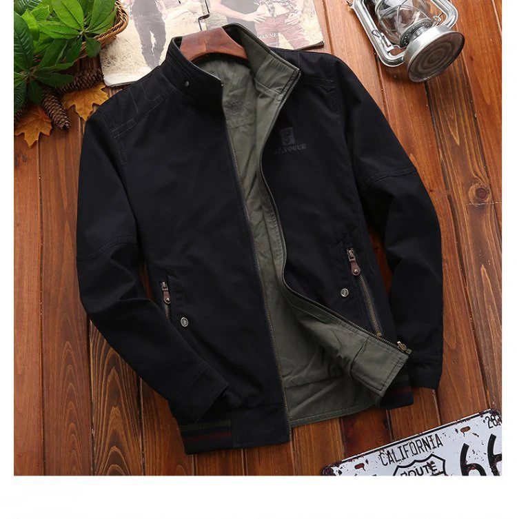 • Men’s Reversible Jacket Fashion Trend Cotton Casual Baseball Jacket Uniform New Spring Autumn Clothes Male Two Sided Zipper Coat