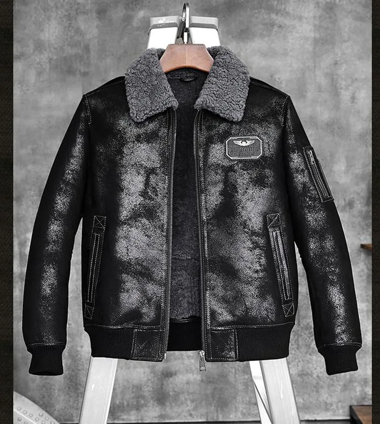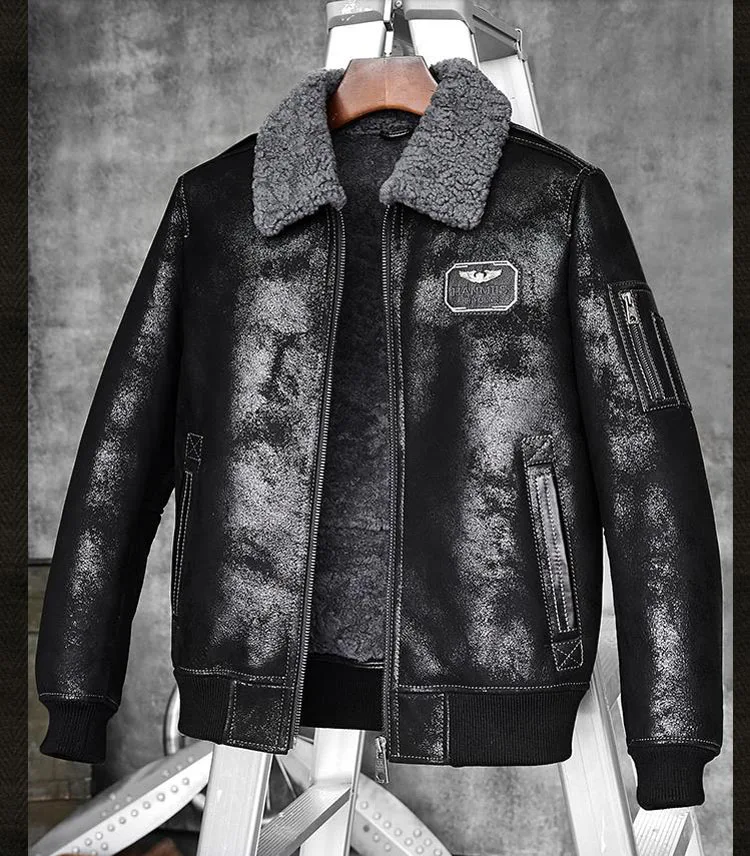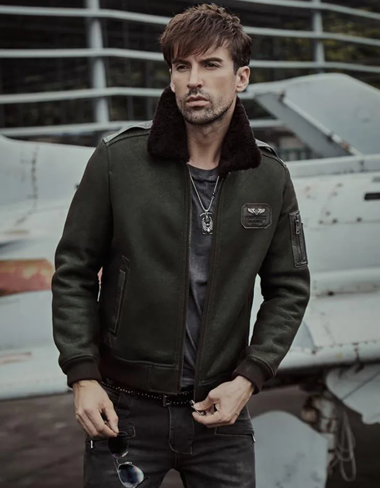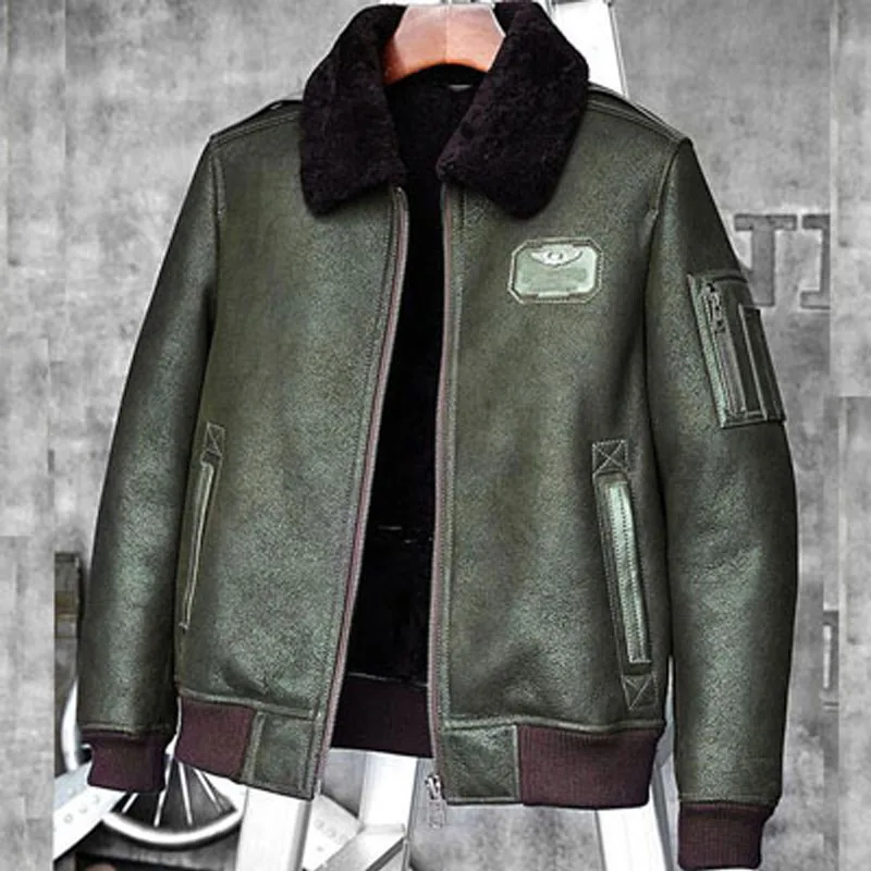 Mens Shearling Coat Pilot Jacket Mens Fur Coat B3 Sheepskin Outwear Men Aviator Jacket
