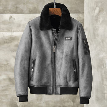 Men’s Shearling Jacket Long Style B3 Flight Jacket Double Collar Design Leather Jacket Mans Sheepskin Aviator Fur Coat