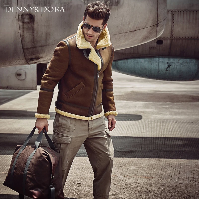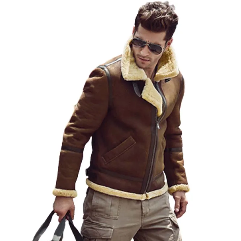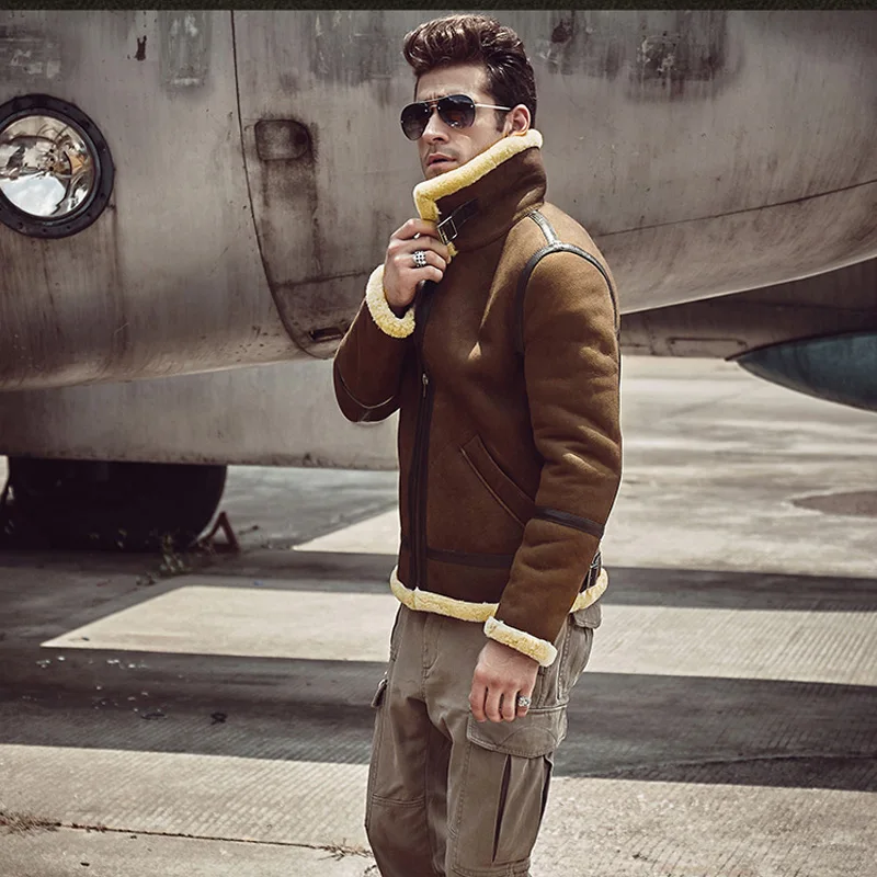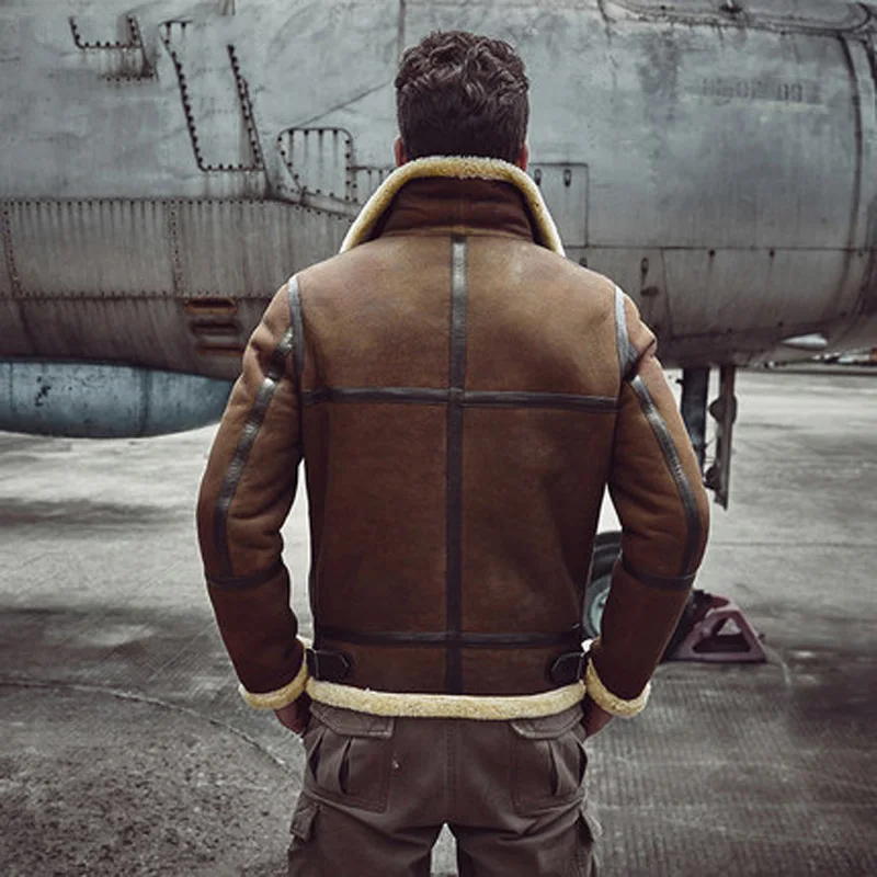 Men’s Shearling Leather Jacket – Dark Brown B3 Original Flying Jacket with Fur Aviation Coat