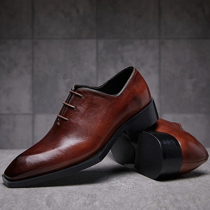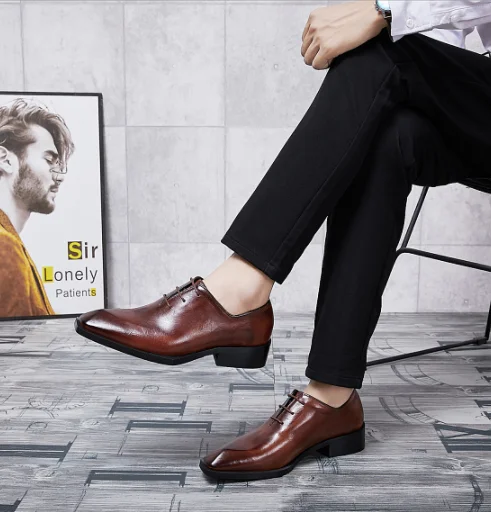 Men’s shoes new trend leather retro old and polished color first layer cowhide men’s business suits handmade leather shoes men