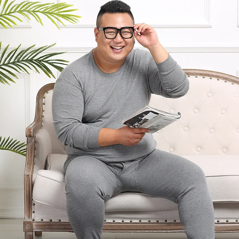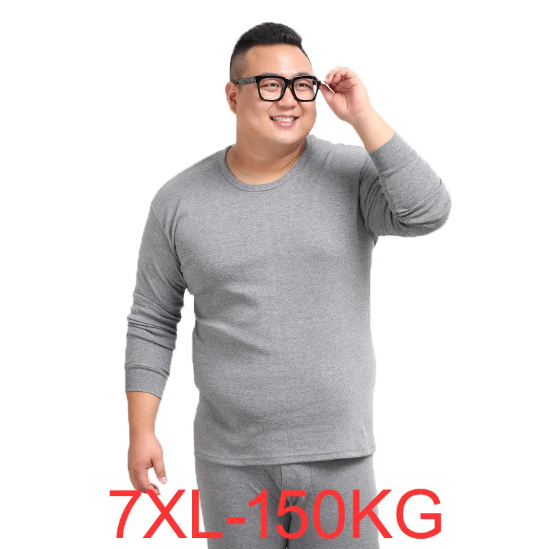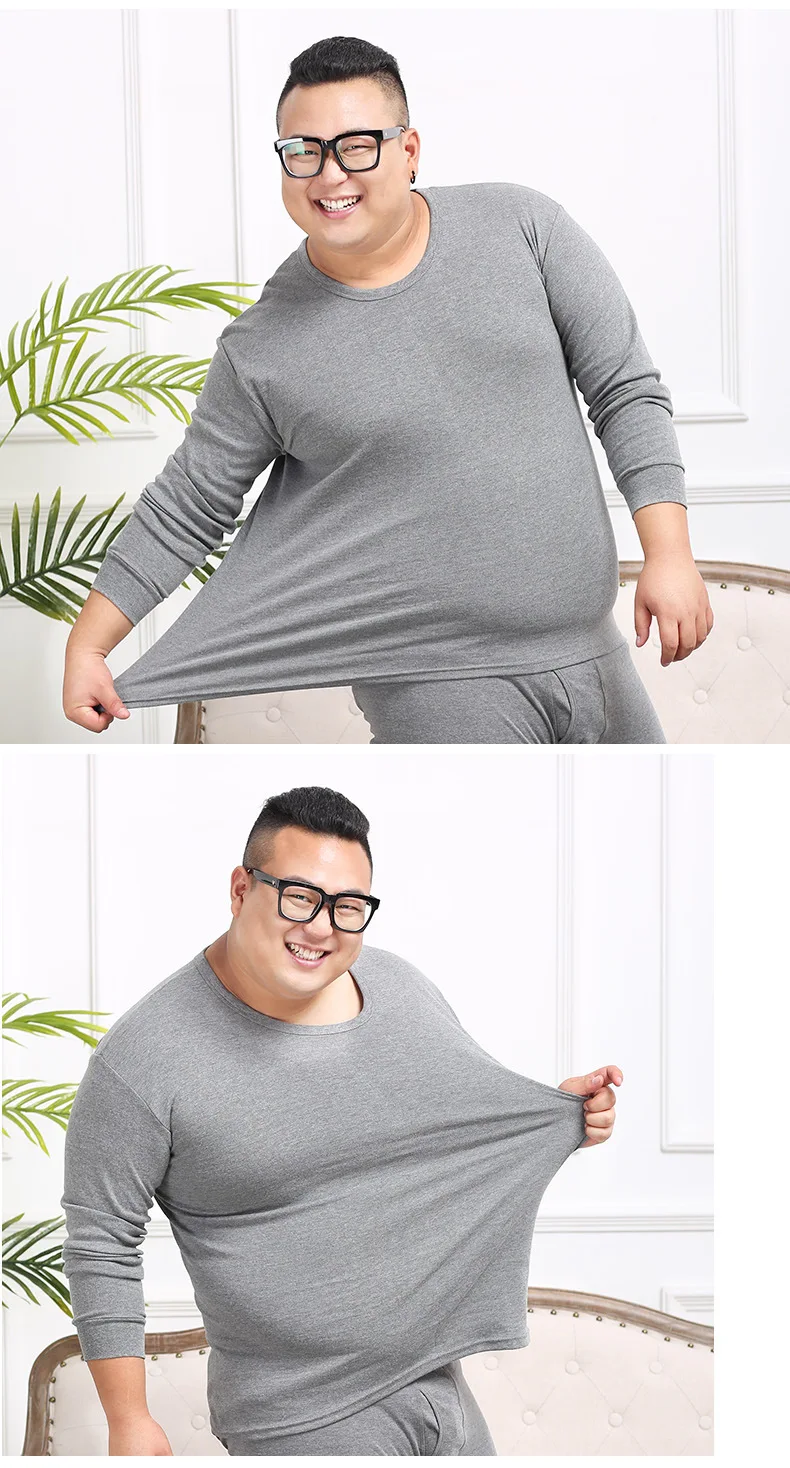 Men’s Thermal Underwear Thick Fleece Long Johns Warm Loosesize 150KG Plus Size Elasticity Women Solid Thermal Pants Top 2pcs Set