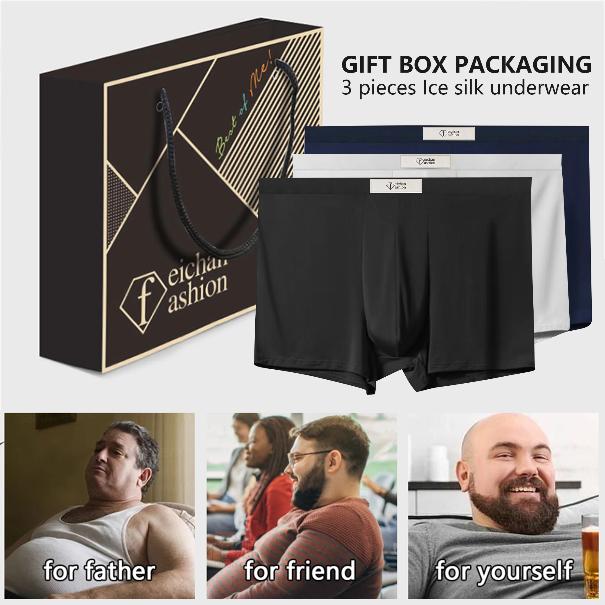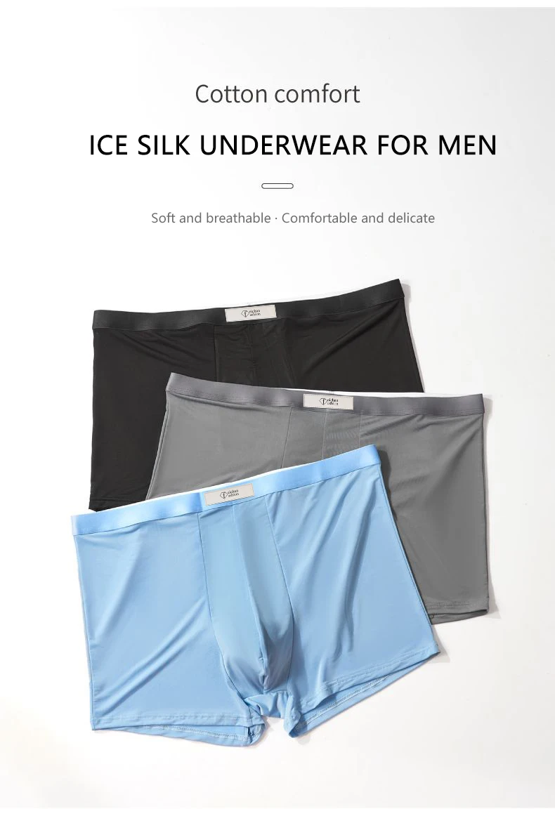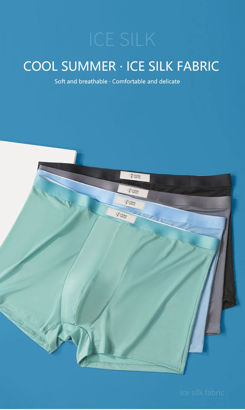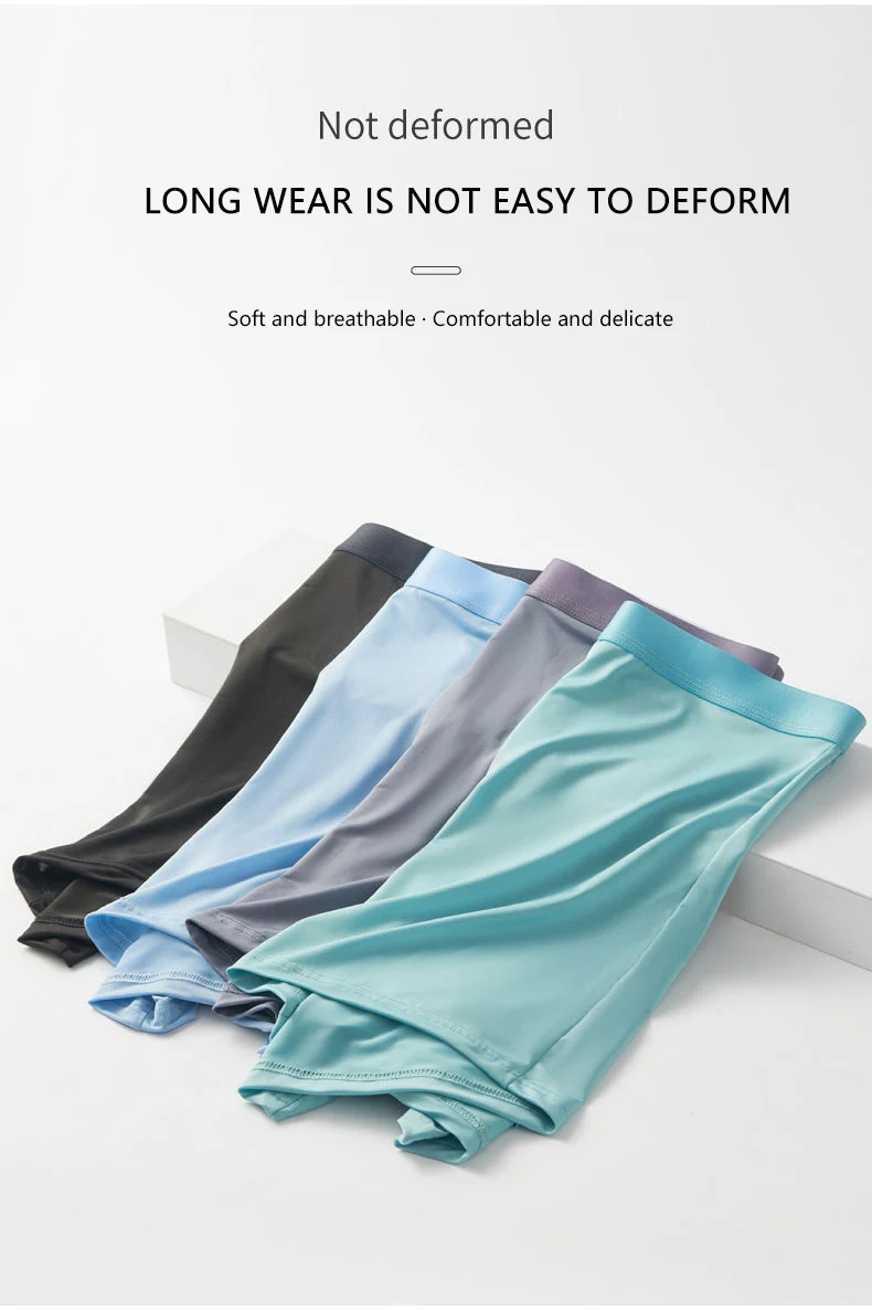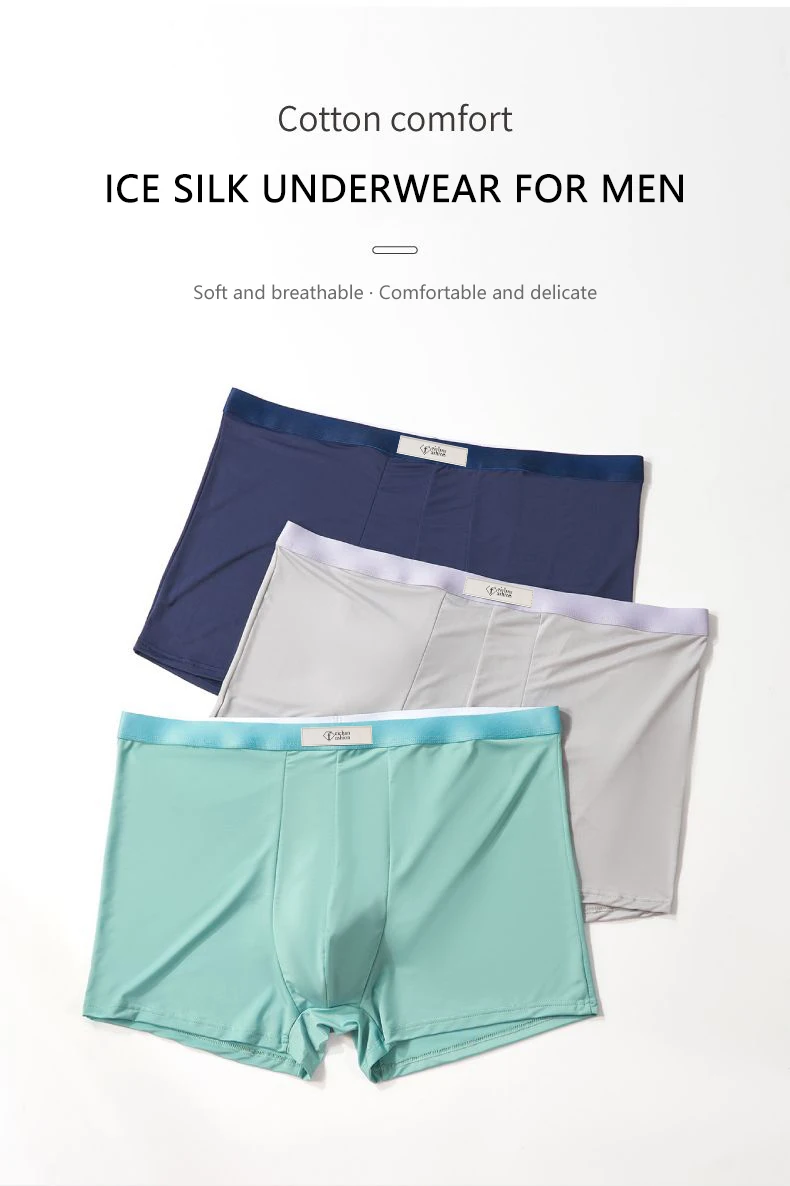 men’s underwear Ice silk thin breathable young middle-aged boxers briefs loose high waist flat Angle non-trace obese for men