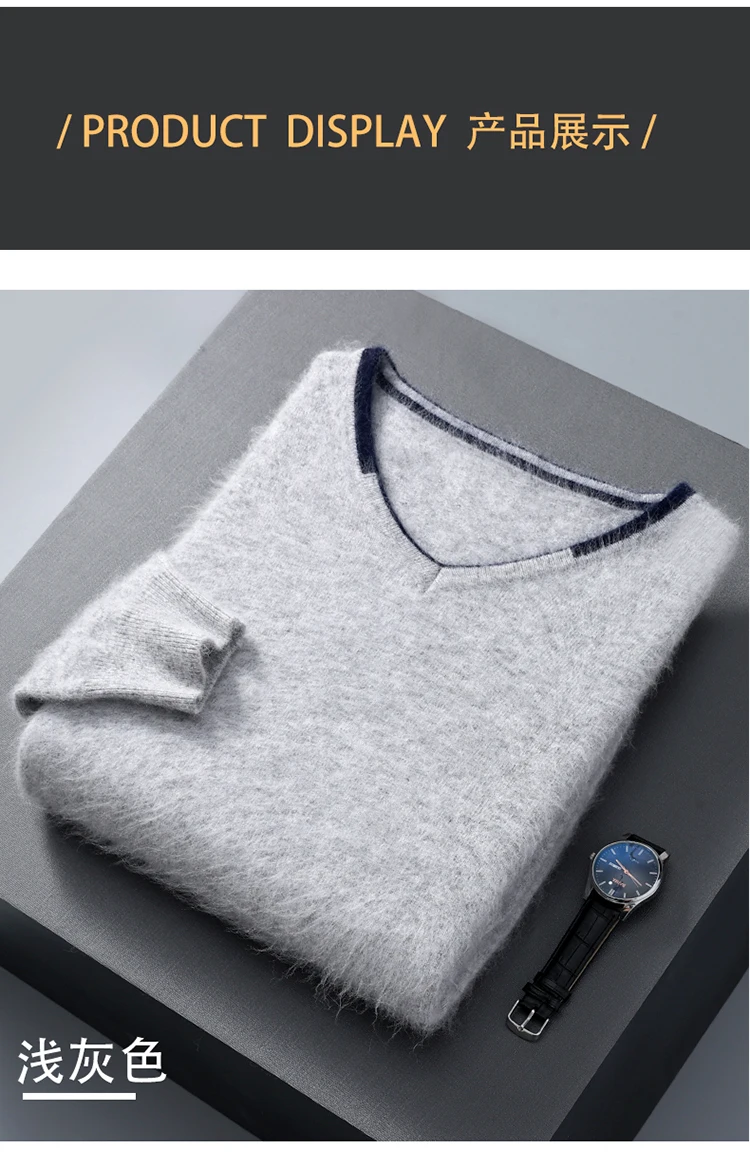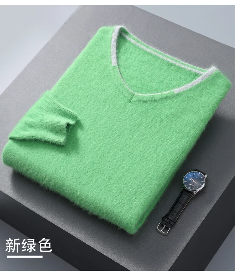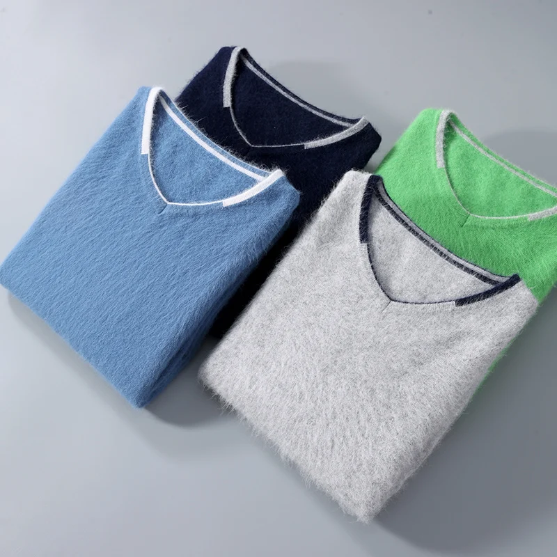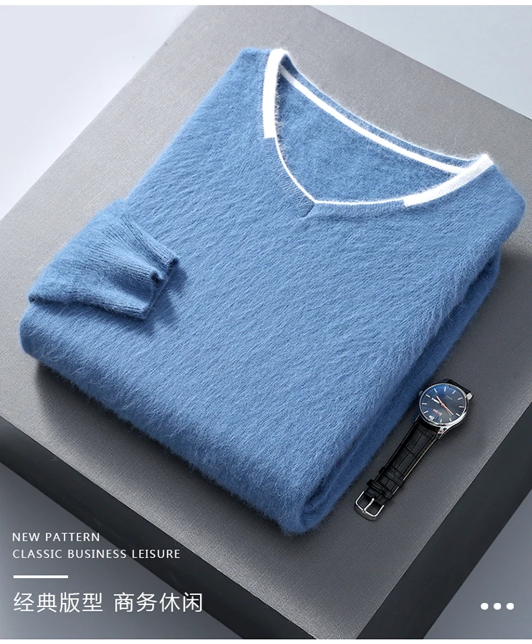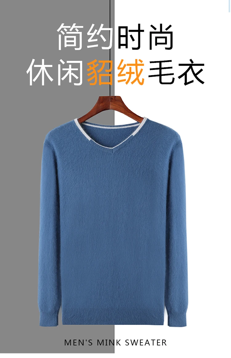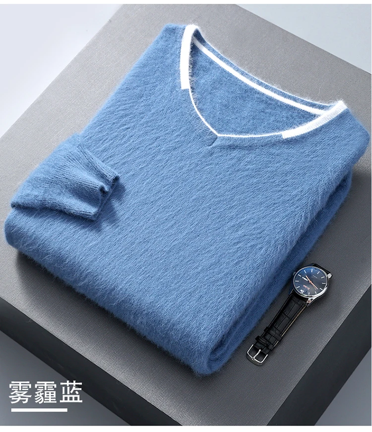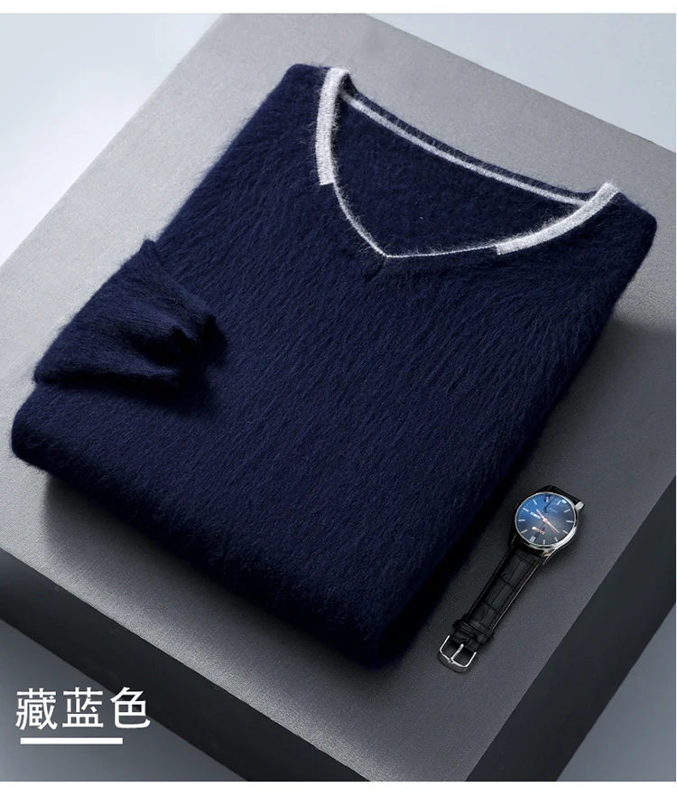 Men’s V-neck Mink Velvet Sweater 2023 Autumn Winter Warm Pure Mink Cashmere Jumper Clothes Sweater Large Size Pullover