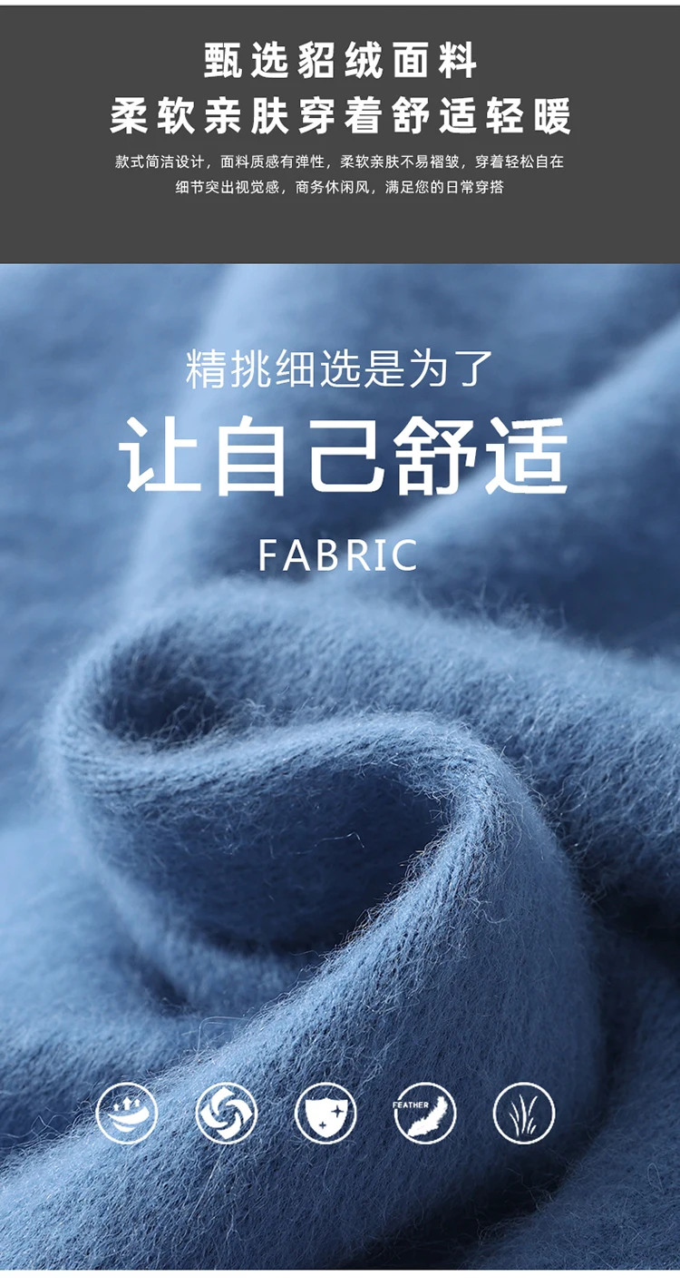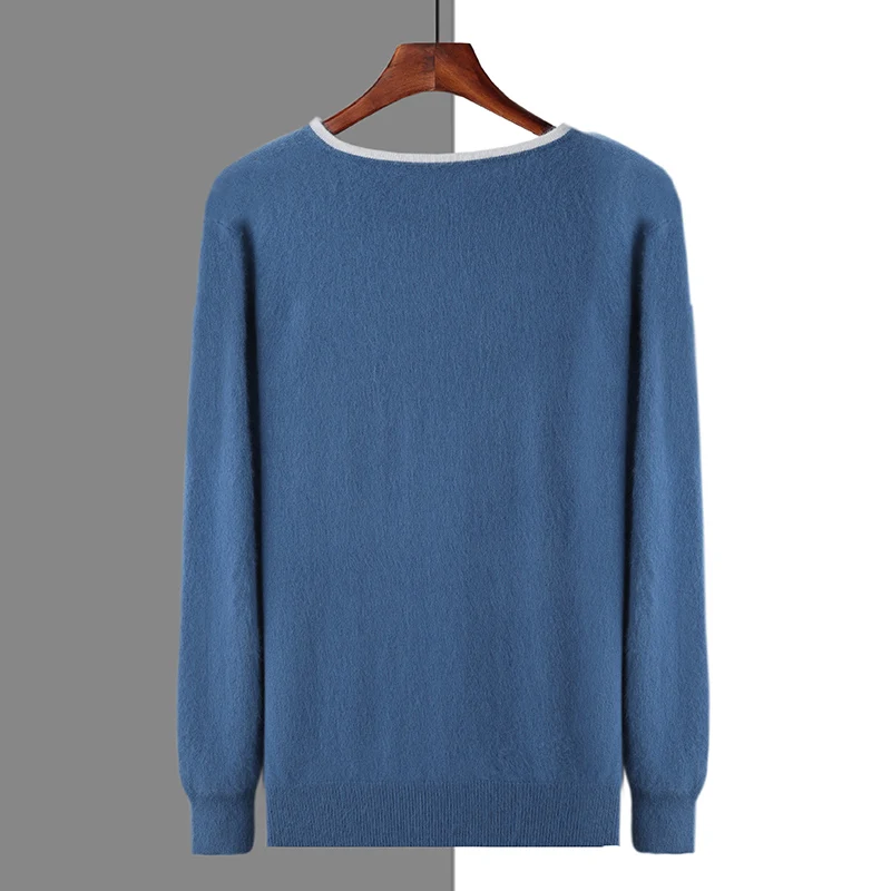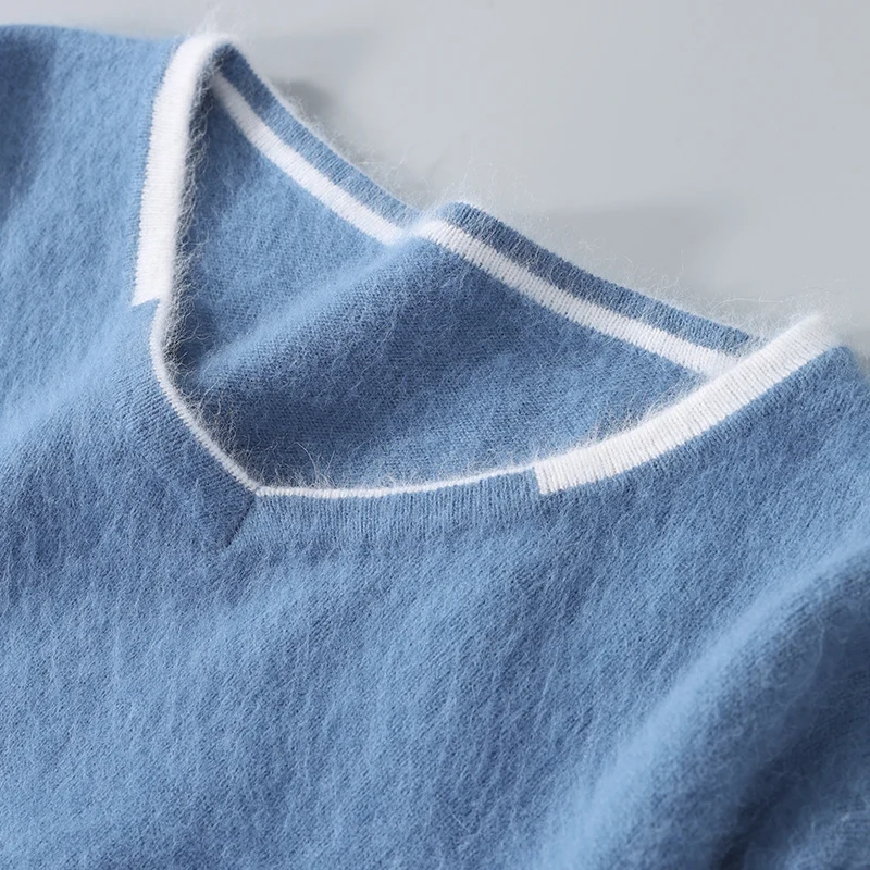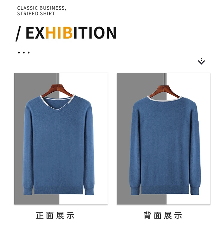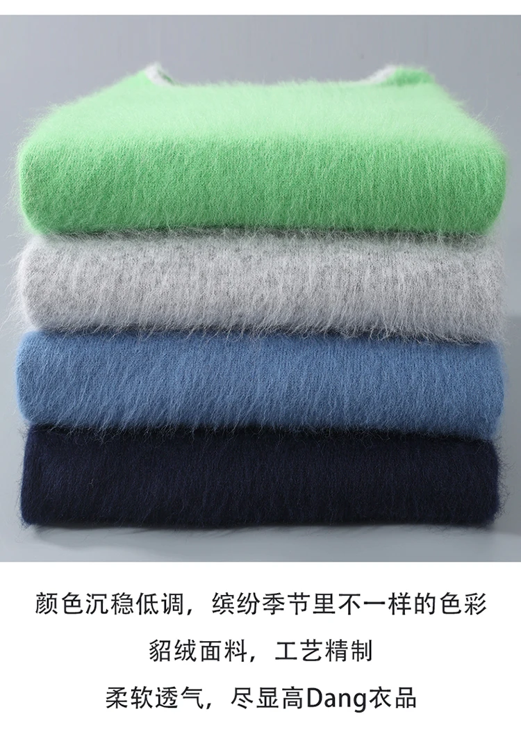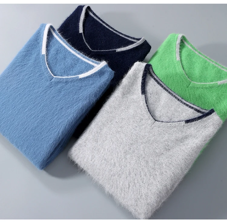 Men’s V-neck Mink Velvet Sweater 2023 Autumn Winter Warm Pure Mink Cashmere Jumper Clothes Sweater Large Size Pullover