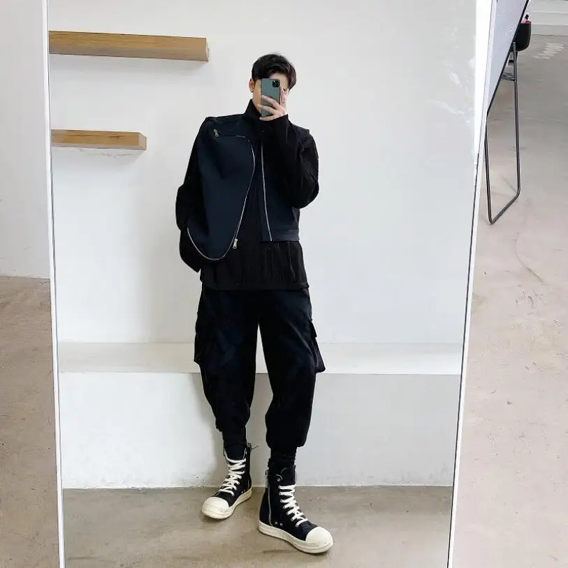 Men’s Wear Personality Niche Trend Tactical Function Style Vest Motorcycle Sleeveless Waistcoat Man Black Japan Style Coat w1935