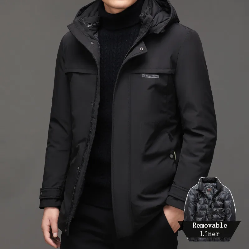 Men‘s Winter Classic Warm Parkas Jacket Coat Men Cotton Removable Liner Autumn Outfits Zipper Pockets Hooded Parka Jackets Men