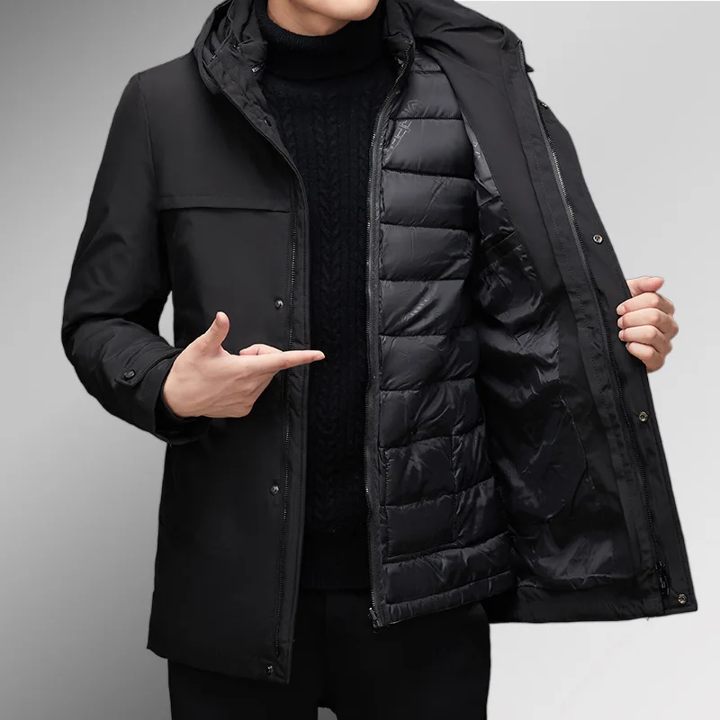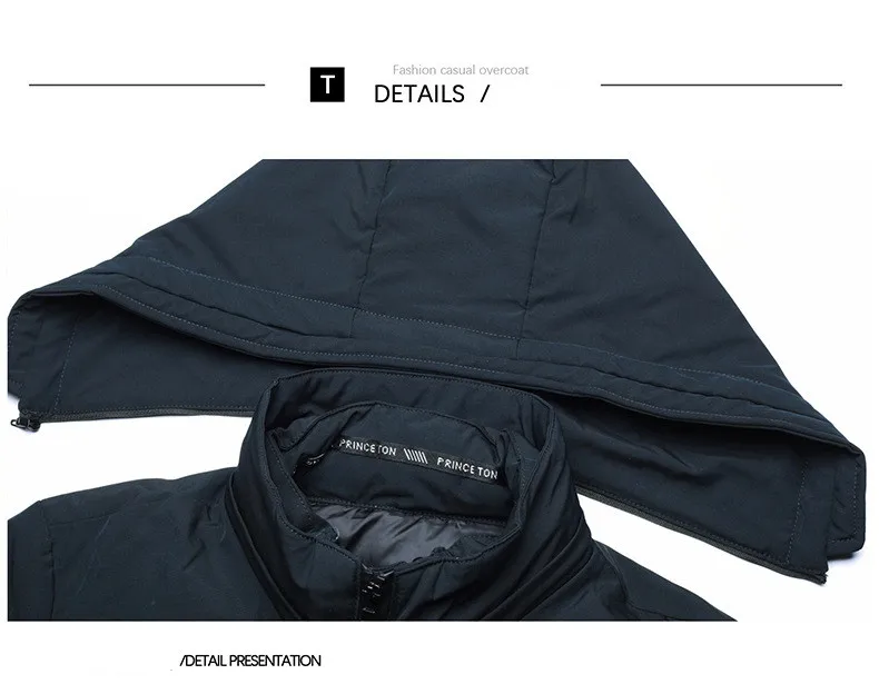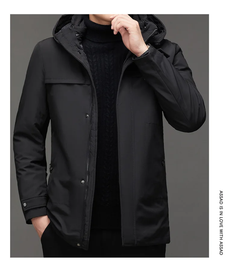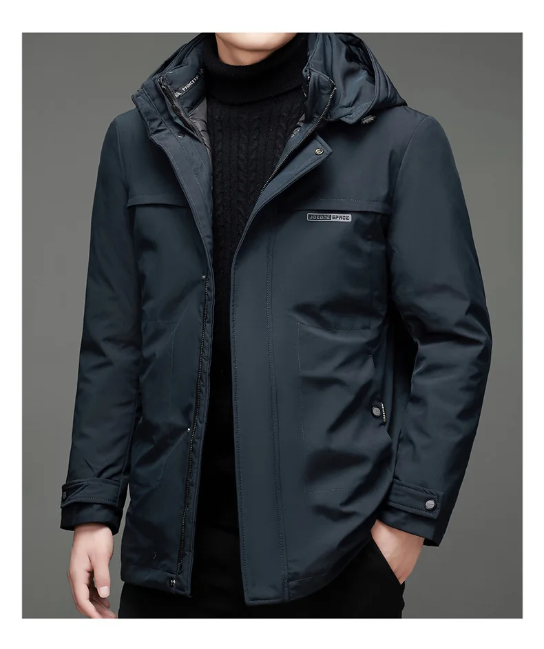 Men Winter Fashion Detachable Hooded Hat Parkas Jacket