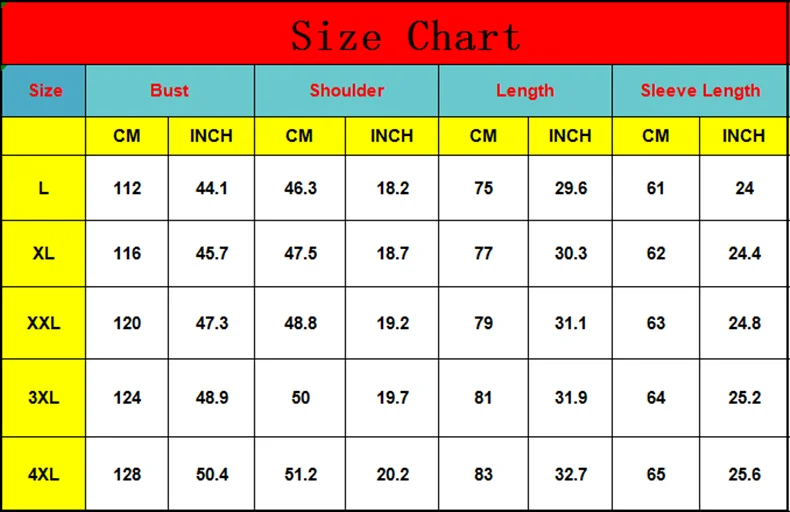(There are 1-3cm margin of error, If you are not sure the size, Please send the information of your Height, Weight and Chest to me, I will help you choose the correct size. )