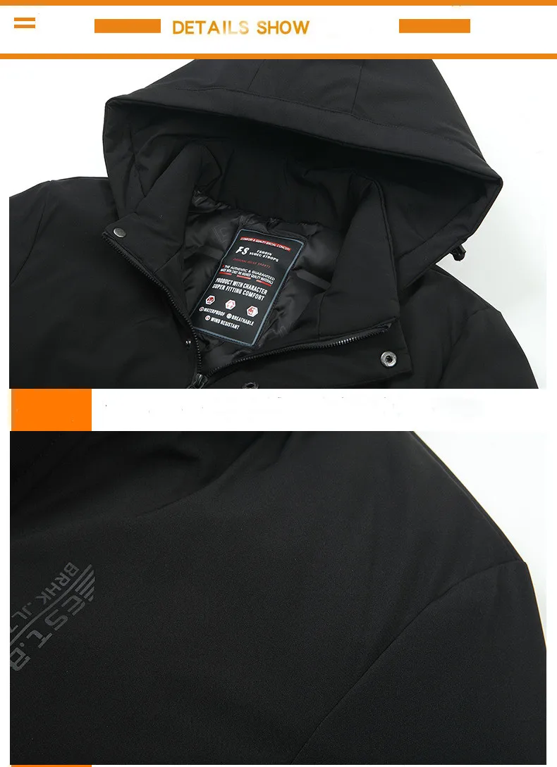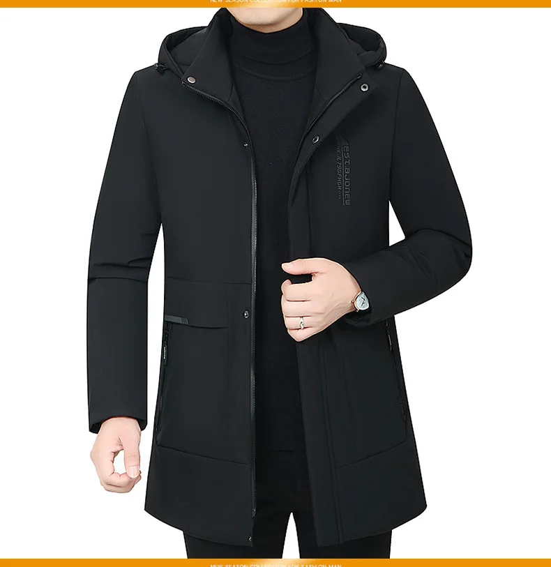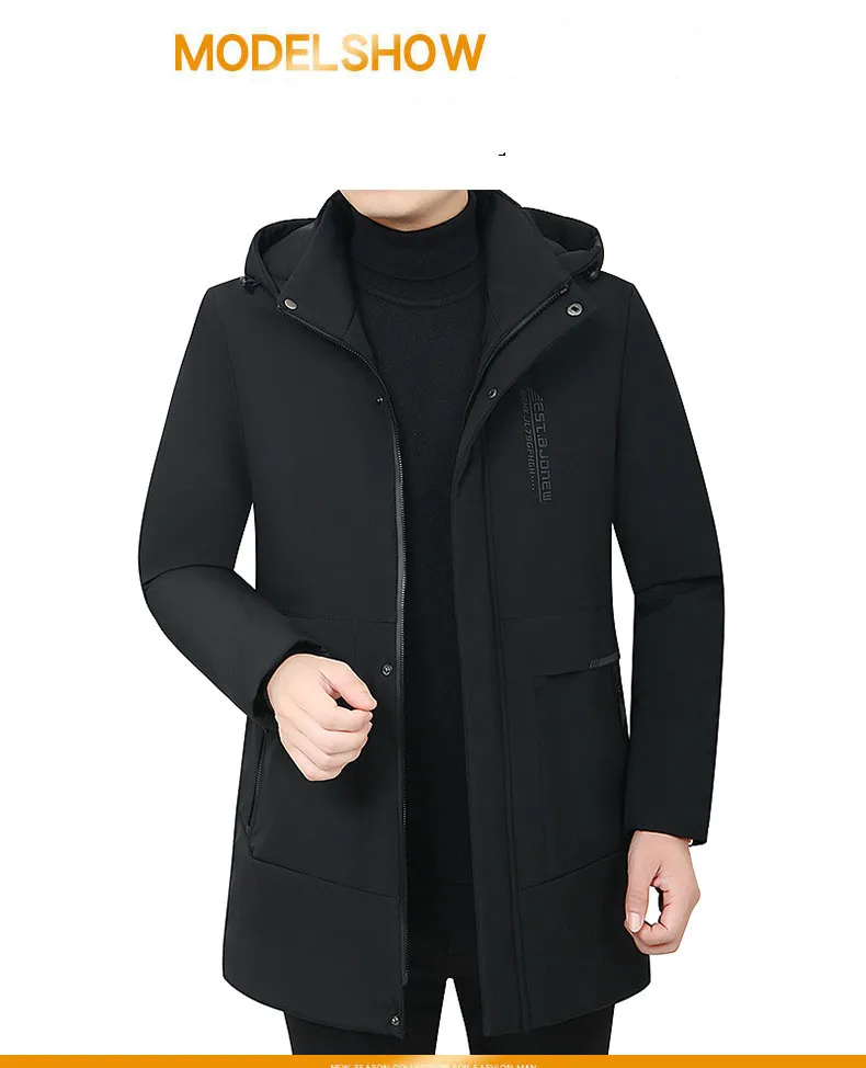 Men’s Winter Jacket Parka Warm Fleece Hoodies Mid-long Wearable Windproof Zipper Parkas Big Pockets Casual Down Jacket Coat Men