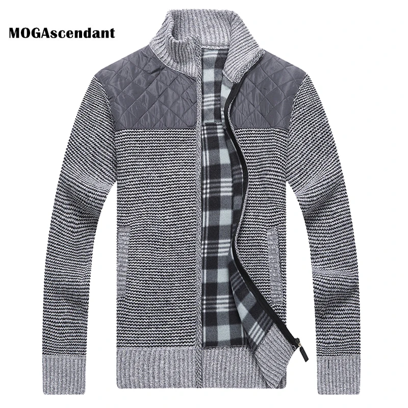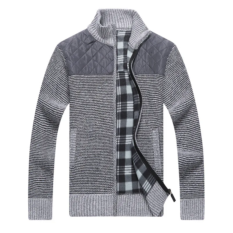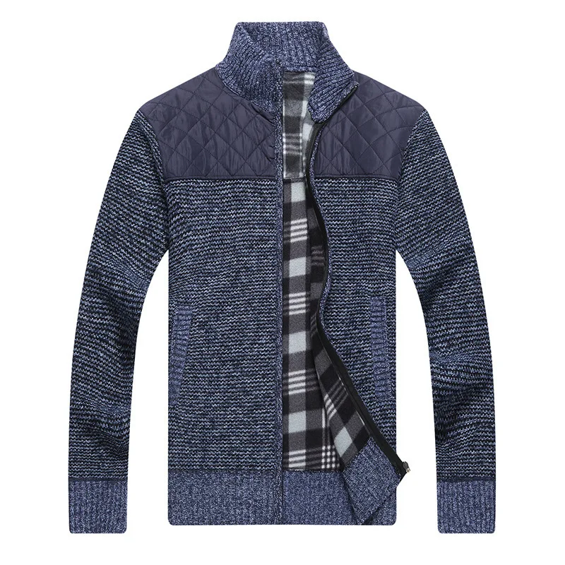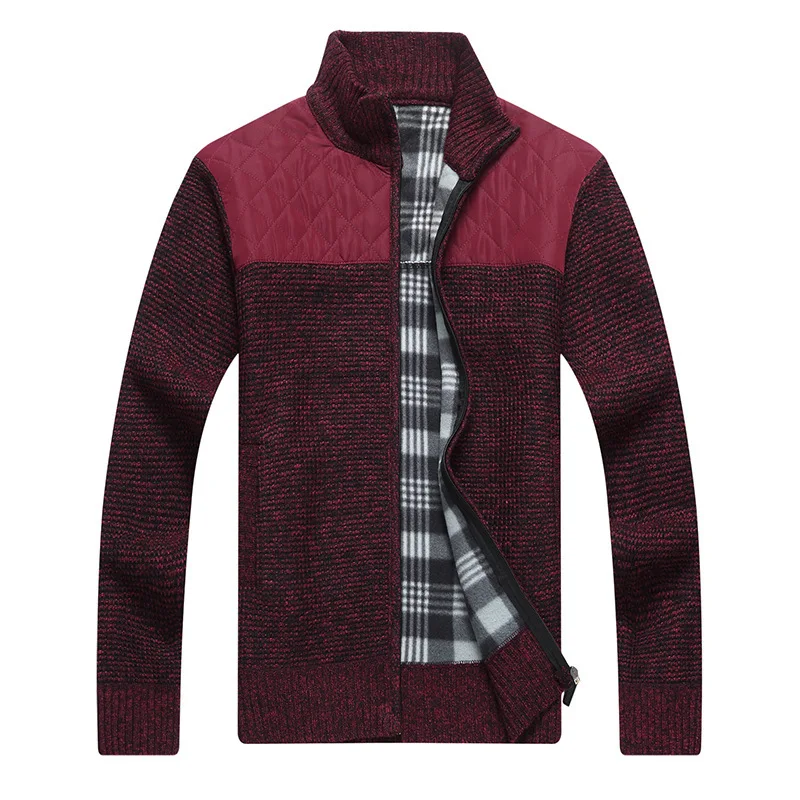 Men’s Winter Knitted Fleece Sweater Coat Thick Patchwork Wool Cardigan Muscle Fit Knitted Jackets Fashion Autumn Male Clothing