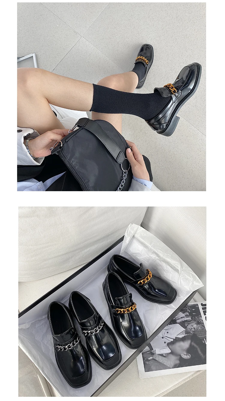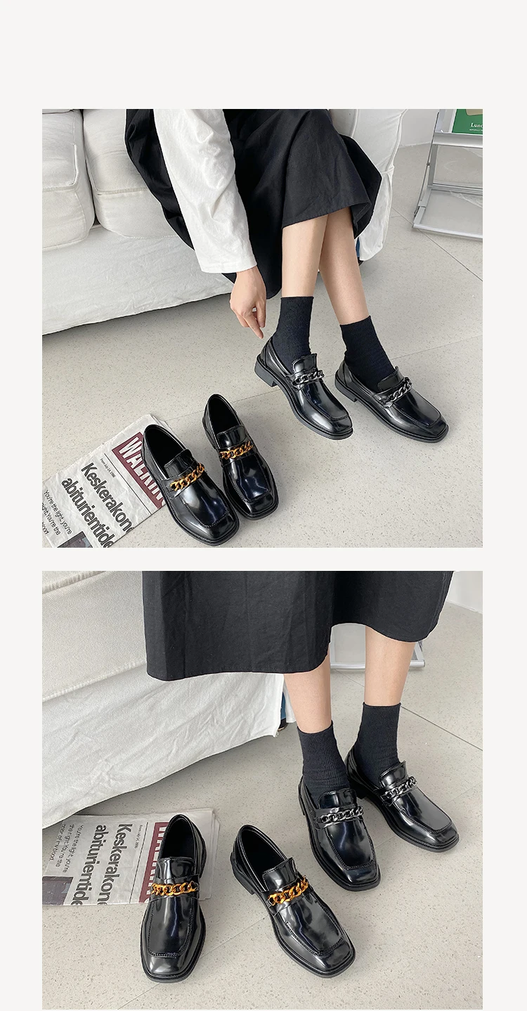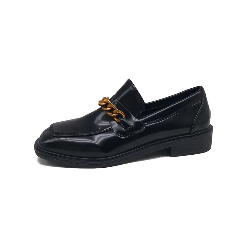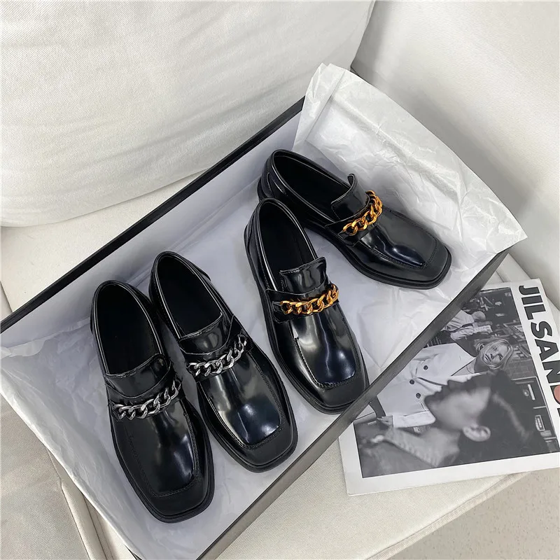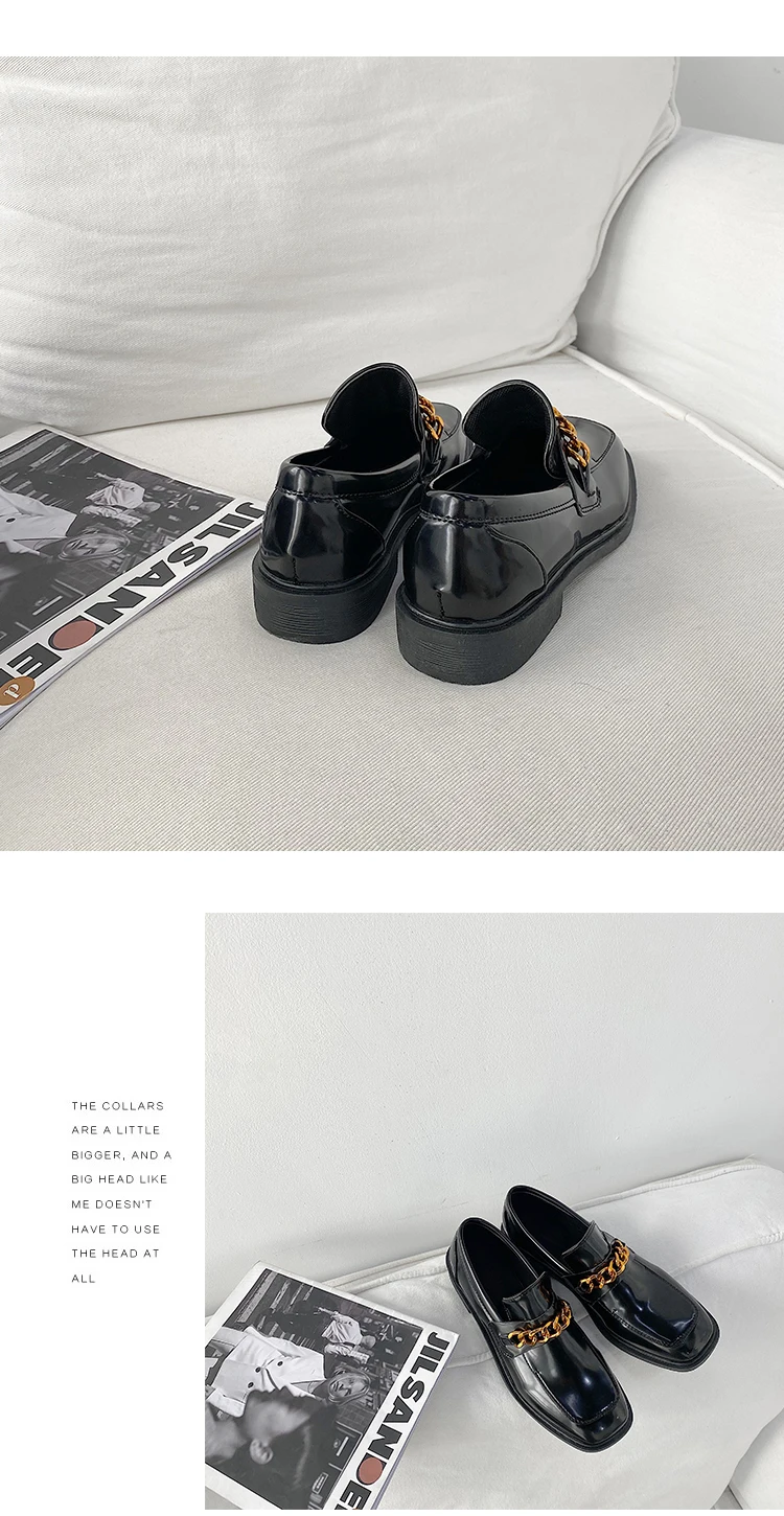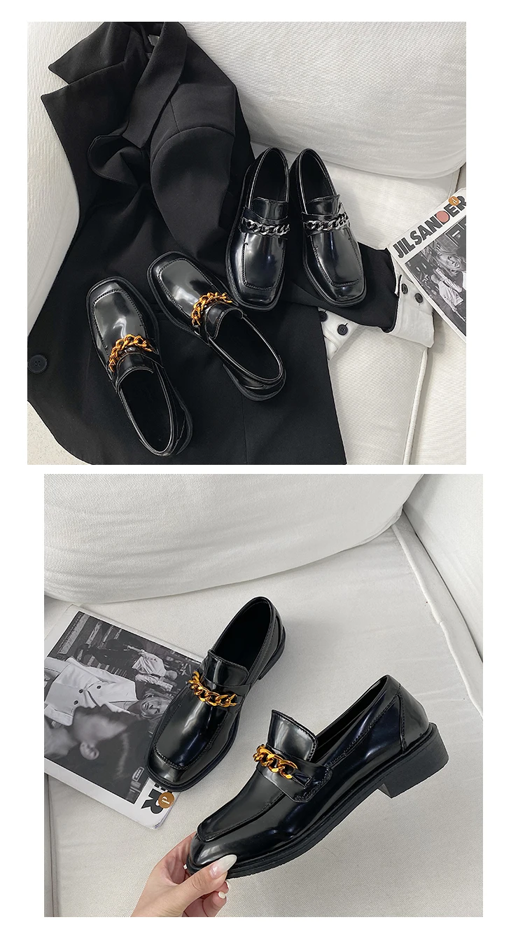 2020 Retro Chains Flats Shine Pu Loafers Shoes Women