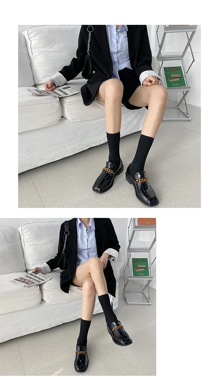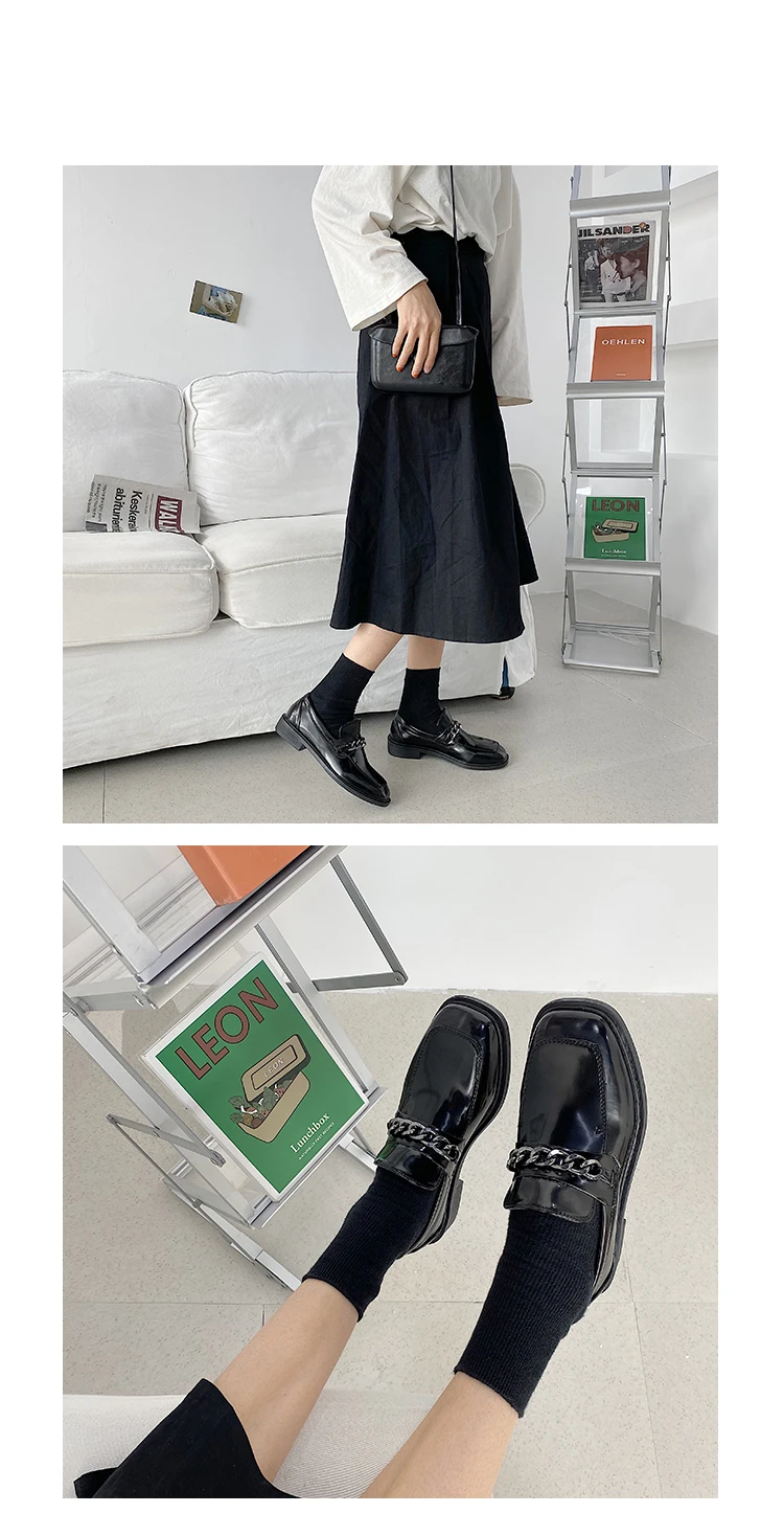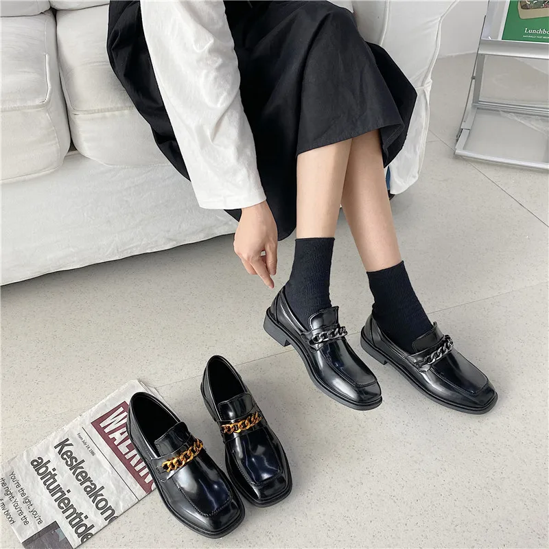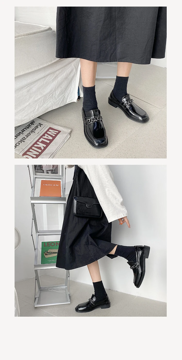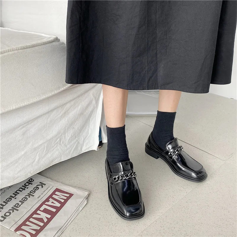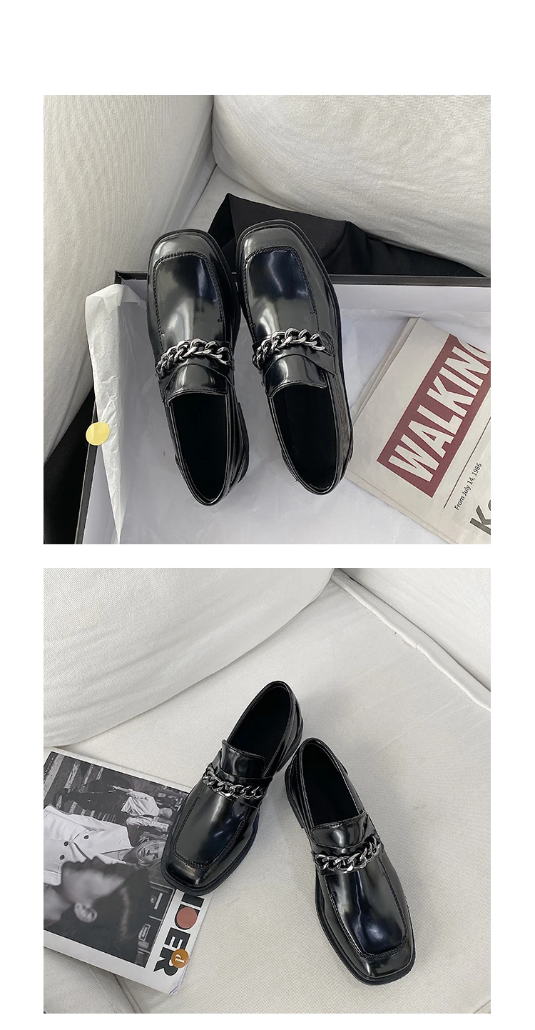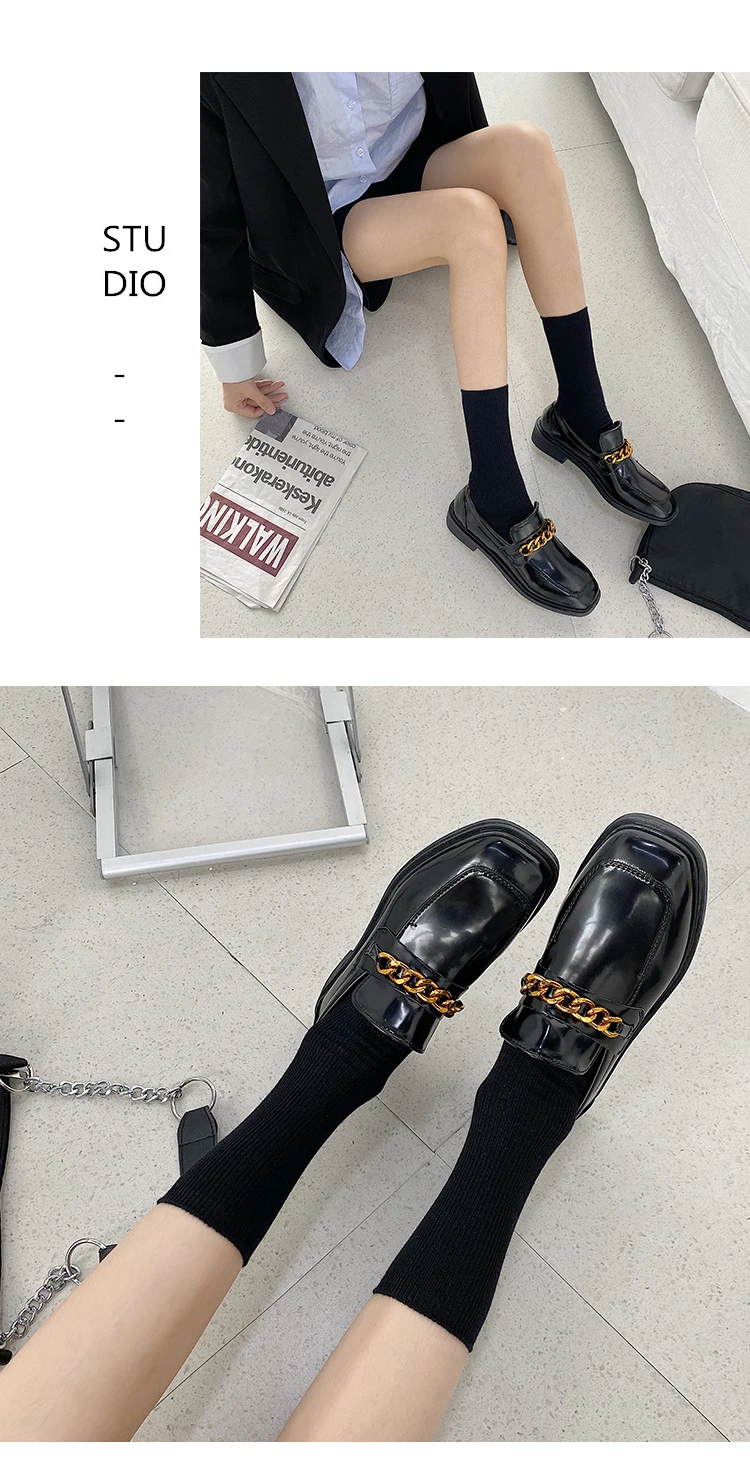 2020 Retro Chains Flats Shine Pu Loafers Shoes Women