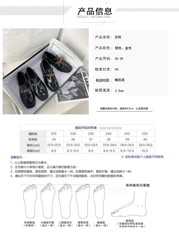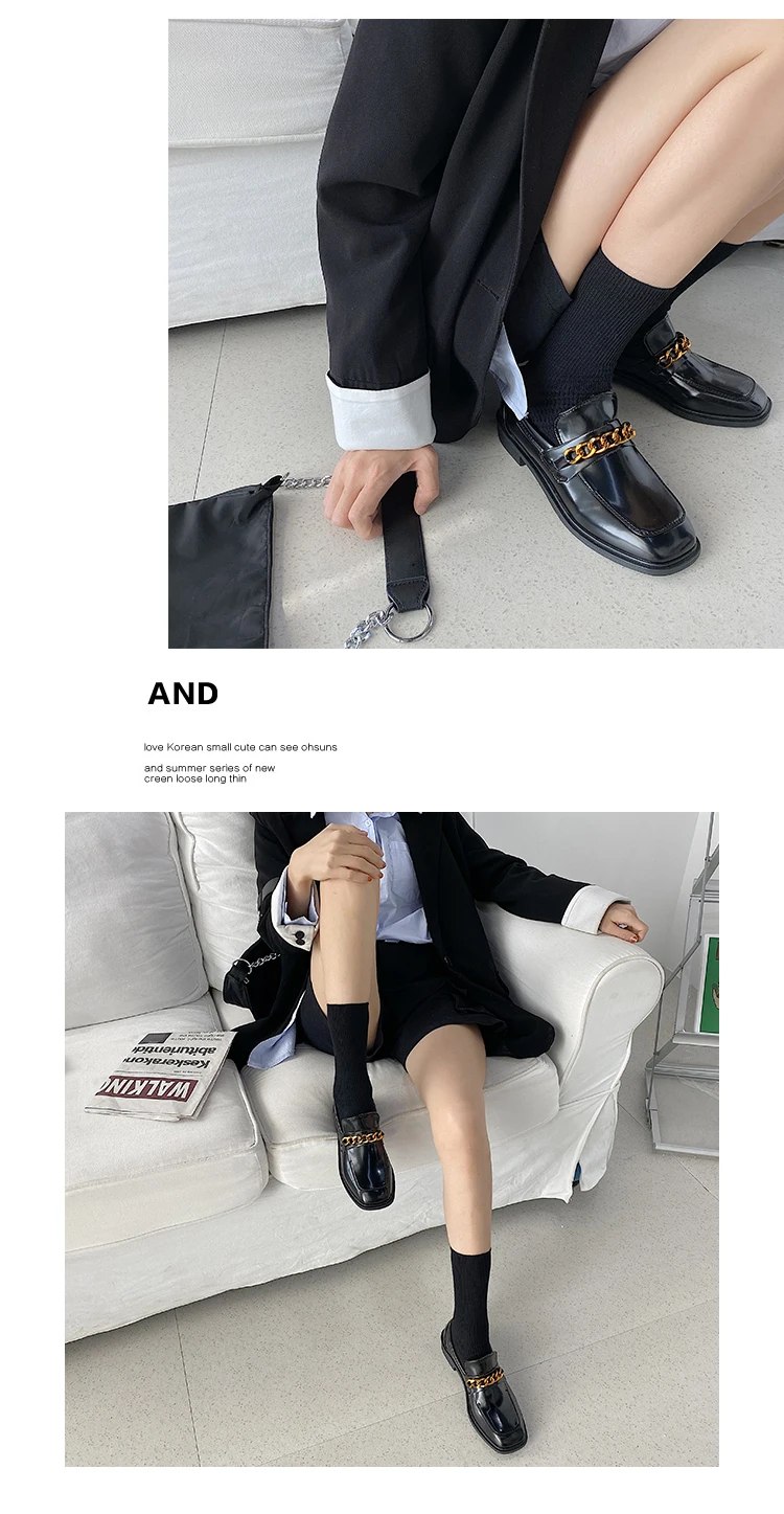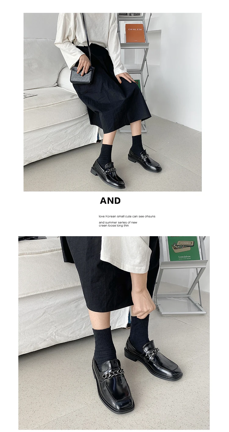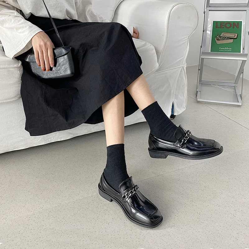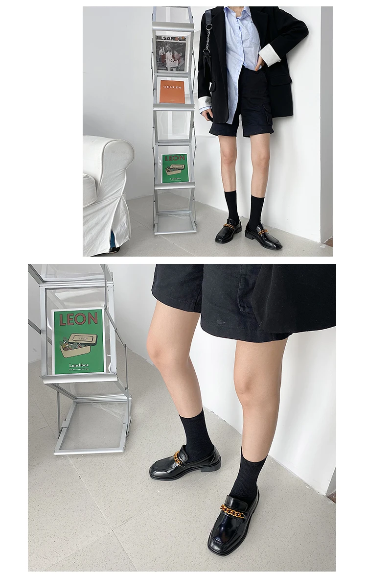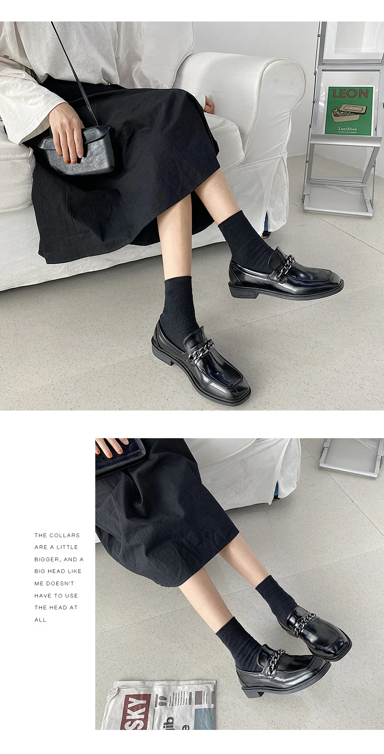 2020 Retro Chains Flats Shine Pu Loafers Shoes Women