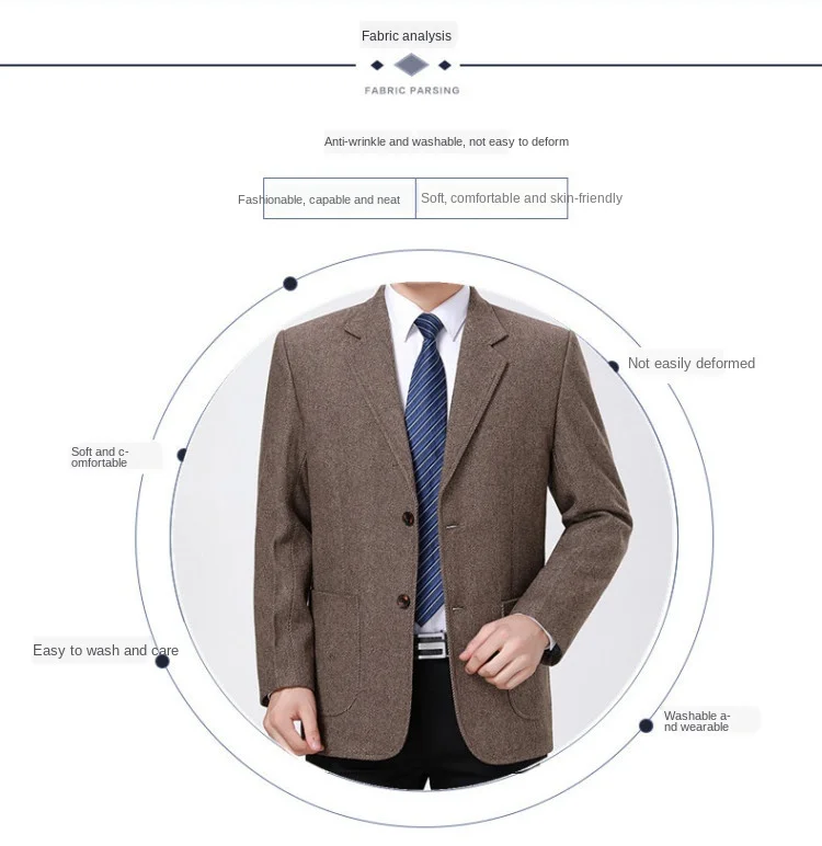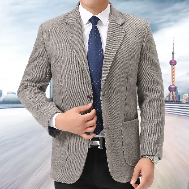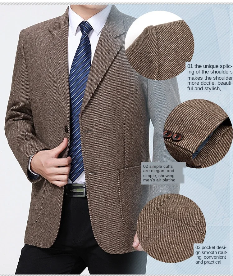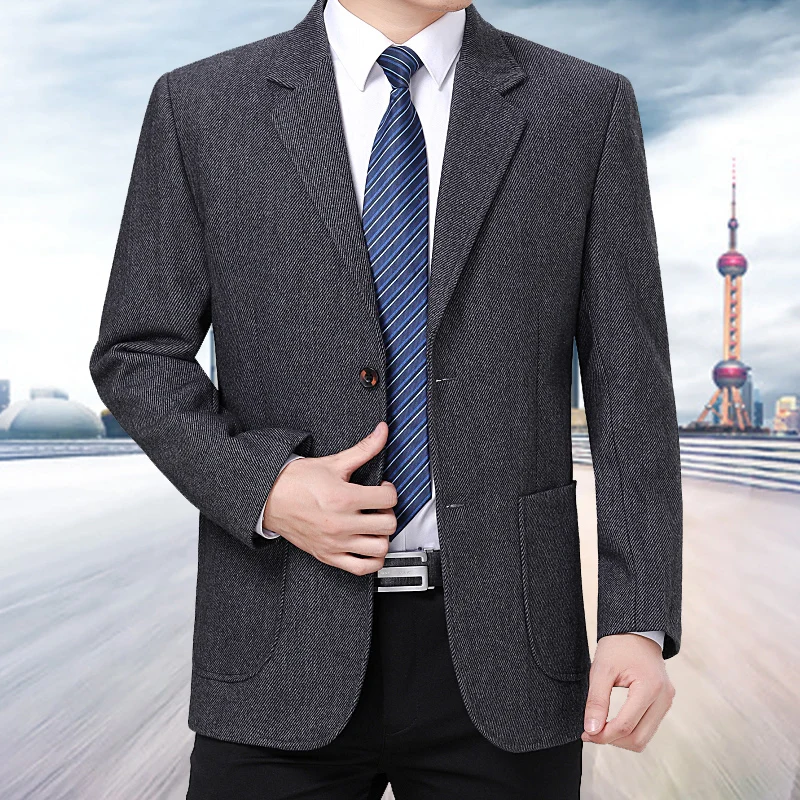 Middle-aged men’s spring and autumn coat business casual mens blazers dad and elderly men Slim fit high-end wool suit jacket