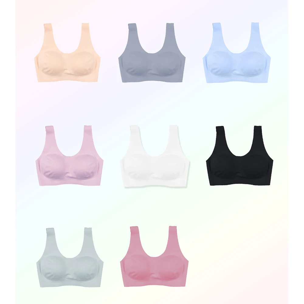 Mierside Sexy Women Push Up Femme Comfort Underwear Ice Silk Bra Seamless Sleep Top Padded Thin Solid Candy Lingerie Bralette