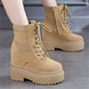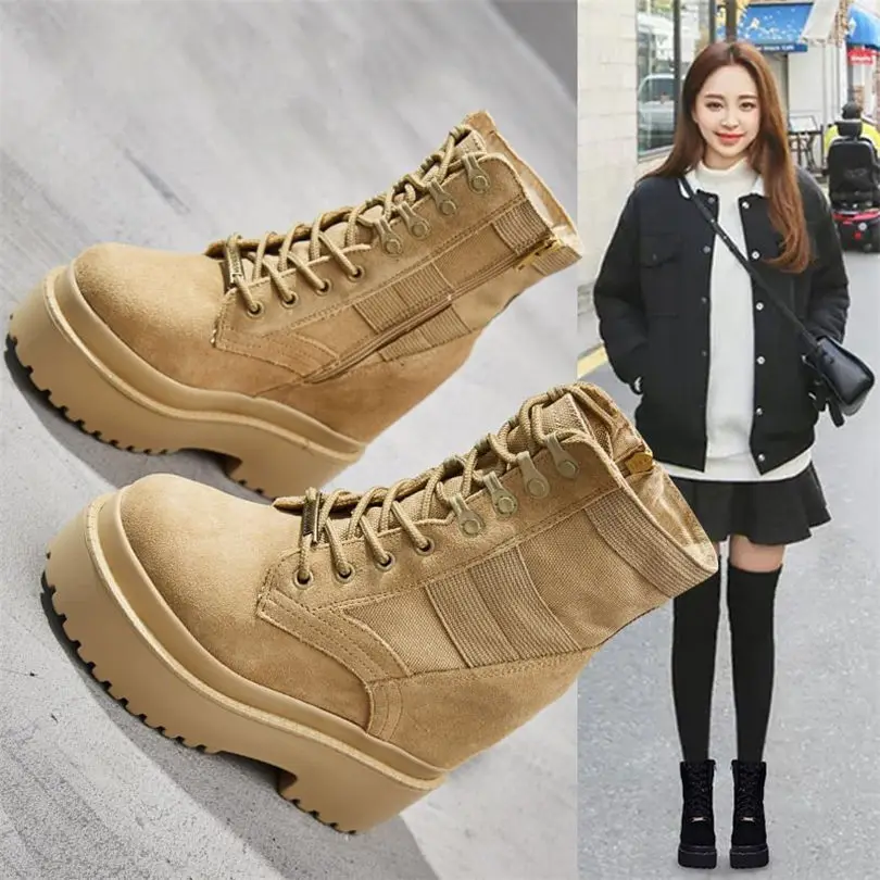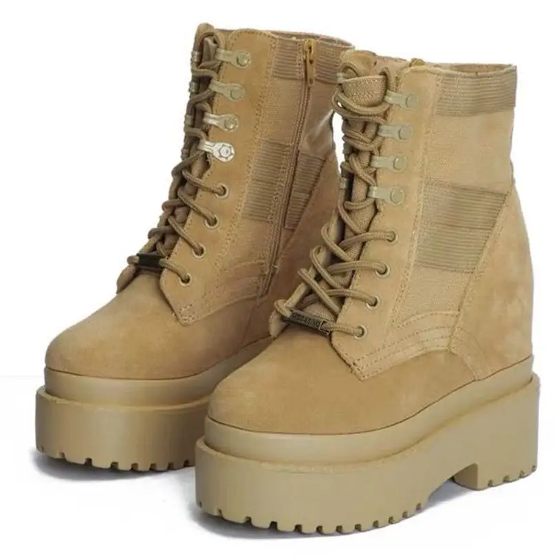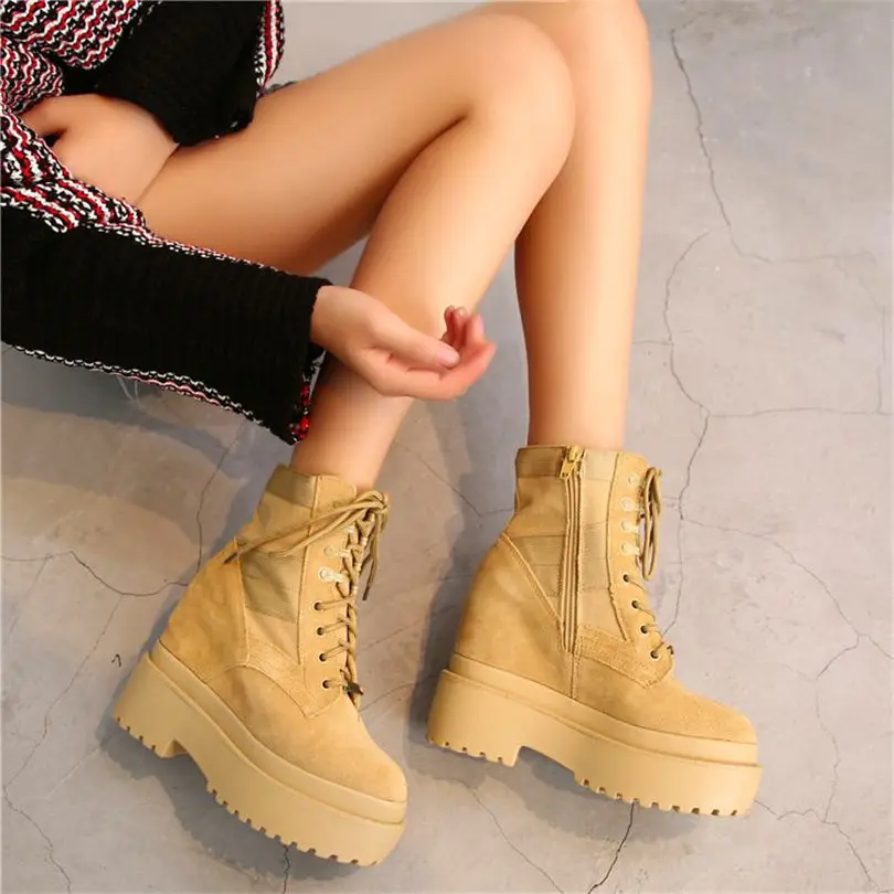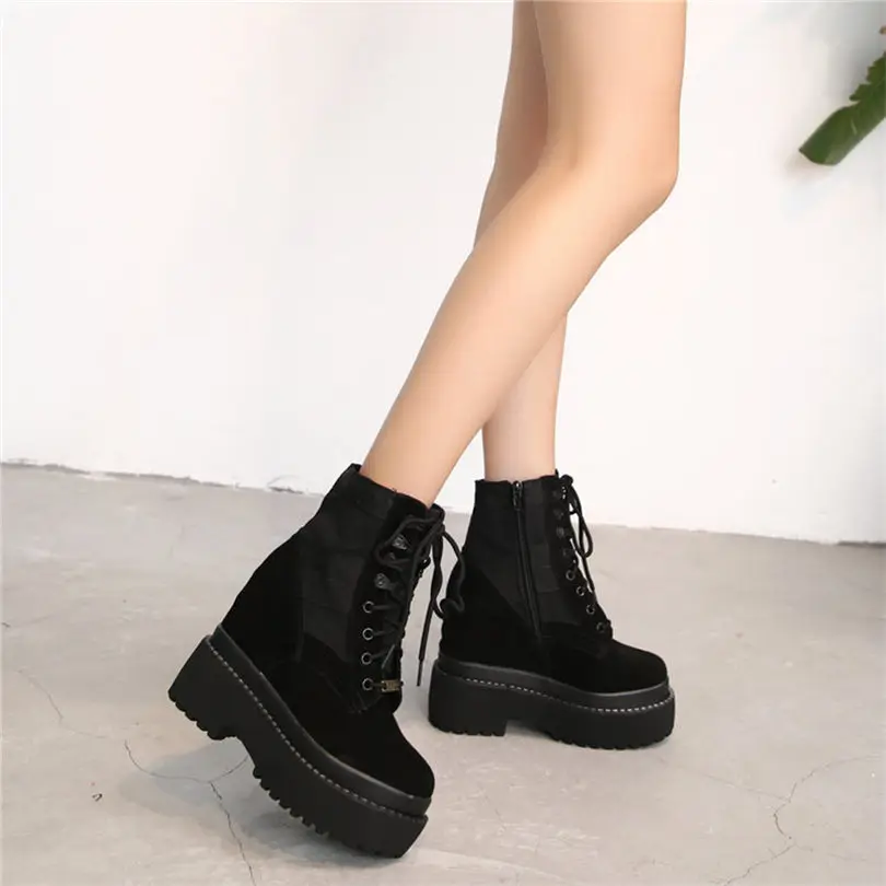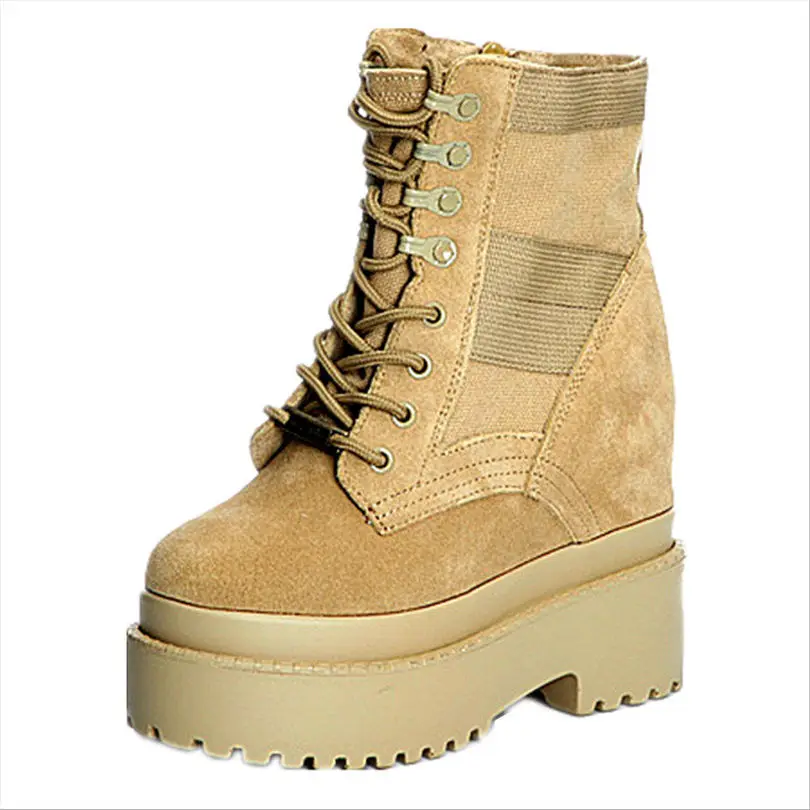 Military Women Suede Leather Ankle Boots Platform Wedge High Heel Buckle Lace Up Combat Oxfords Creepers Punk Goth Casual Party