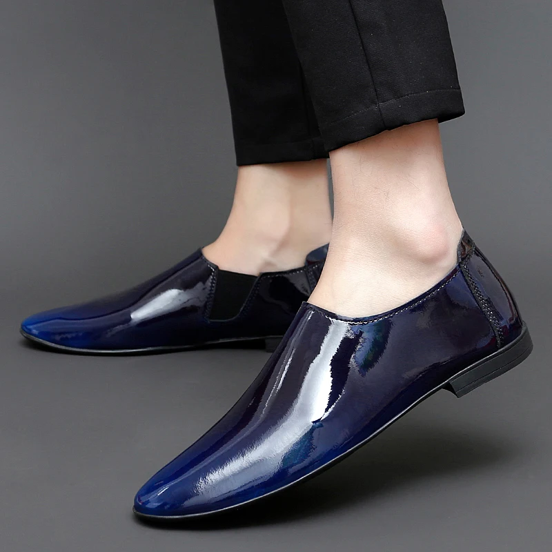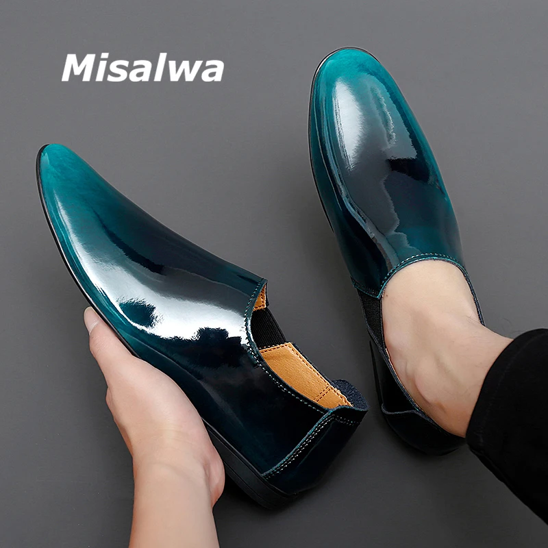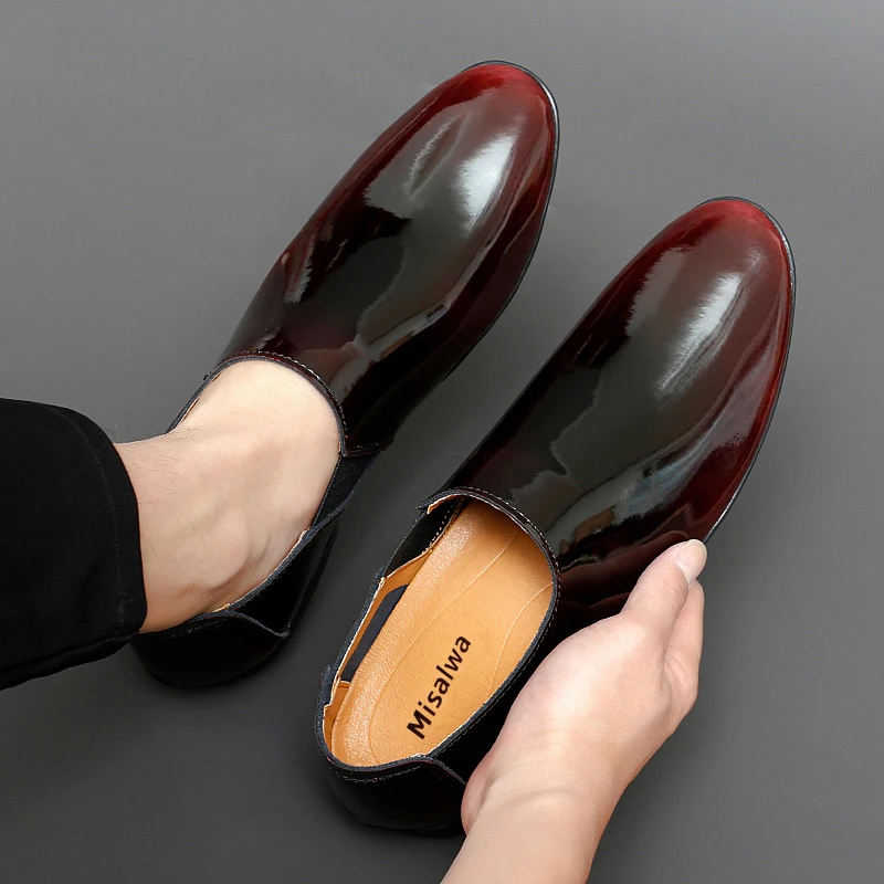 Misalwa Patent Leather Men Formal Shoe Fashion Glossy Men Flats Summer Italian Men Dress Shoes Luxury Men Loafers Petite Size