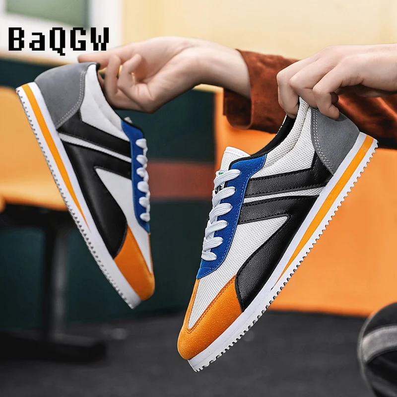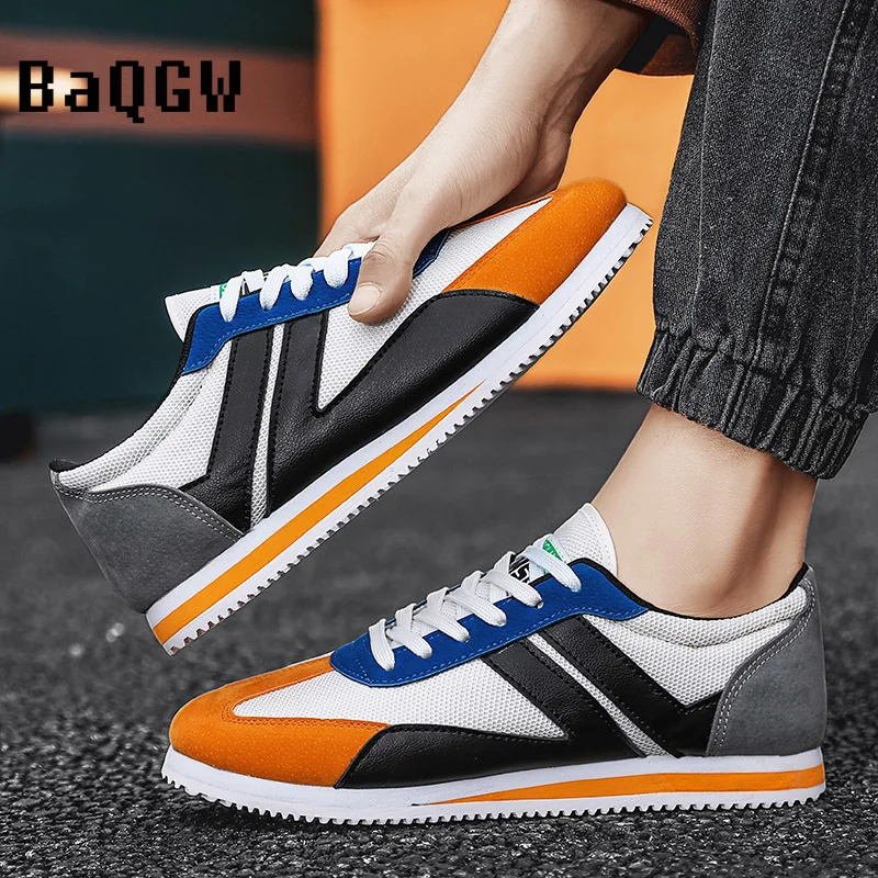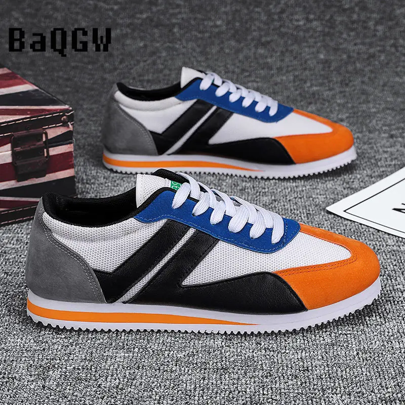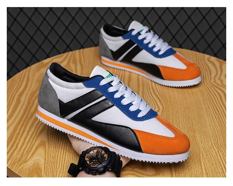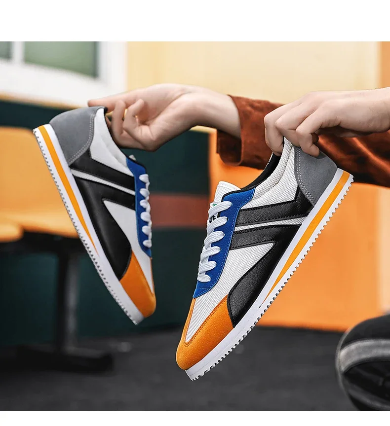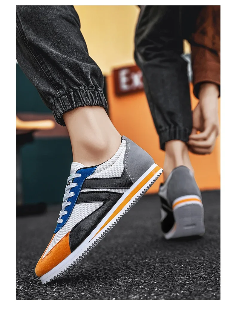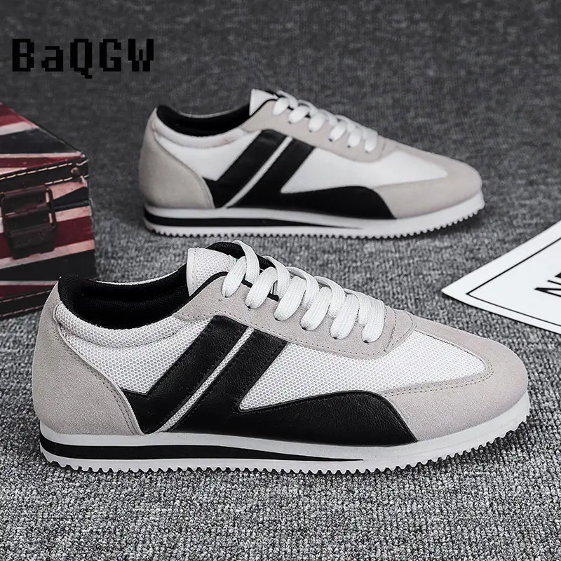 Mixed Colors Men Sneakers Casual Fashion Easy Matching Leather Mesh Breathable Height Increased Flat Platform Running Shoes