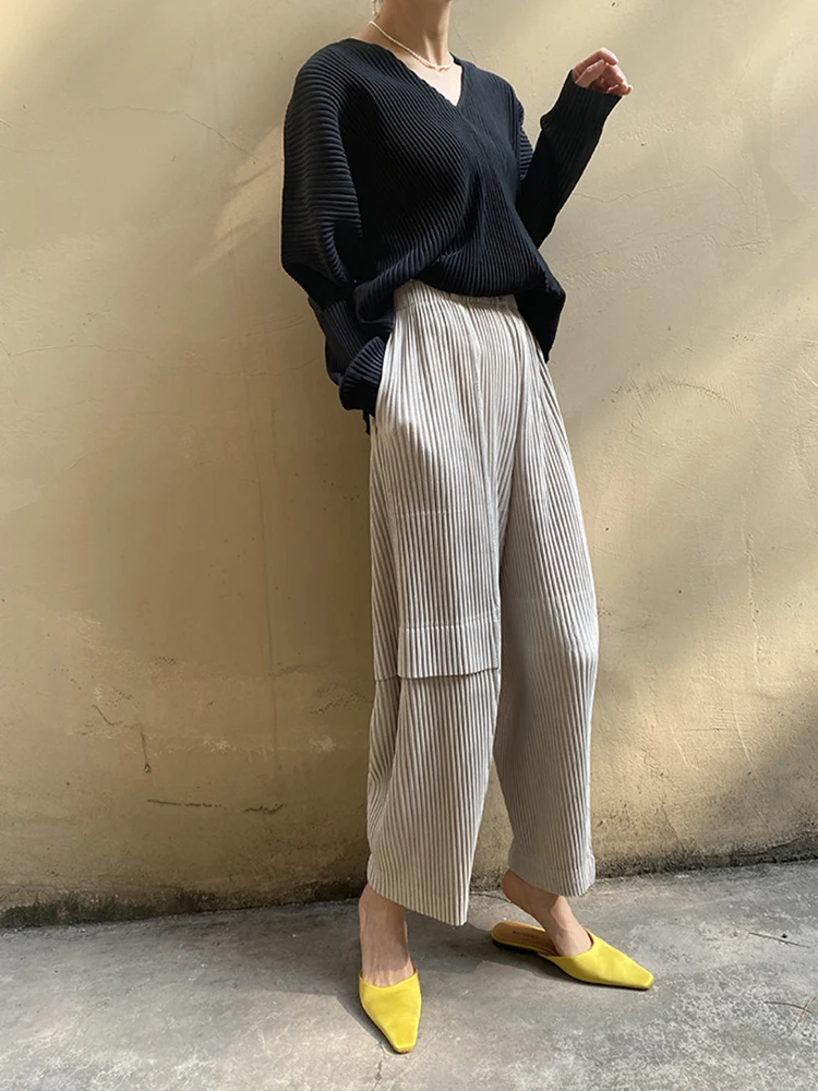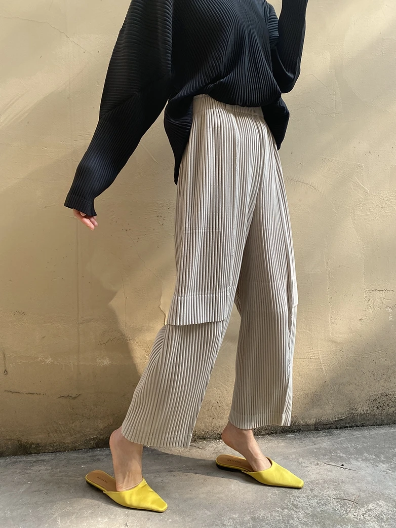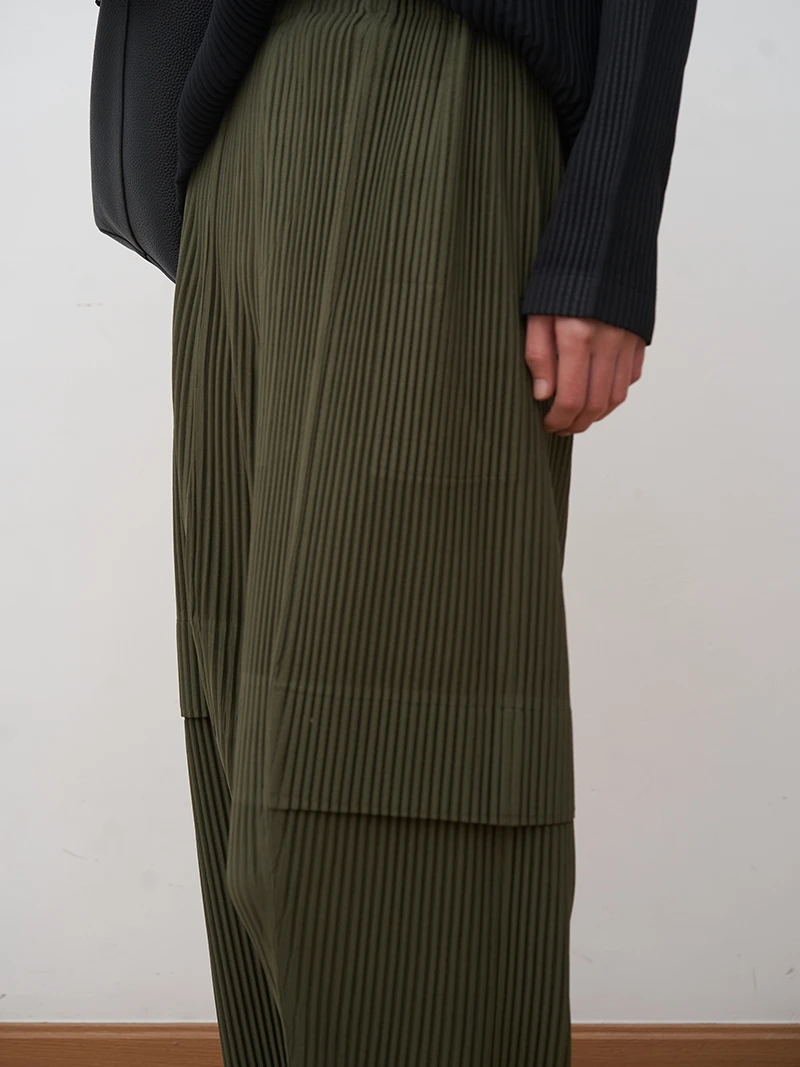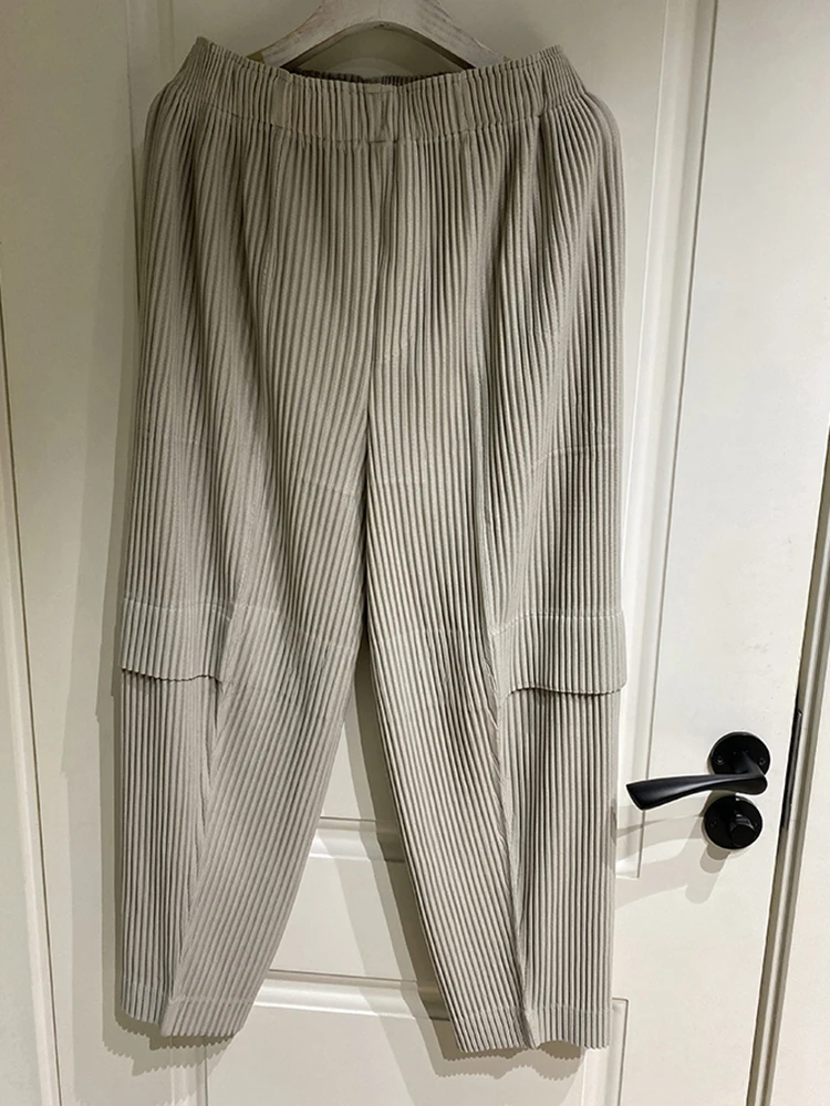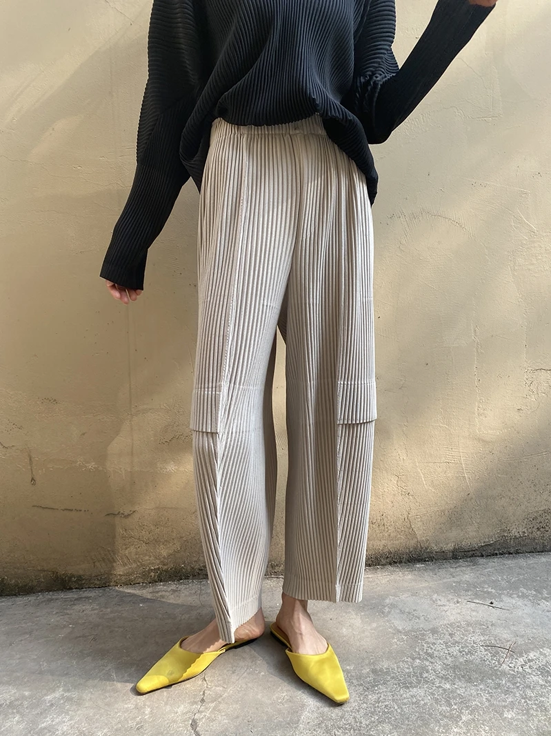 Miyake Pleated Cargo Pants 2023 New Women’s Pocket Style Pleated Casual Pants Wide Leg Ankle-Length Pants