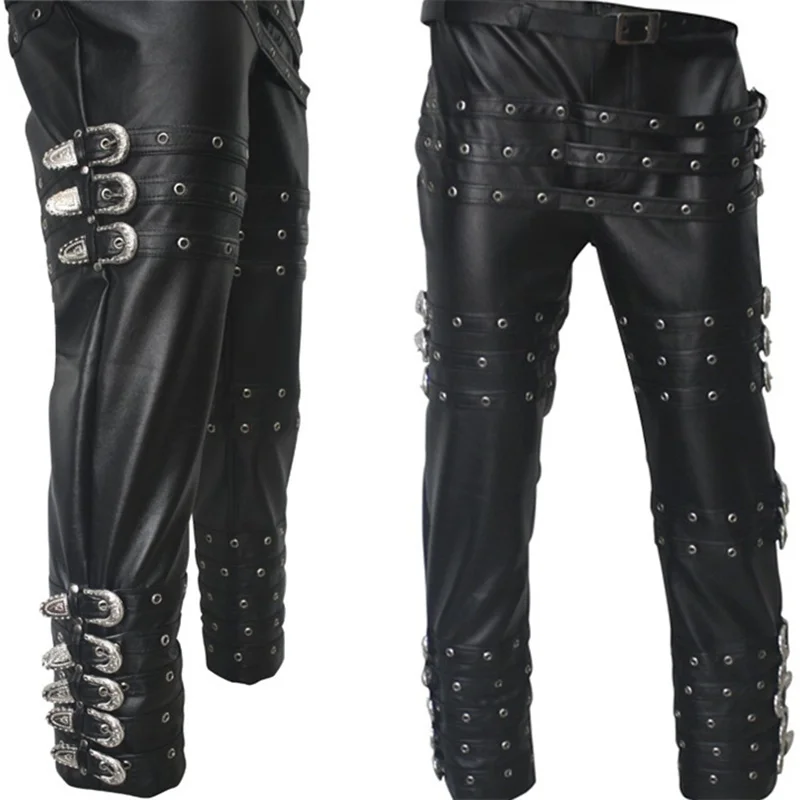 MJ Michael Jackson Punk Rock BAD Concert  Performance Imitate Leather Trousers Pants Chaparajos