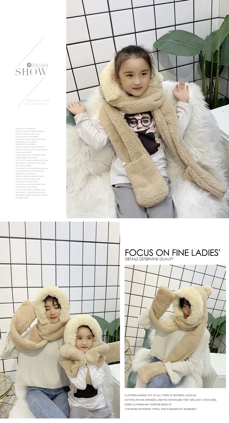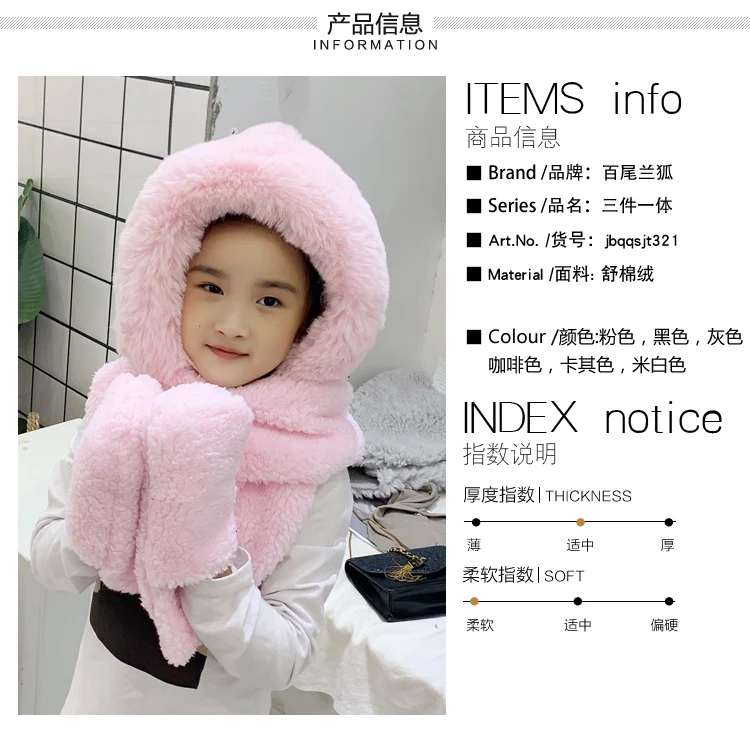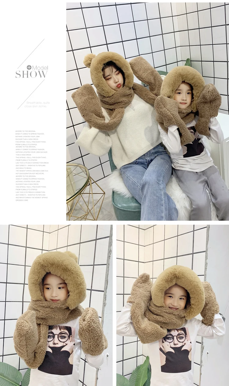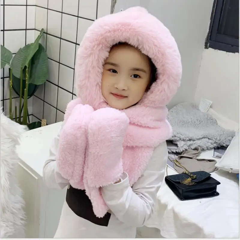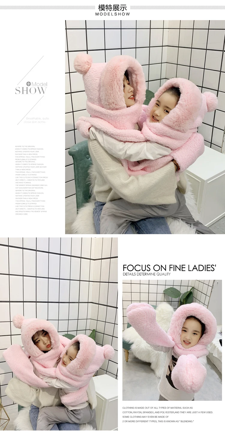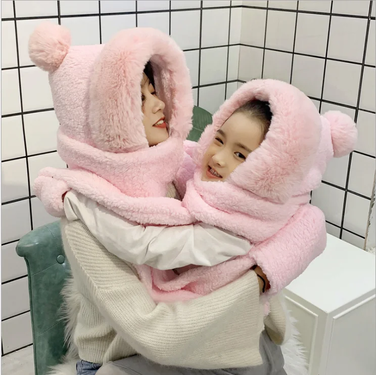 Children’s hats autumn and winter boys bib scarf gloves one parent-child baby windproof earmuffs plus velvet hat tide