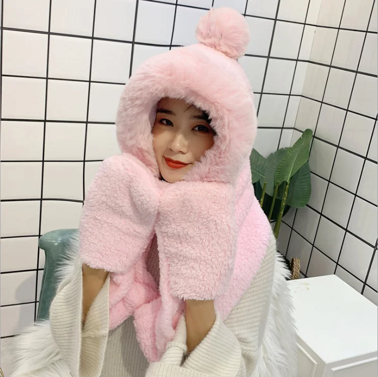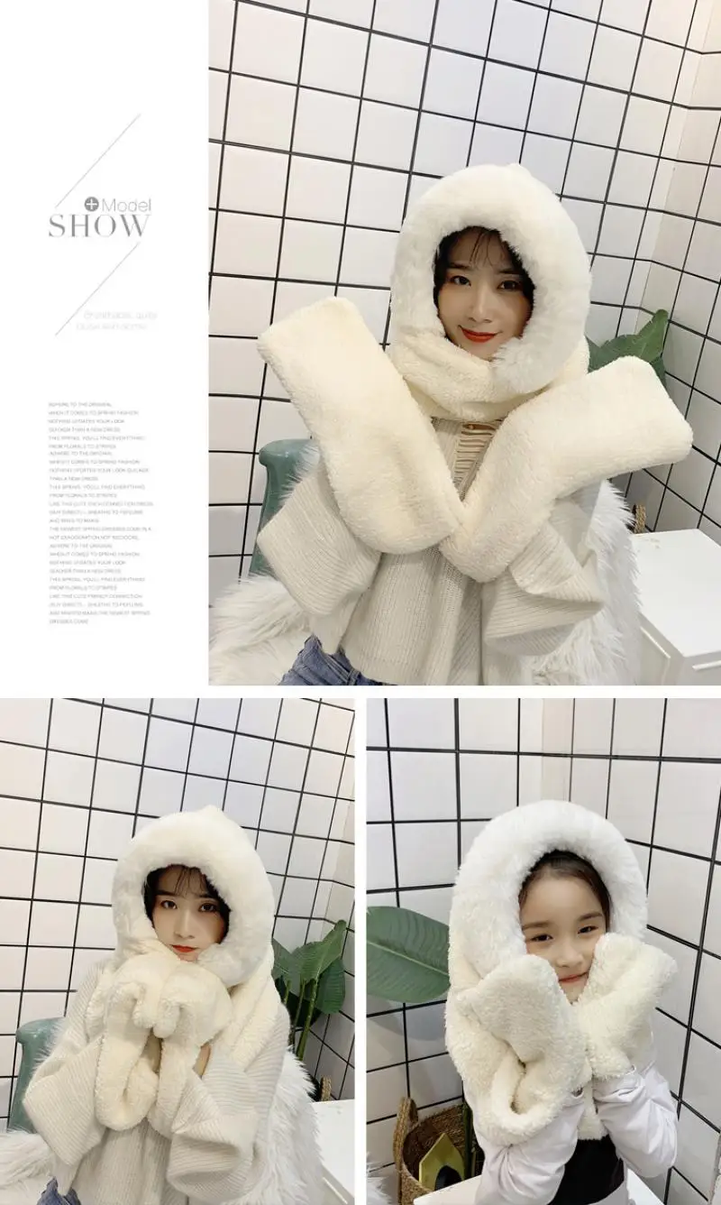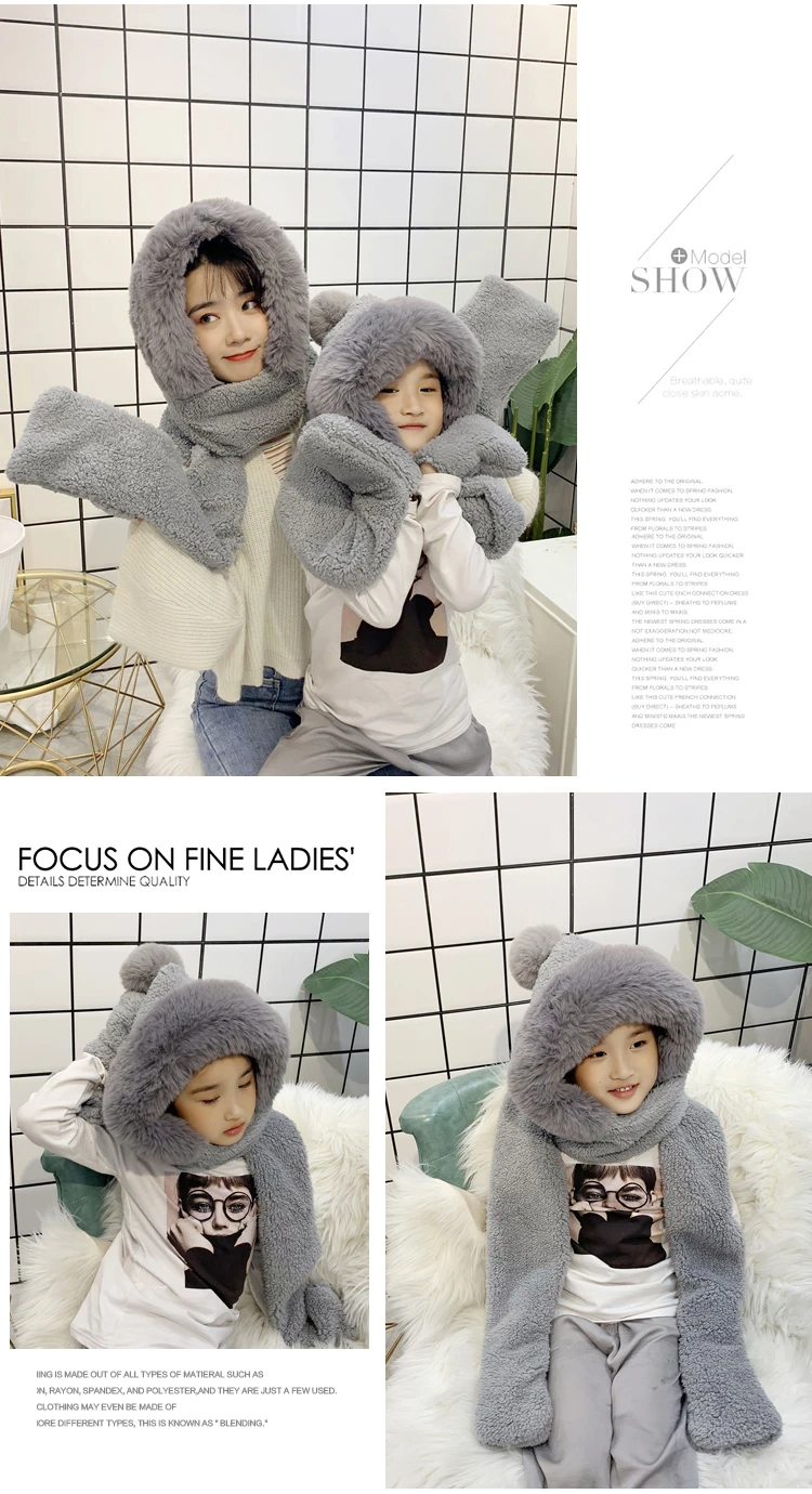 Mom and me Winter hat women double thick hat scarf gloves one three-piece Korean version parent-child thickening scarf students