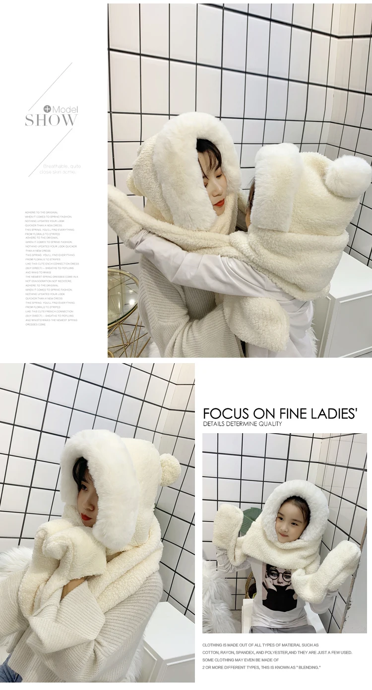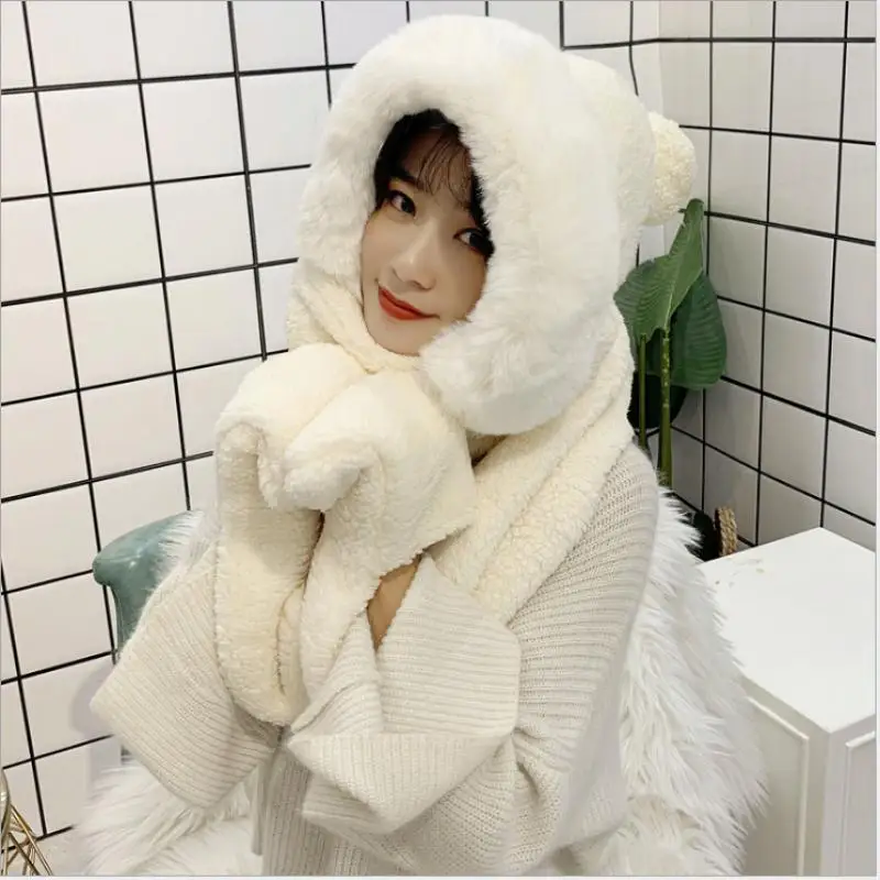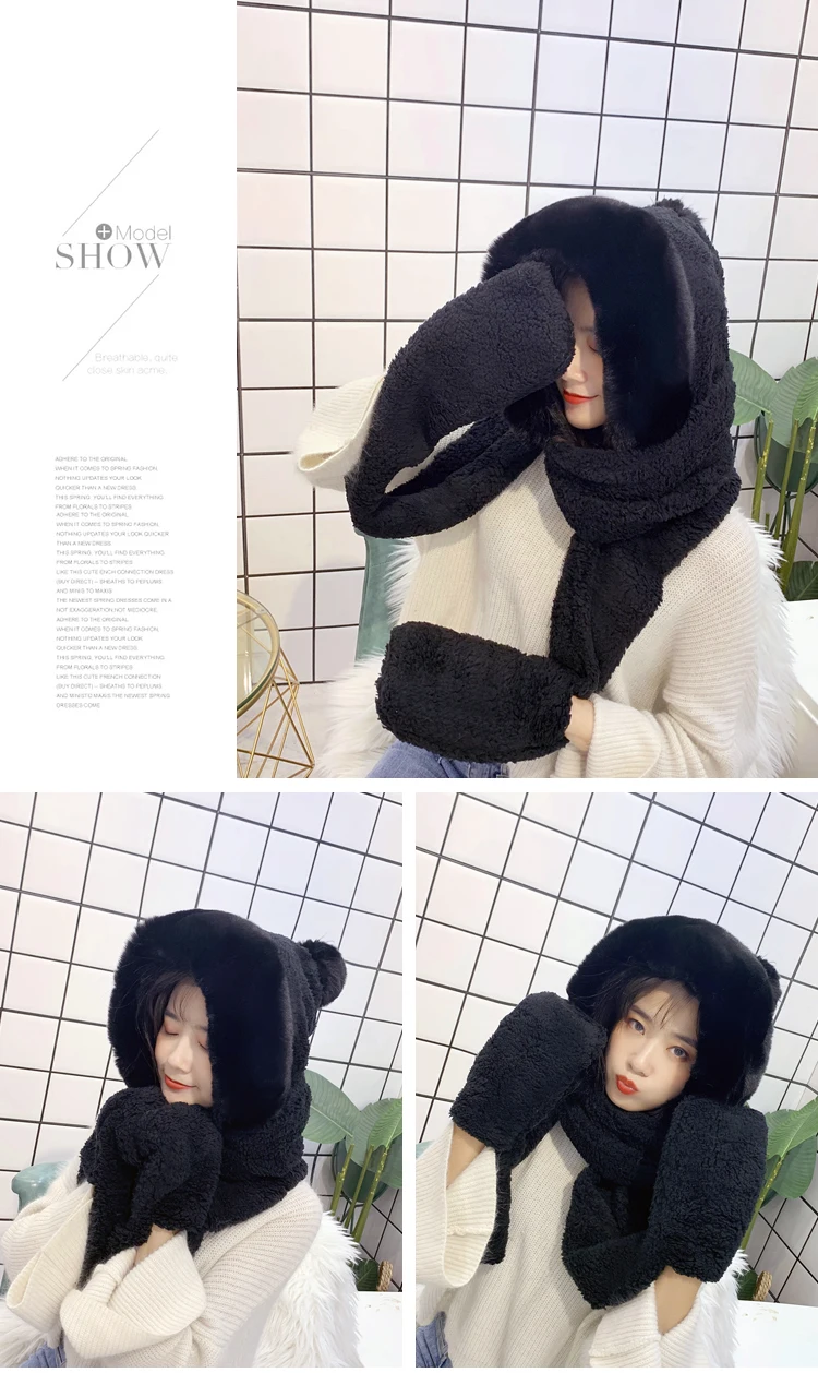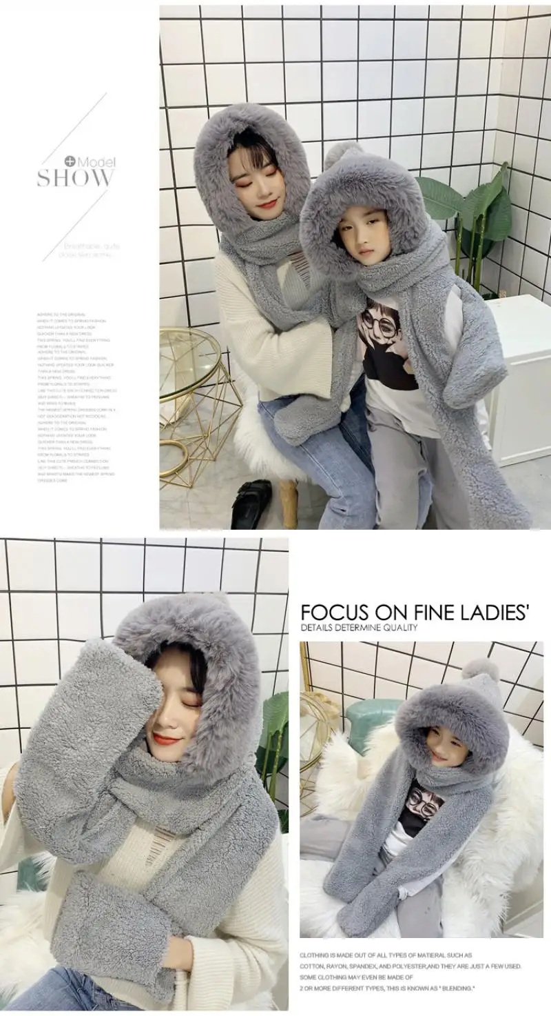 Mom and me Winter hat women double thick hat scarf gloves one three-piece Korean version parent-child thickening scarf students