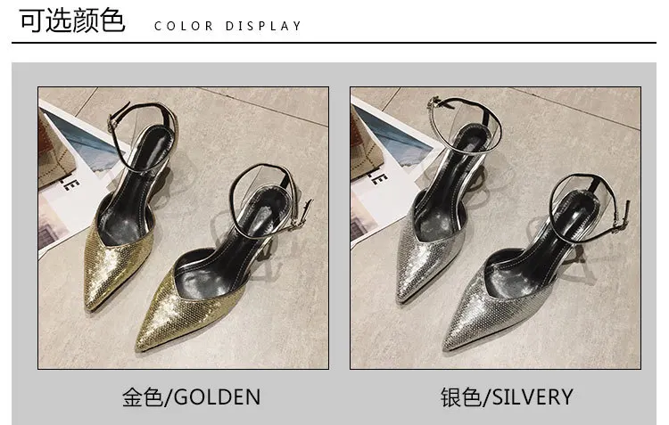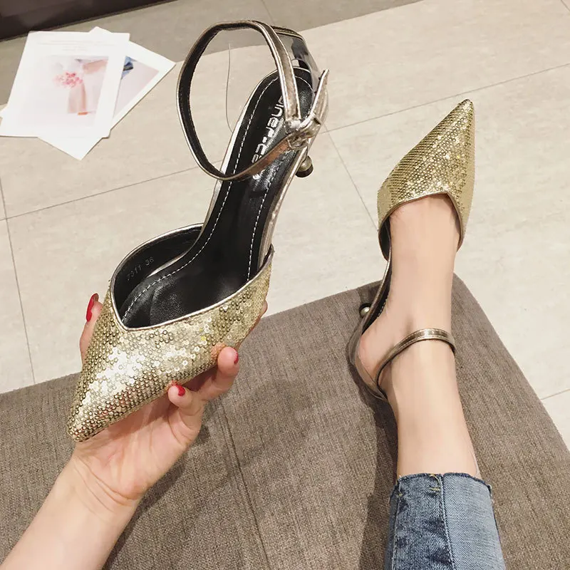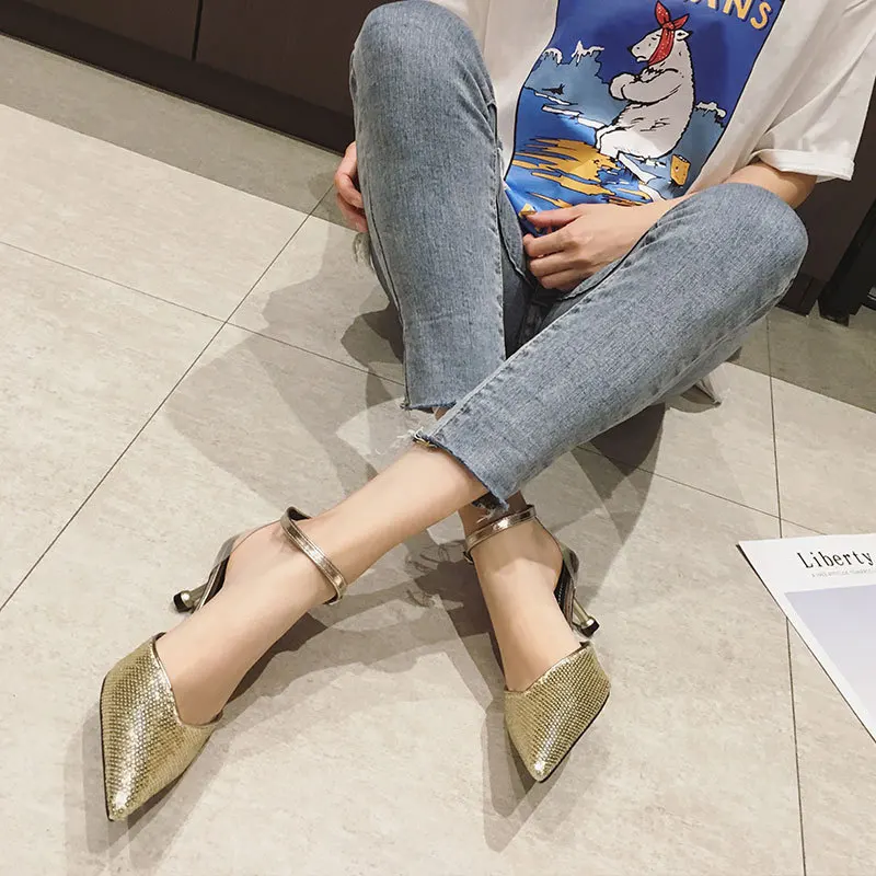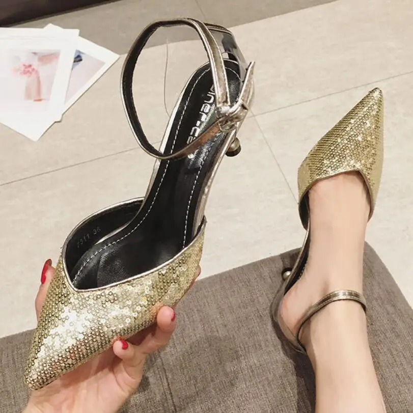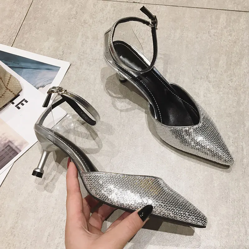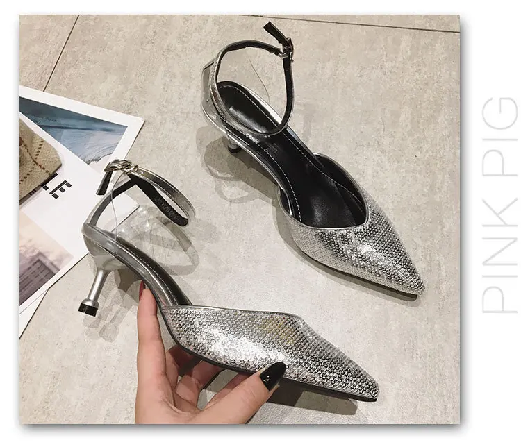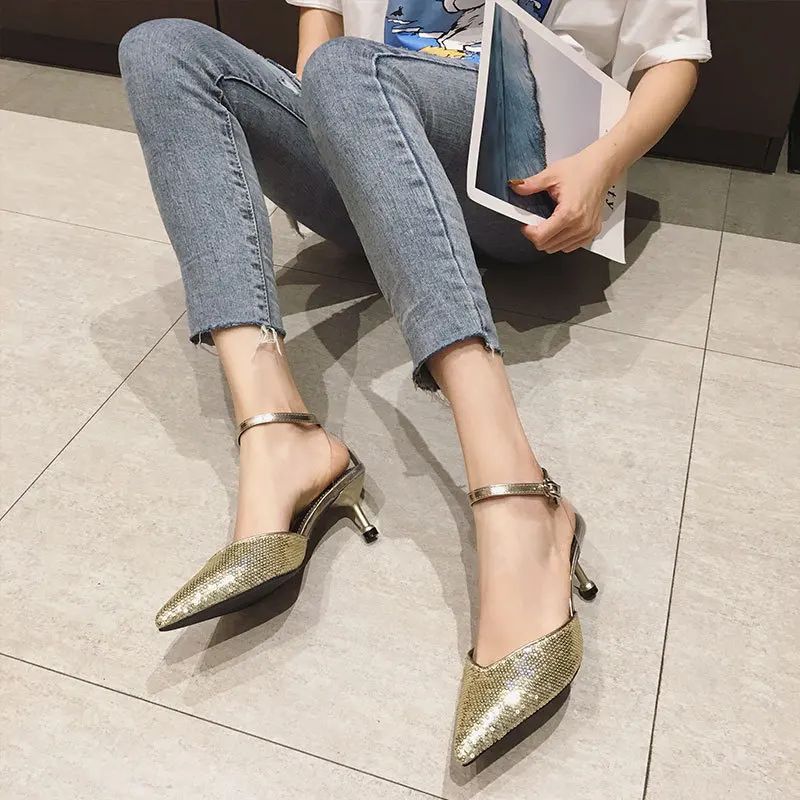 mules gold/silver glitter high heels sandals women transparent cover heel sandalias ladies bling party shoes cutout sandalen
