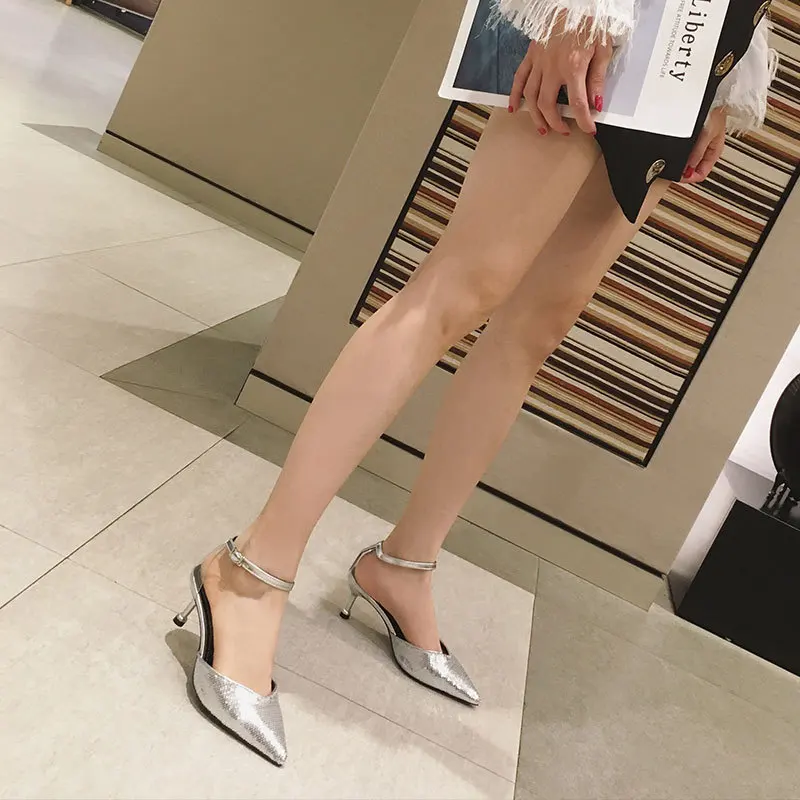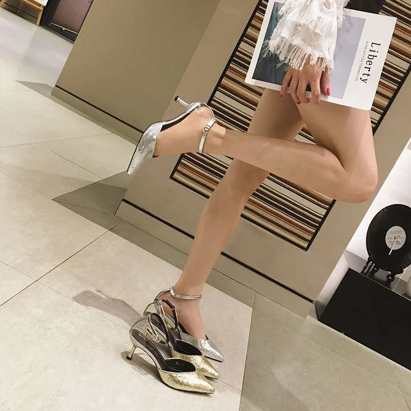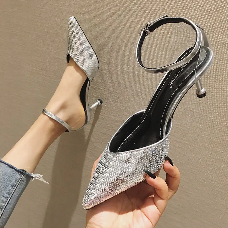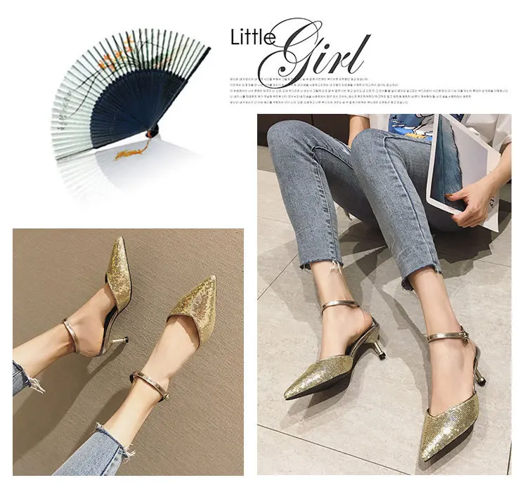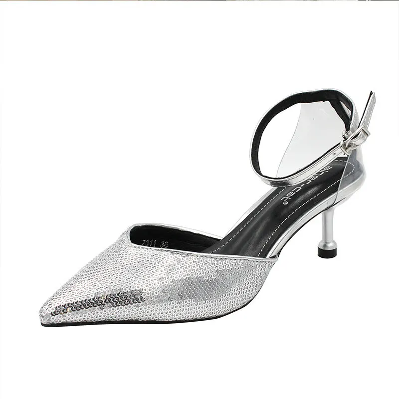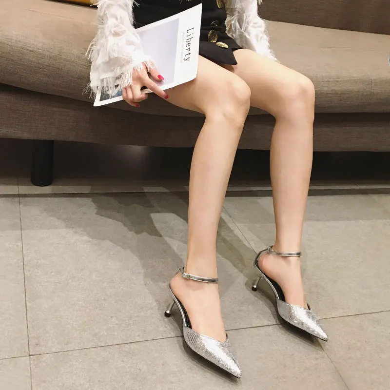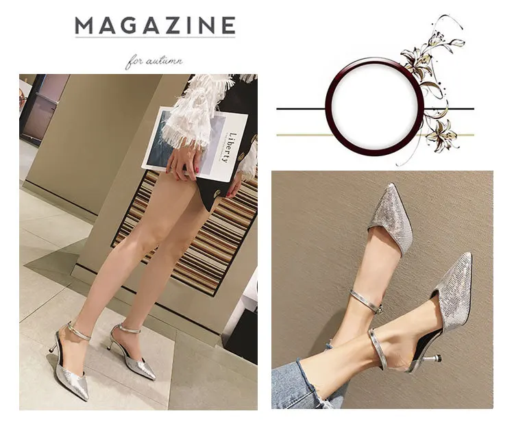 mules gold/silver glitter high heels sandals women transparent cover heel sandalias ladies bling party shoes cutout sandalen