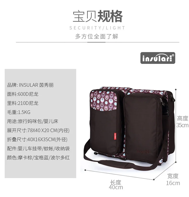 Multi-function Folding crib mosquito net Diapers Bags Mummy Travel Baby Bottle Cloth Case Large Space Baby Portable Nursing Bag