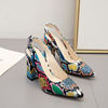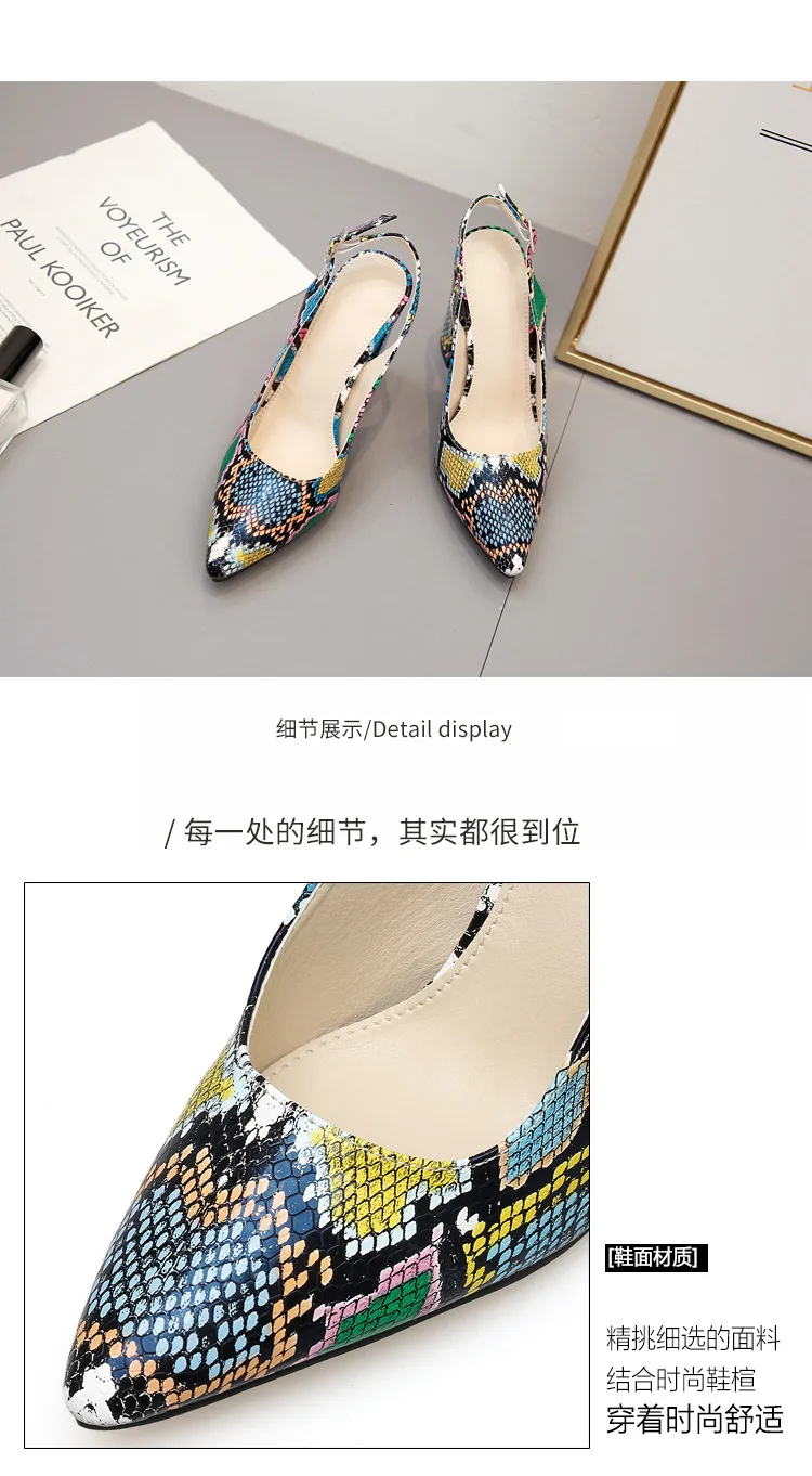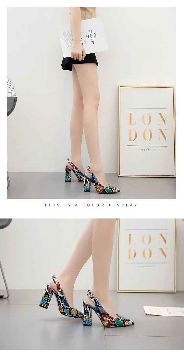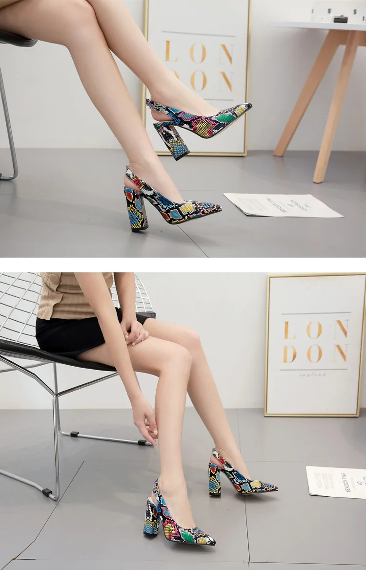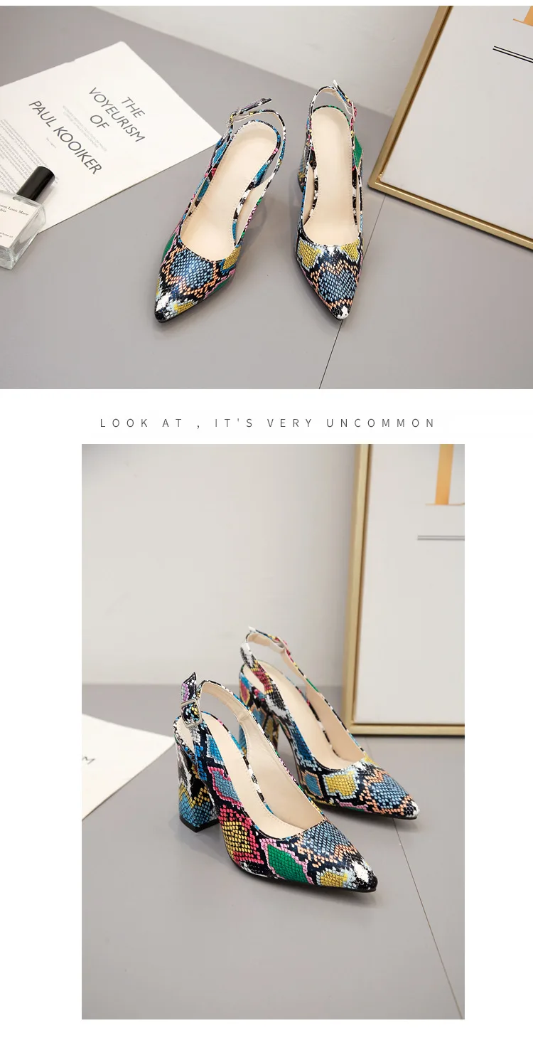 Multicolor Snake pattern pumps woman sandals belt buckle serpentine talons hauts pointed toe thick high heels shoes women 2021