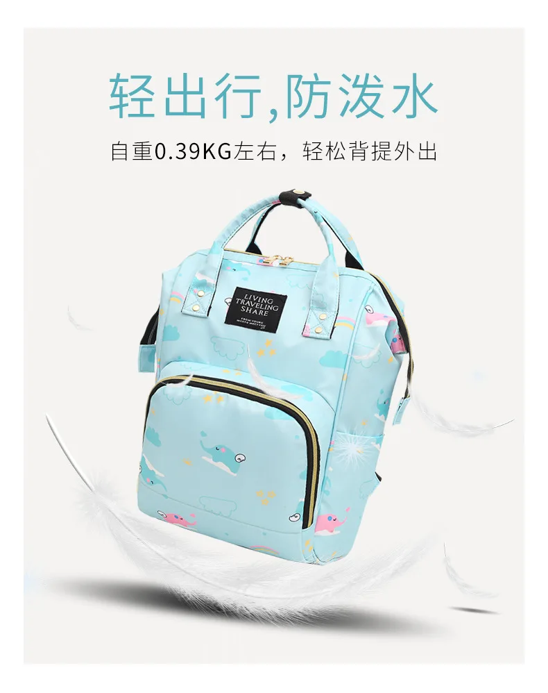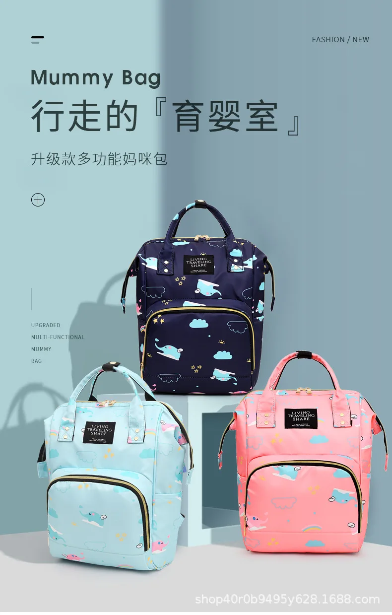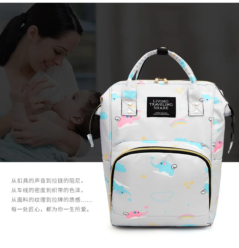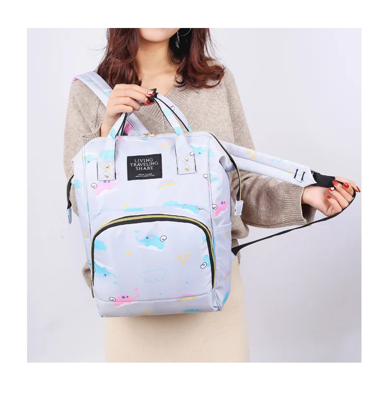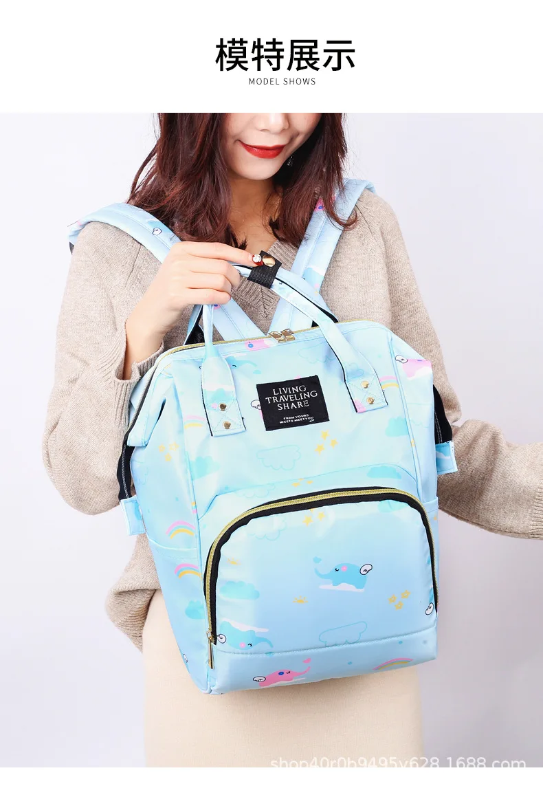 Mummy Bag Diaper Multifunctional Bag Baby Large Capacity Maternity Backpack Elephant Print Wet Waterproof Bag Baby Pregnant Bag