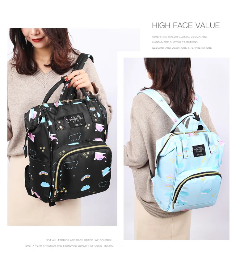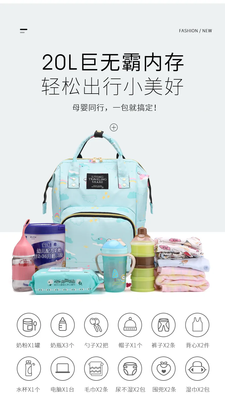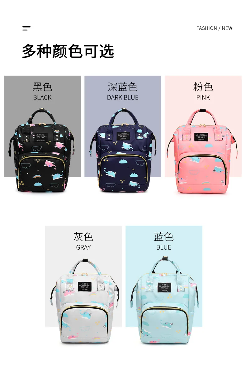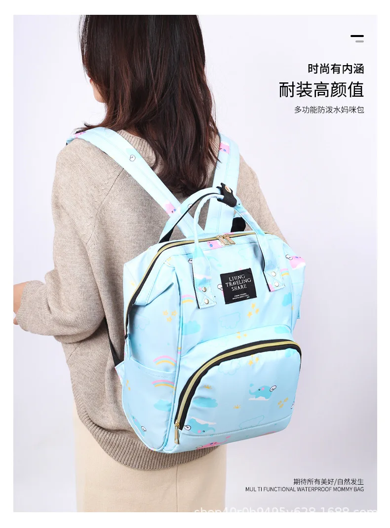 Mummy Bag Diaper Multifunctional Bag Baby Large Capacity Maternity Backpack Elephant Print Wet Waterproof Bag Baby Pregnant Bag