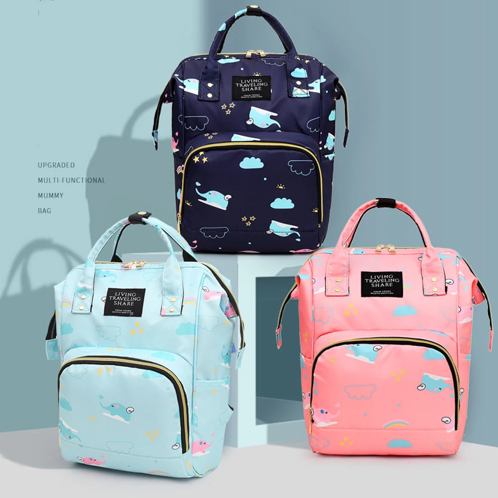 Mummy Bag Diaper Multifunctional Bag Baby Large Capacity Maternity Backpack Elephant Print Wet Waterproof Bag Baby Pregnant Bags
