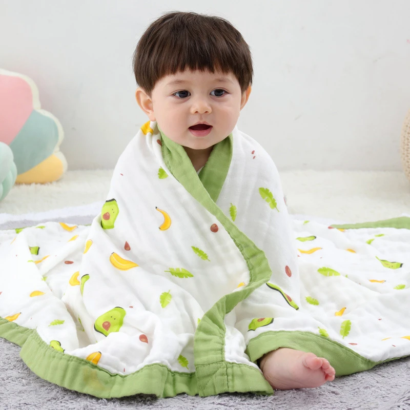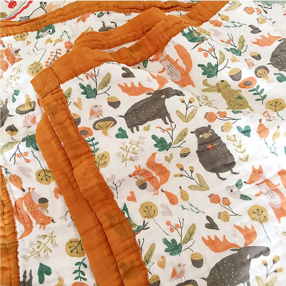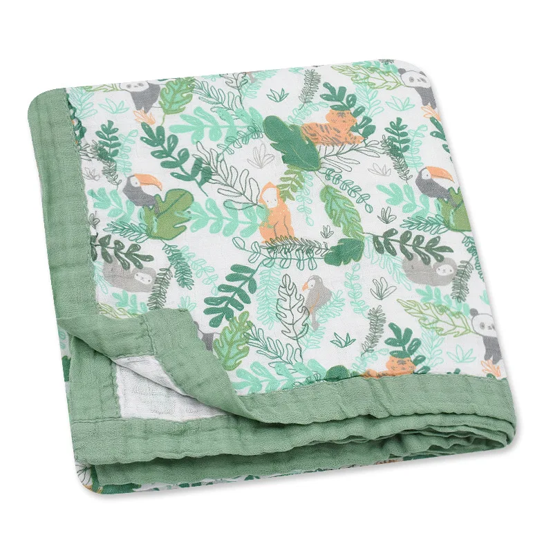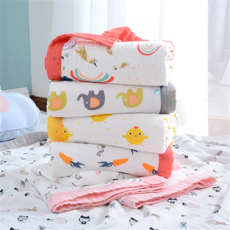 Muslin Infant Baby Blanket Soft Skin-friendly Cartoon Quilt Newborn Blanket Six-layer Gauze Wrapper Towel Bath Towel
