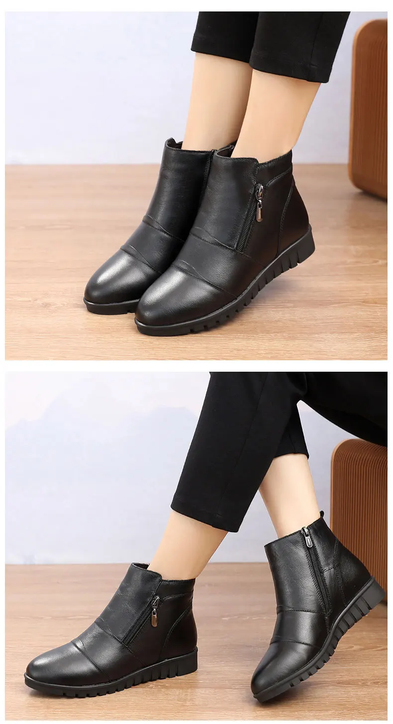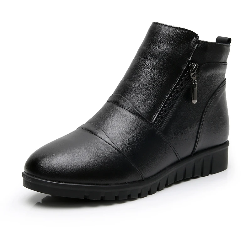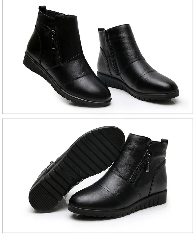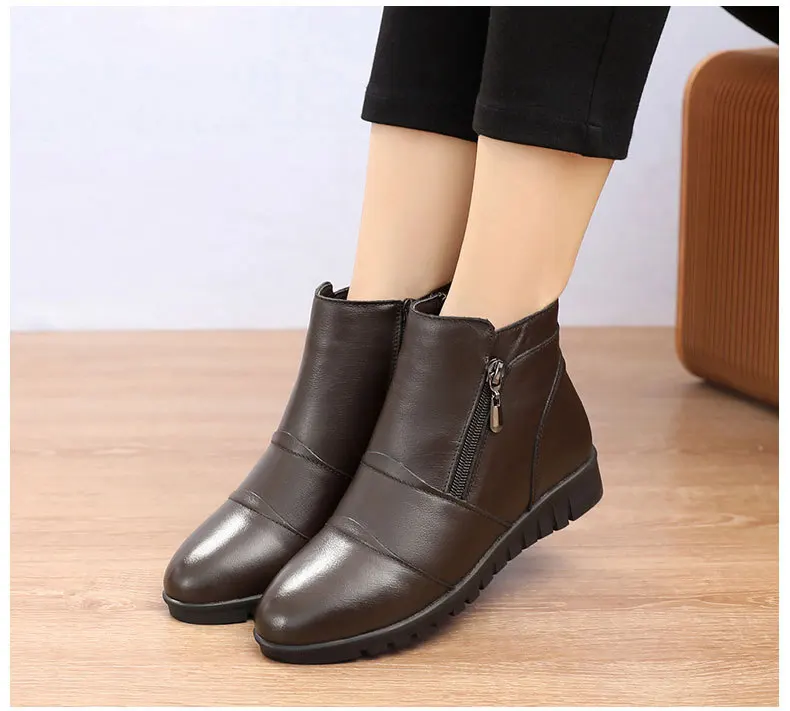 MUYANG 2020 Fashion Ankle Boots Women Genuine Leather Flats Boots Winter Shoes Woman Warm Non-Slip Black Brown Women Boots