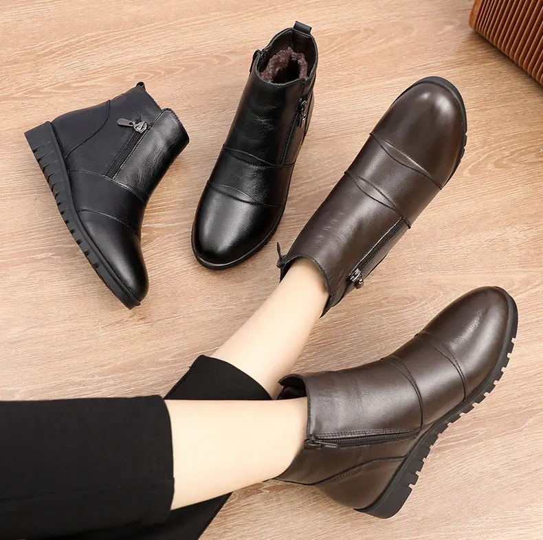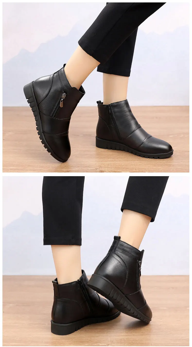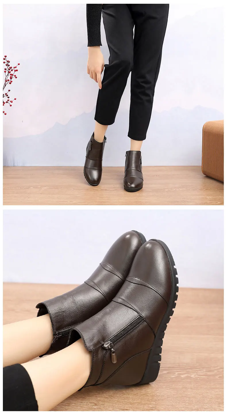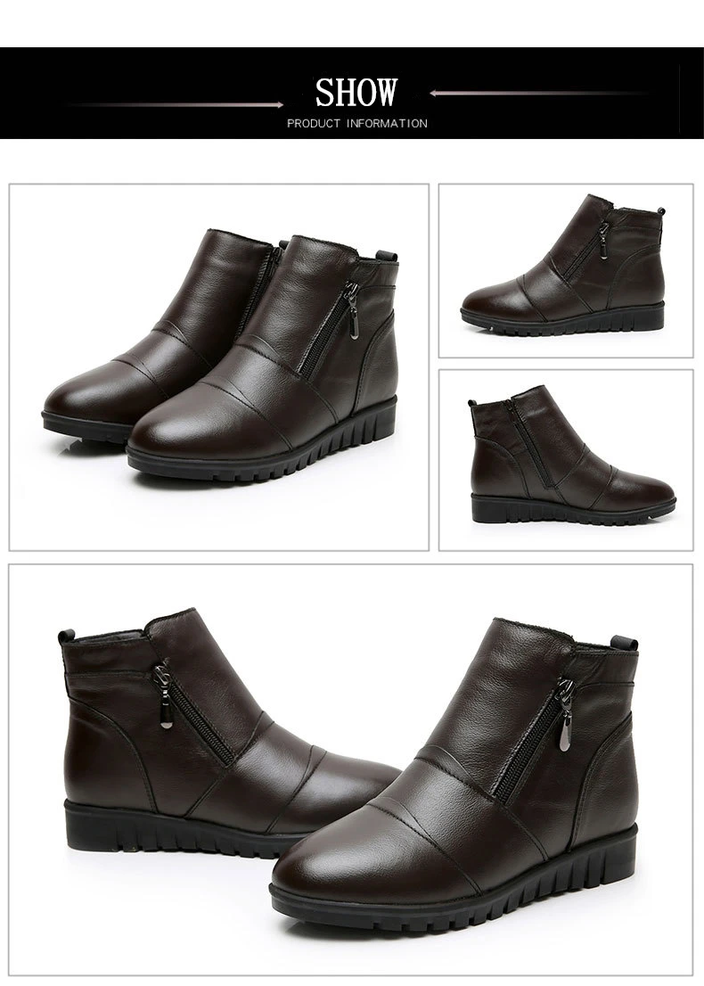 MUYANG 2020 Fashion Ankle Boots Women Genuine Leather Flats Boots Winter Shoes Woman Warm Non-Slip Black Brown Women Boots