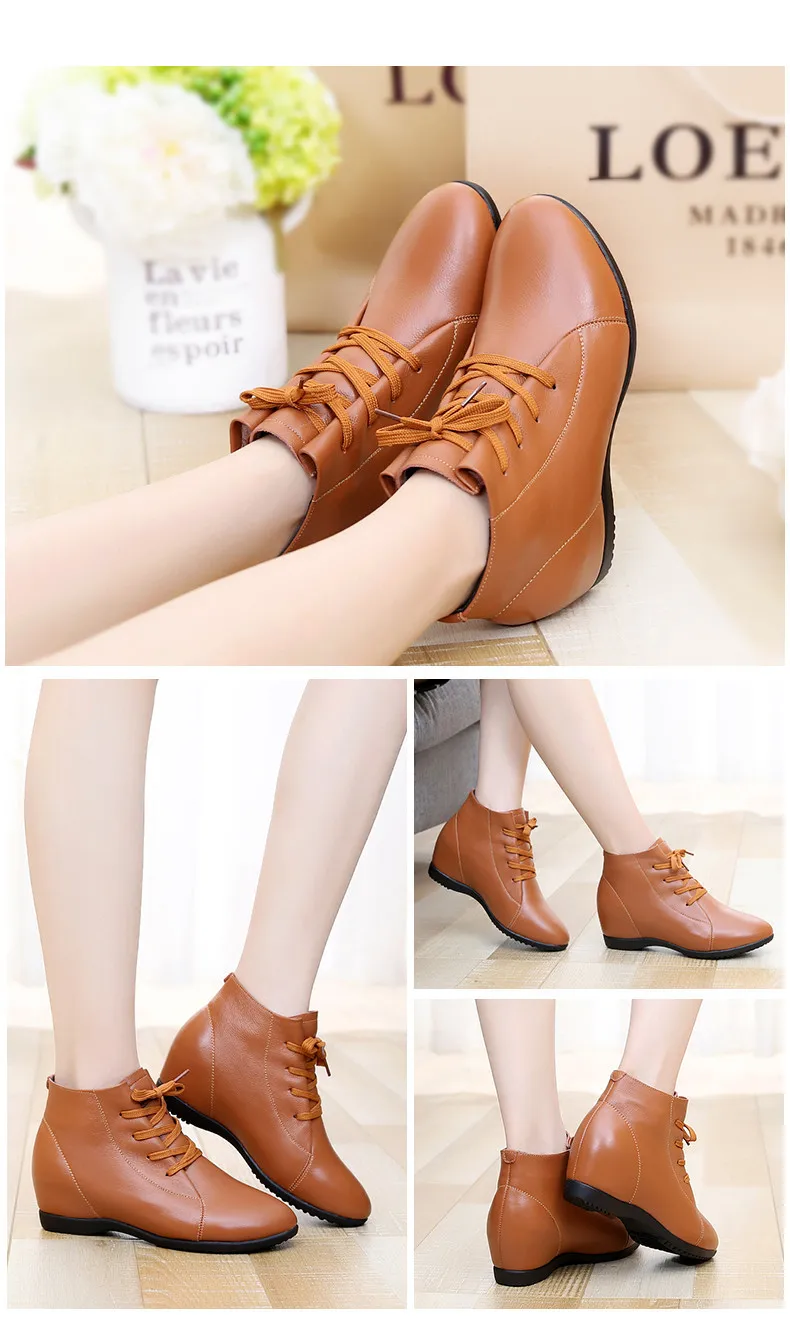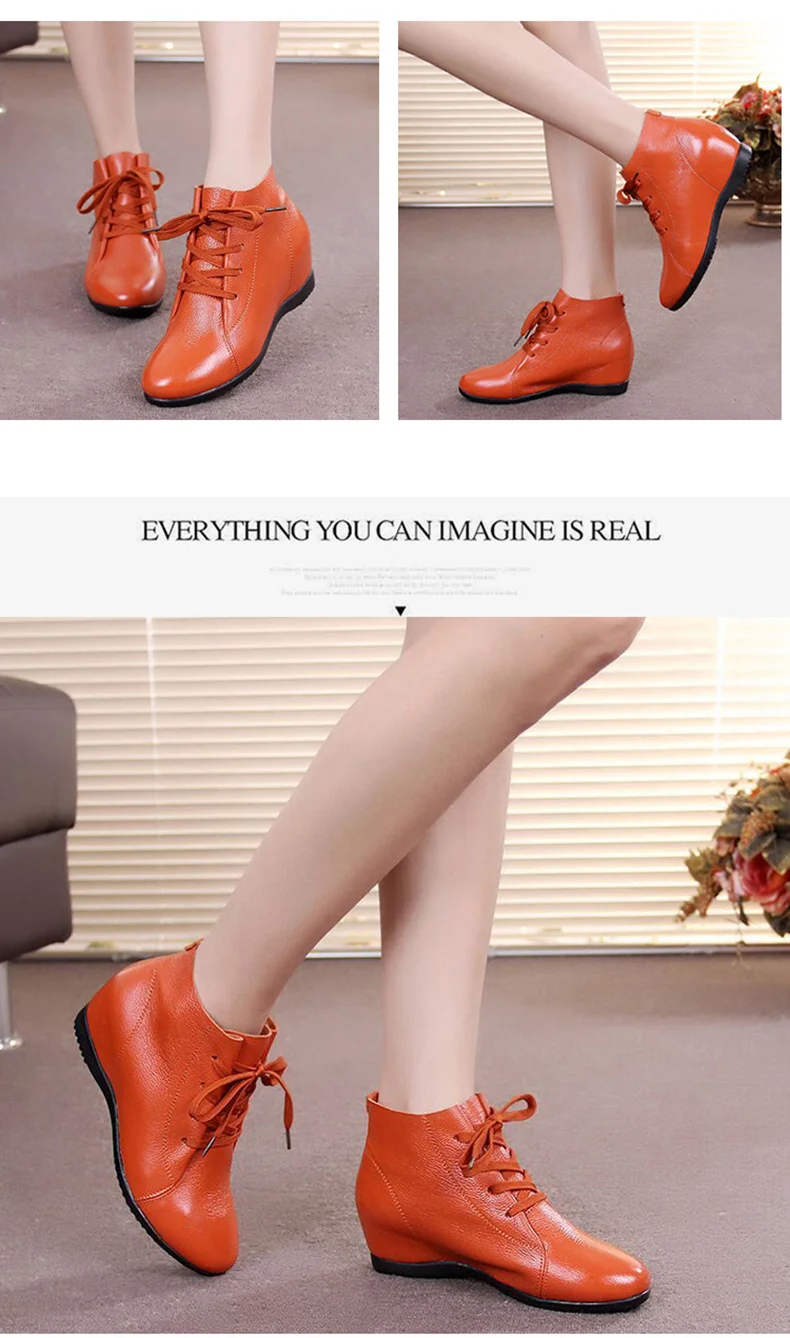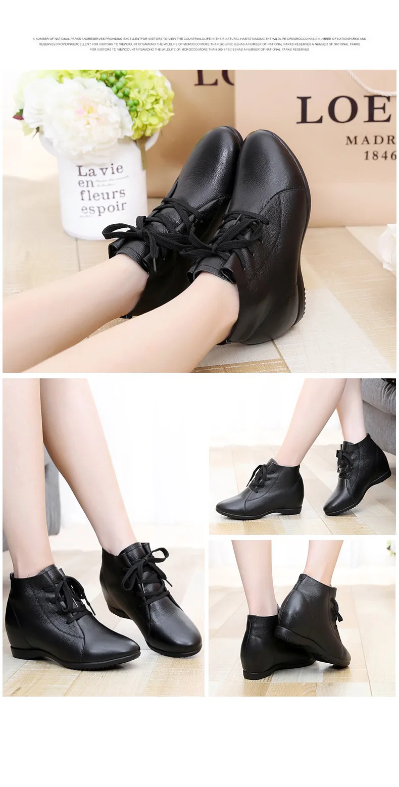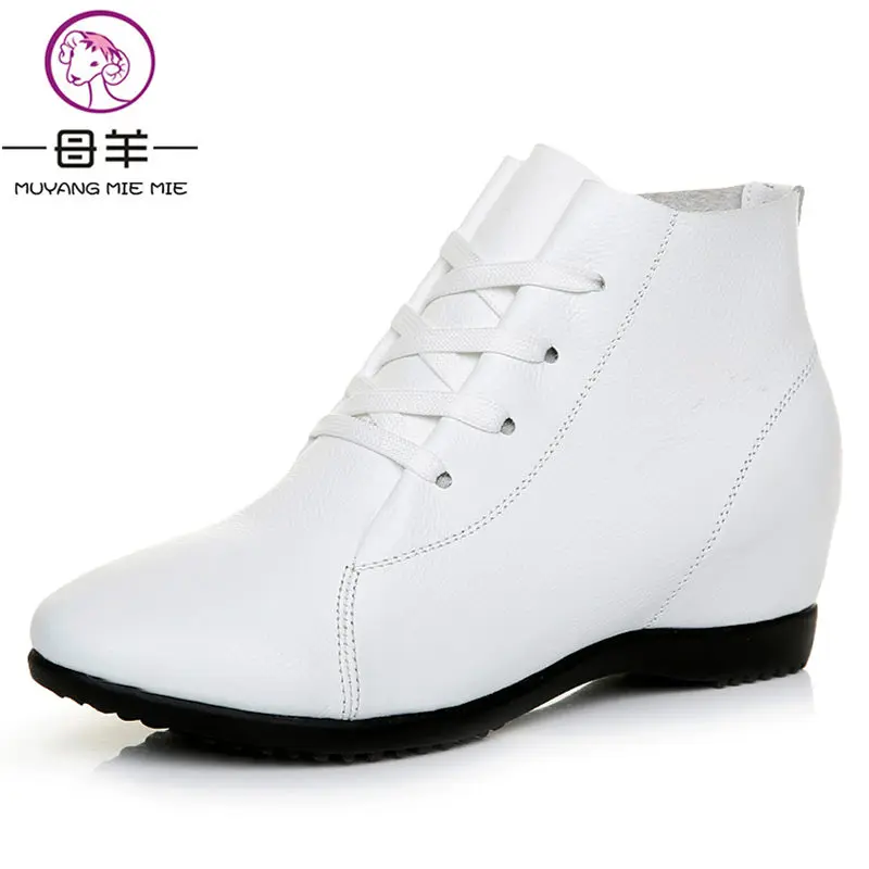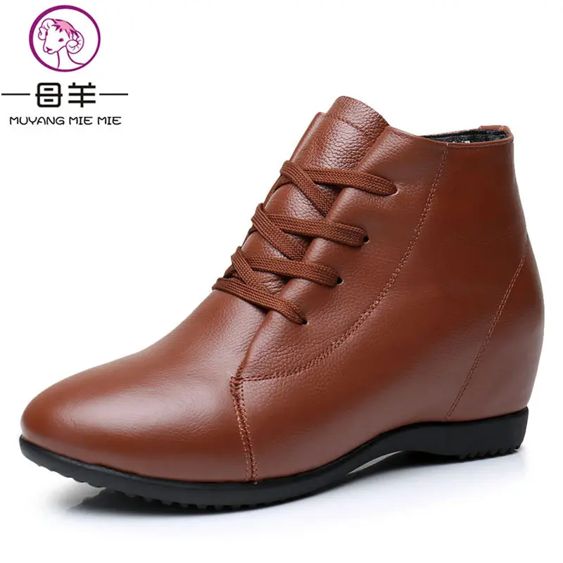 MUYANG MIE MIE Size 33-43 Winter Women Shoes Woman Genuine Leather Wedges Snow Boots Height Increasing Ankle Boots Women Boots