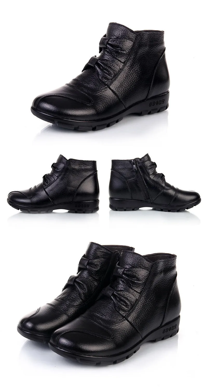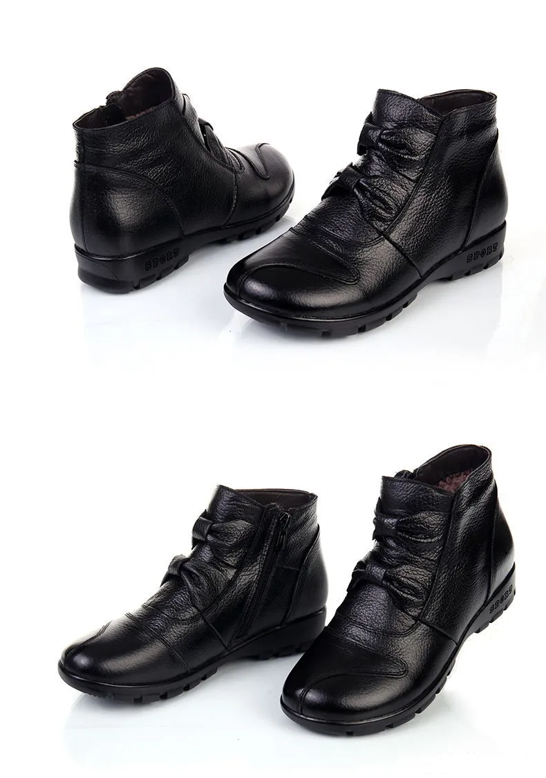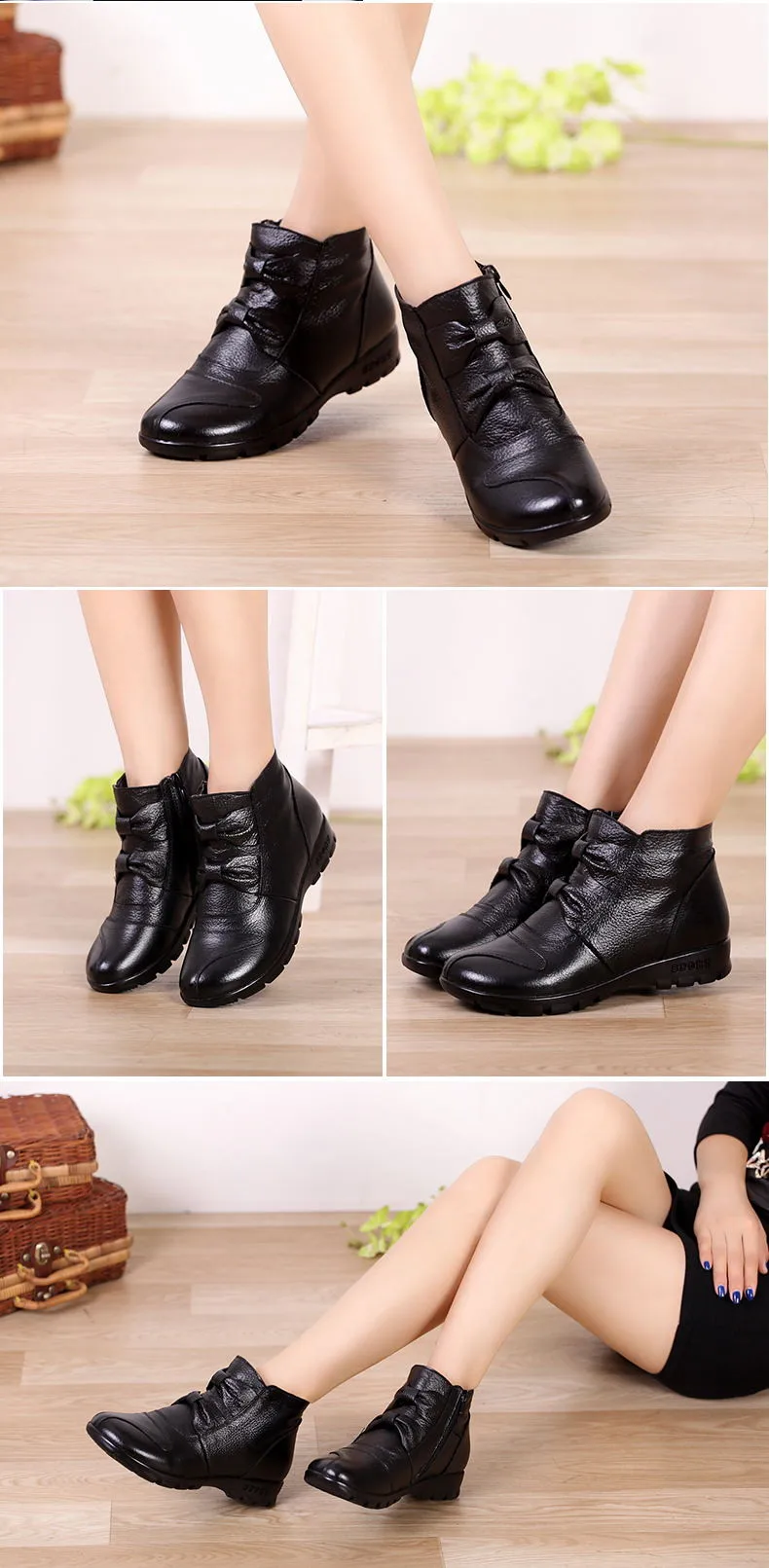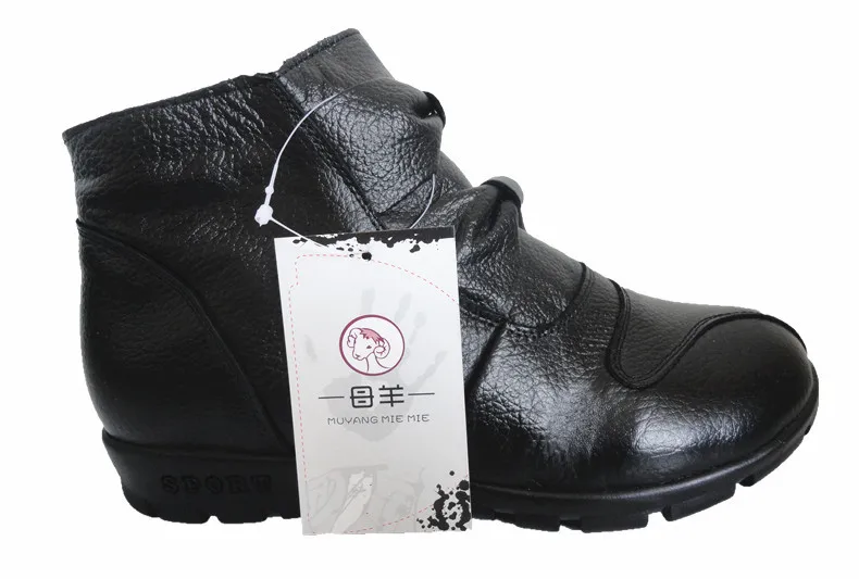 MUYANG MIE MIE Winter Boots Genuine Leather Flat Snow Boots 2019 New Comfortable Warm Women Shoes Woman Ankle Boots Women Boots