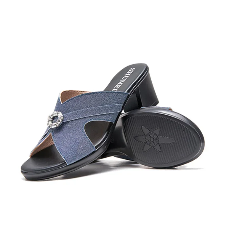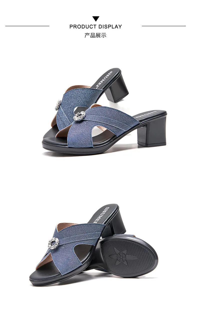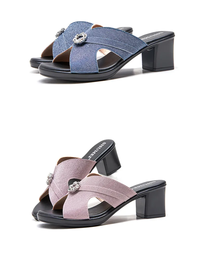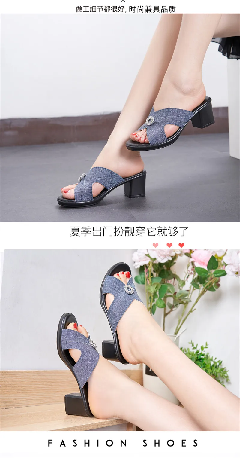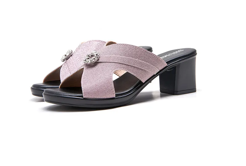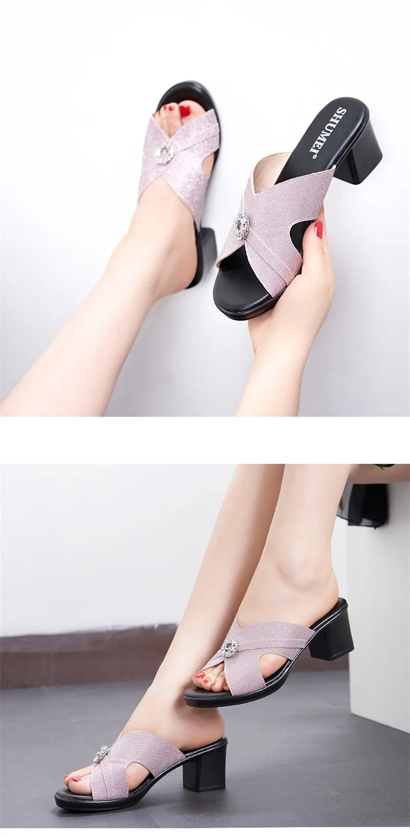 MVVJKE Fashion Middle-aged Slippers Rhinetone Summer Shoes Plus Size 41 Thick Heel Women Sandals Mother Slippers