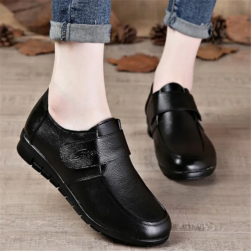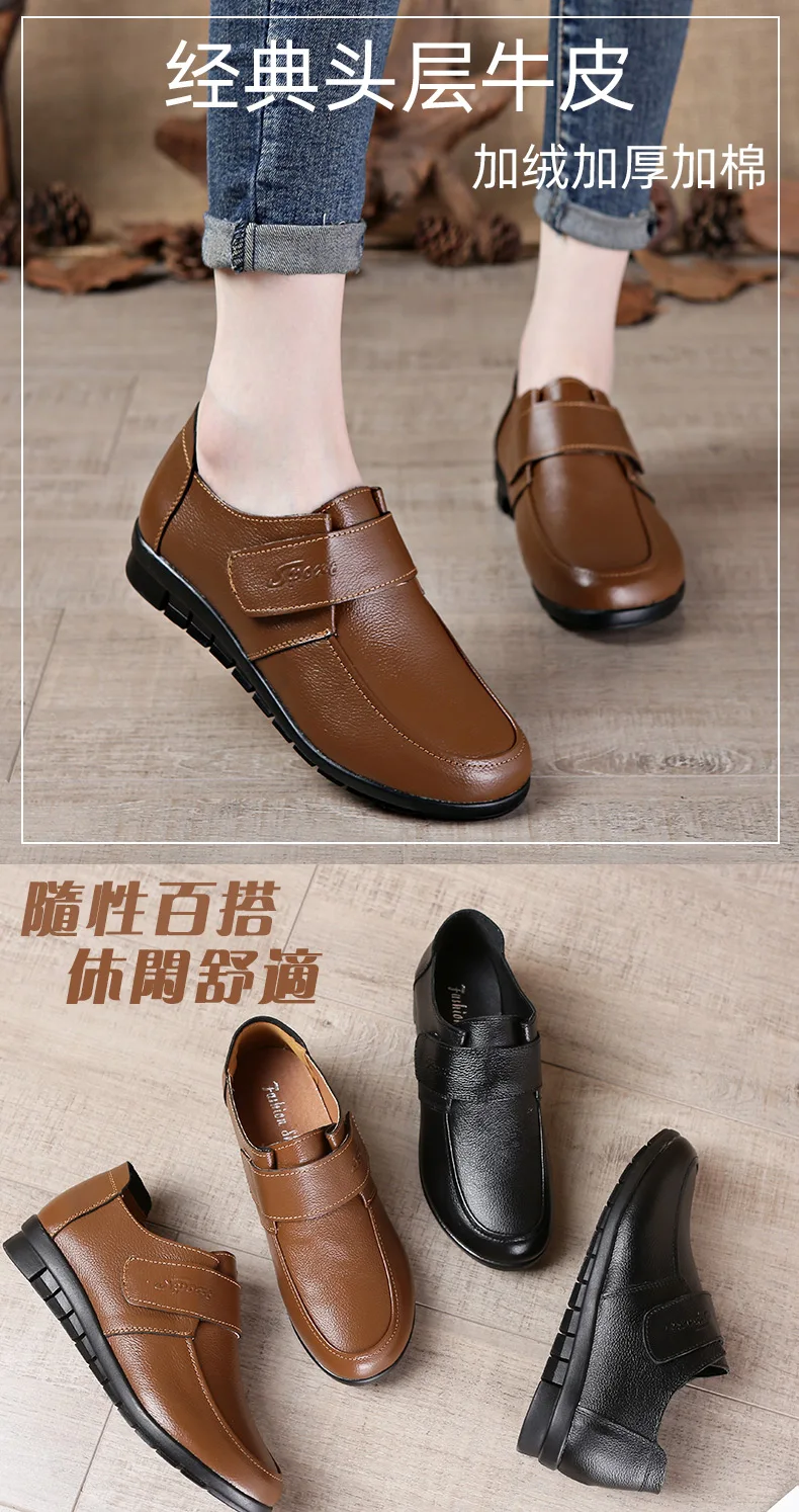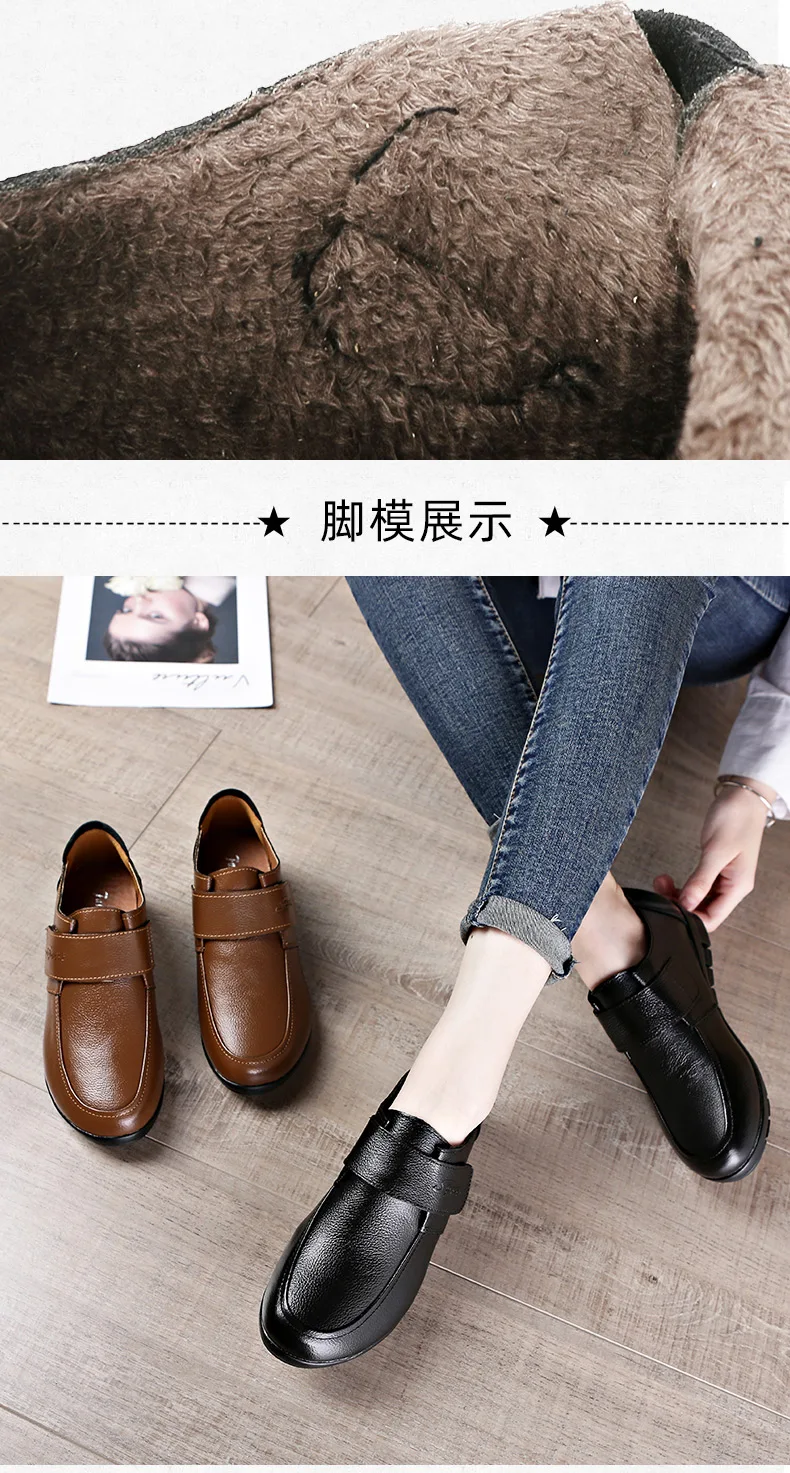 MVVJKE Hot new spring flat shoes women casual shoes big size winter warm shoes flat non-slip real leather mother snow