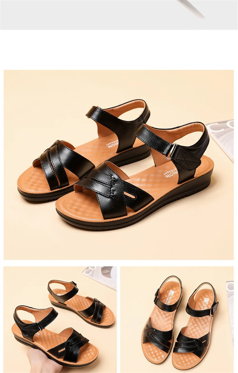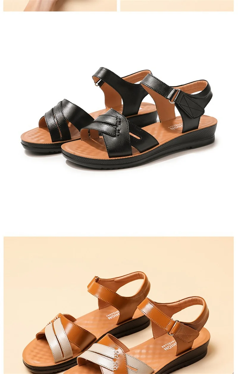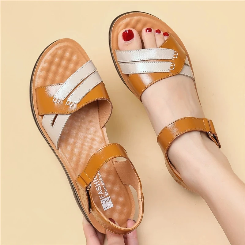MVVJKESummer flat Sandals Woman Fashion Leather Footwear Soft Sandals Female Platform Casual Comfortable Beach Shoes Mother Sand