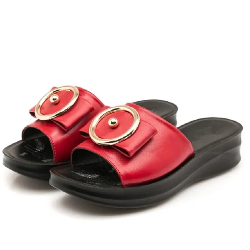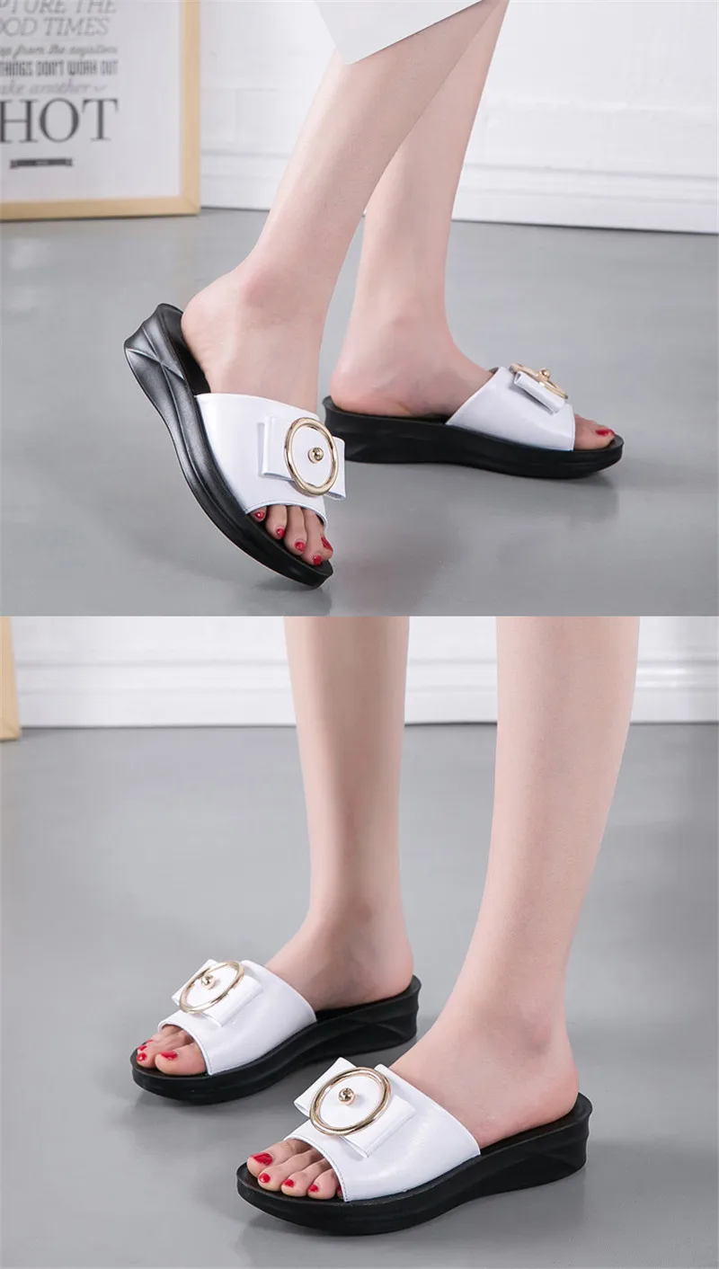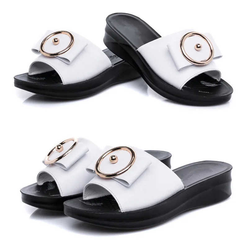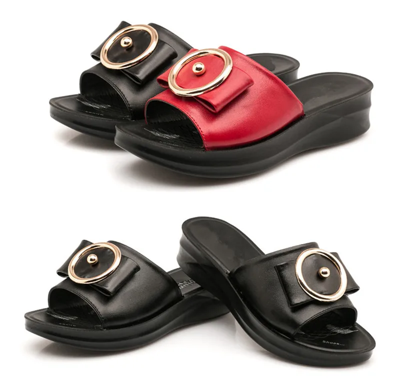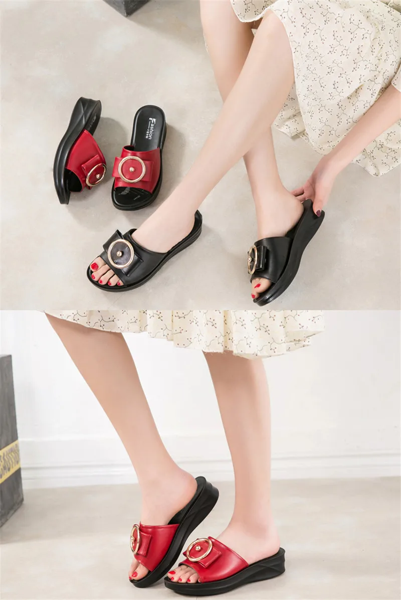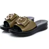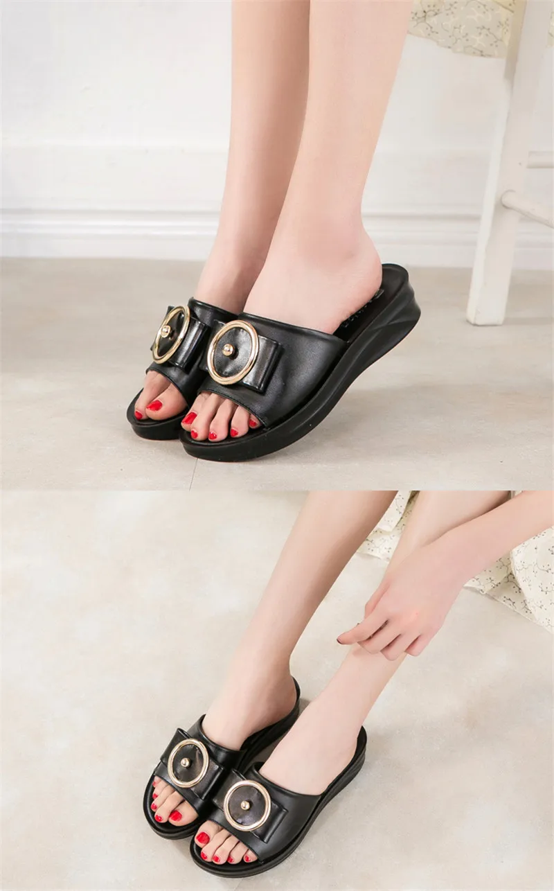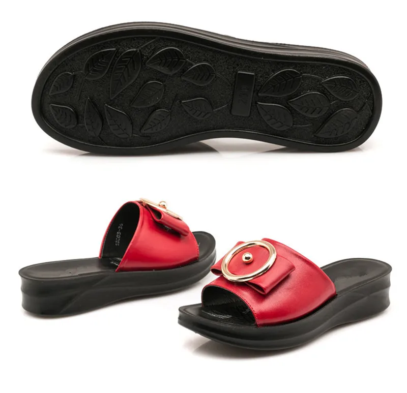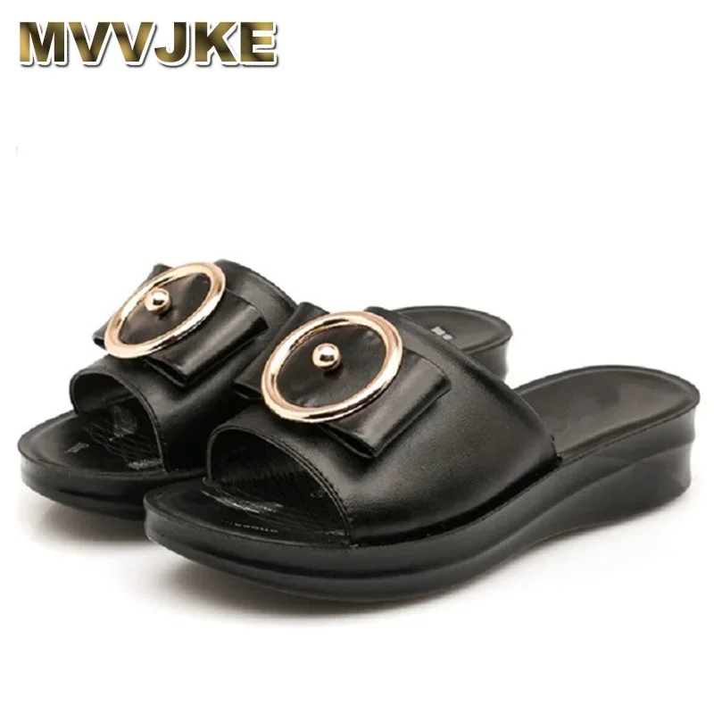 MVVJKESummer mother large size soft bottom leather slippers women flat slip on comfortable beach slippers woman fashion shoes