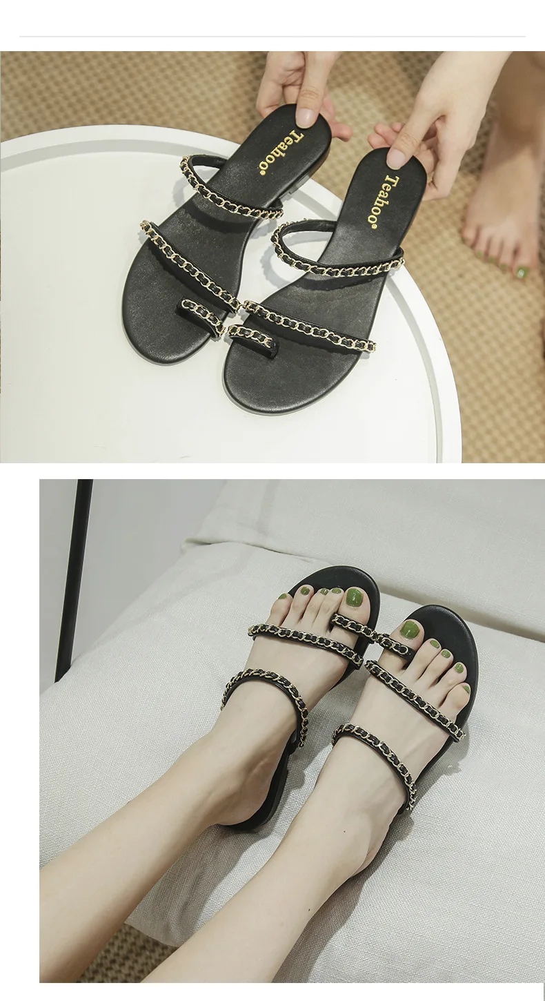 Lady Sandalias 2020 Chains Strap Clip Toe SandalsShoes Women