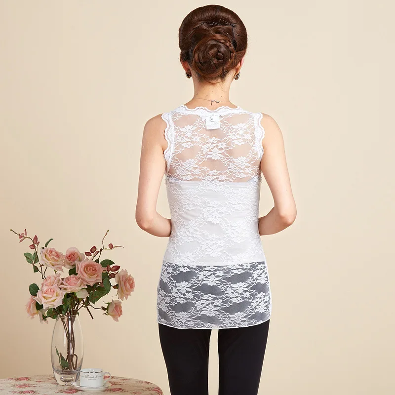 30% Cotton 70% Nature Silk Ladies Fashion Lace Vest Slim Sexy Elegant Camisoles High Elastic Bottoming