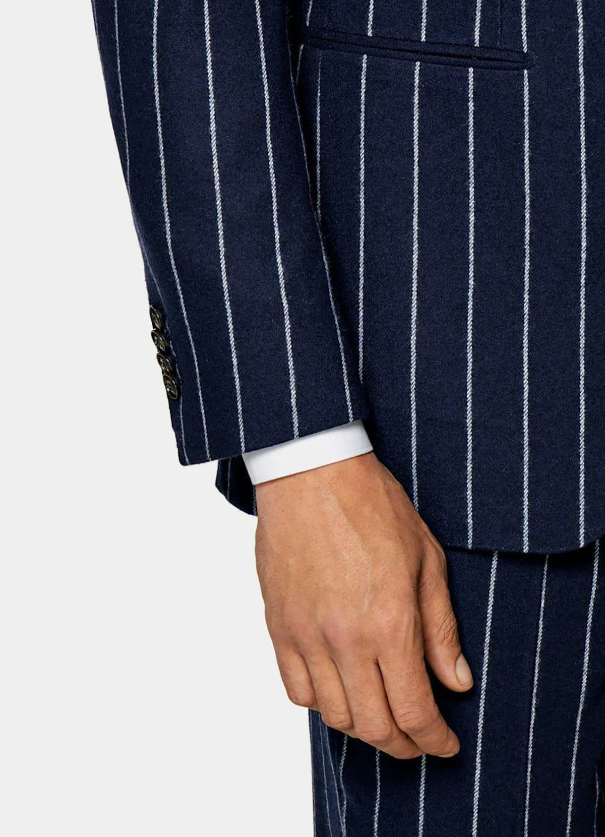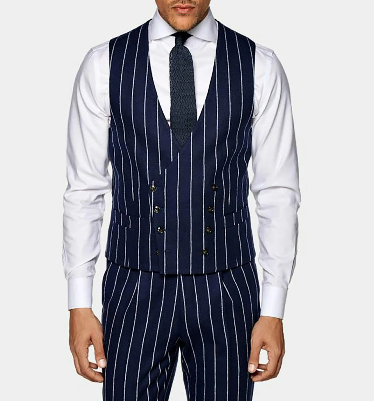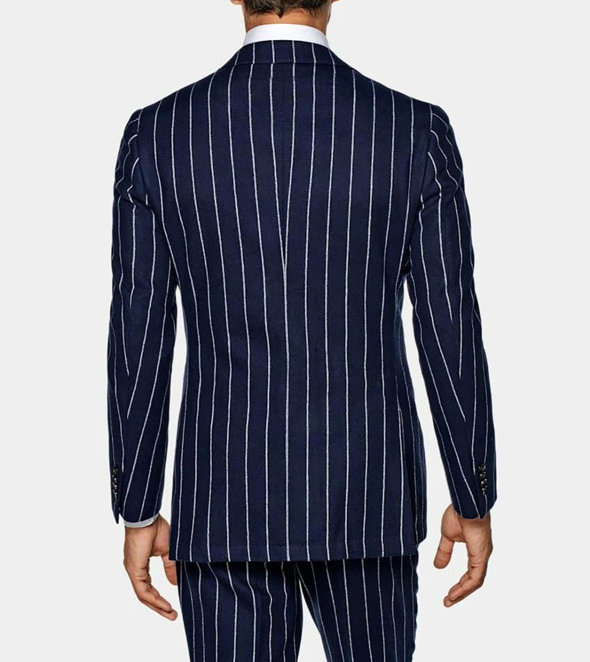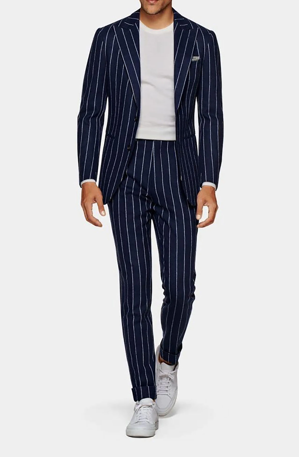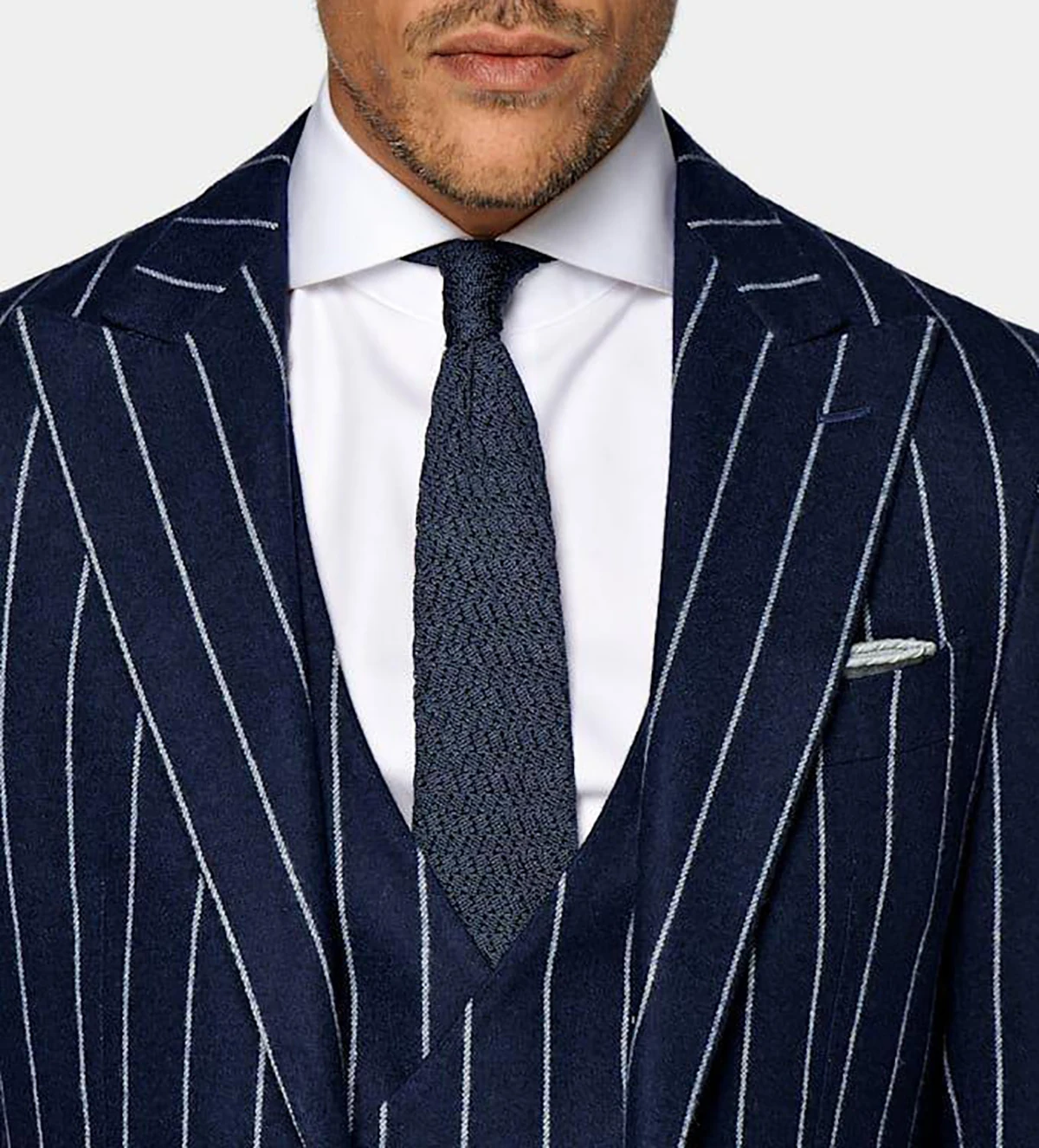 Navy Blue Men Suits 3 Pieces Blazer Vest Pants Single Breasted Business Peaked Lapel Pinstripes Wedding Groom Tailored Plus Size